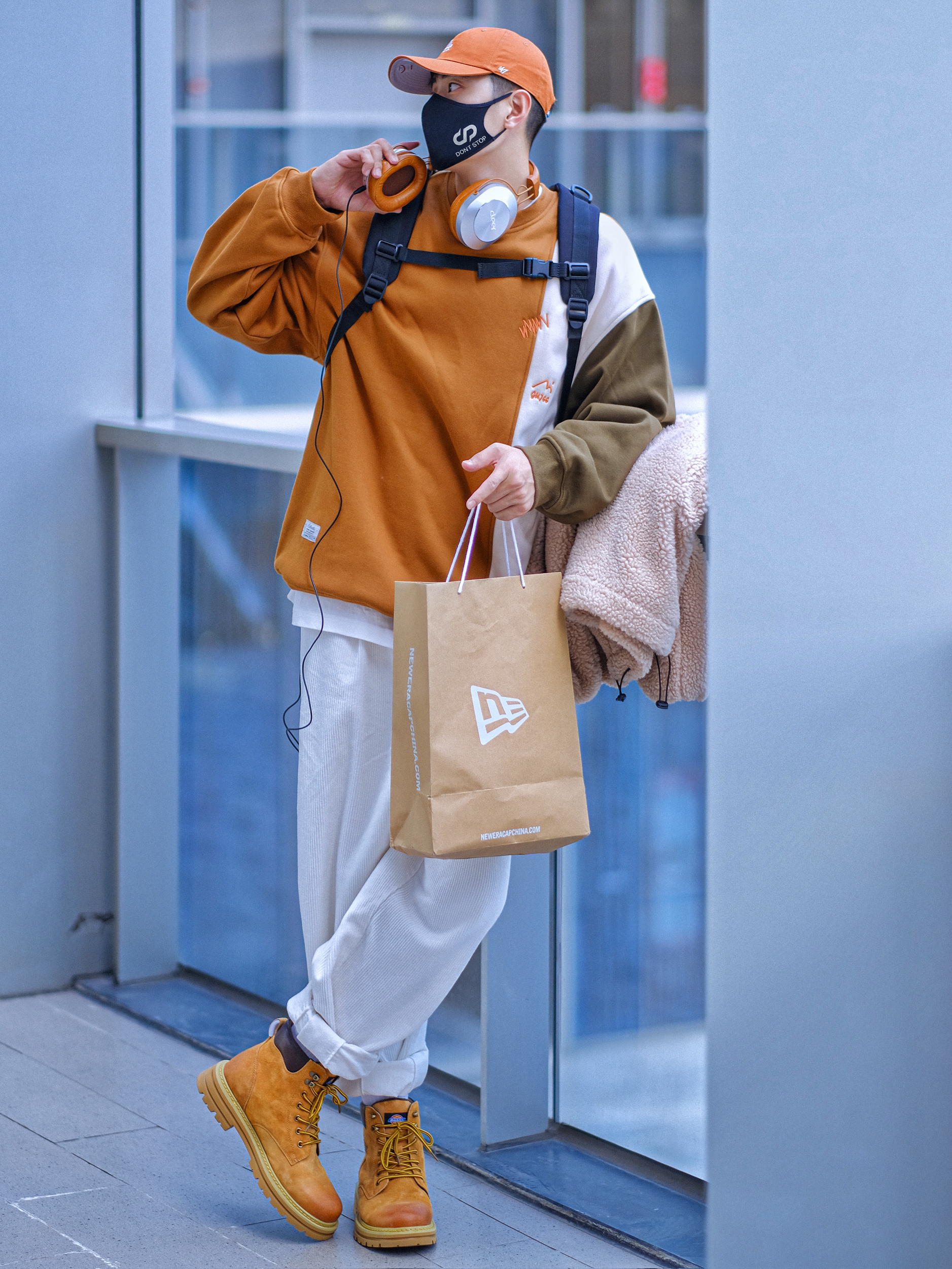 🔸秋冬,就是“卫衣”的主战场!普通男孩子的秋冬穿搭,多准备几件“卫衣”就对了!简单好穿,好适合大学生校园穿搭,满满的活力少年感穿搭!今天这套“阳光橙”拼接卫衣穿搭,真心适合学生党,一整个暖色系搭配,色感暖暖的,颜色好适合男生冬季穿搭! — 🔸结合先锋机能美学,戴上口罩,戴上同色系棒球帽,戴上复古耳机,一整个帅气大男孩的质感。这么穿,“普通男孩”就“不再普通”! — ⚠️本人身高|体重:176CM|...
