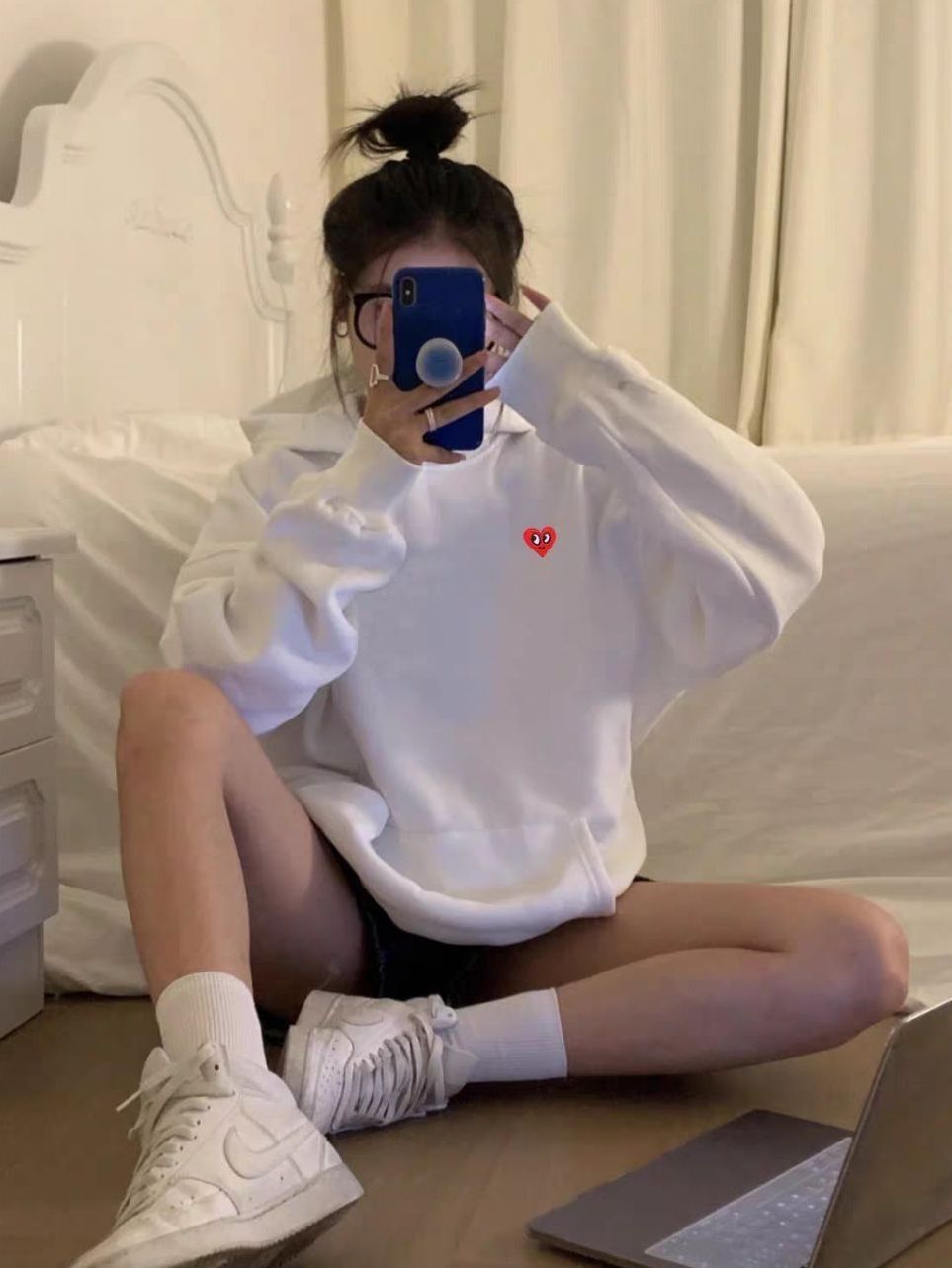 Charles Jang's Happy Heart/查尔斯桃心 2022AW 加绒宽松套头连帽卫衣 ❓❓白色卫衣 黑色短裤 白色运动鞋 🚫🚫 这个卫衣真的好看🚫但是印花简单📛又简约❌但是面料也不错📛摸起来很舒服🚫黑黄皮本命卫衣〽️穿上显白一个度!❓面料也是很厚实的📛不怕放大镜的那种⚠️是爸妈都喜欢的卫衣面料。纯棉的不怕水洗❓洗过也跟新的一样‼️印花也很好看,价格也很美丽。‼...
