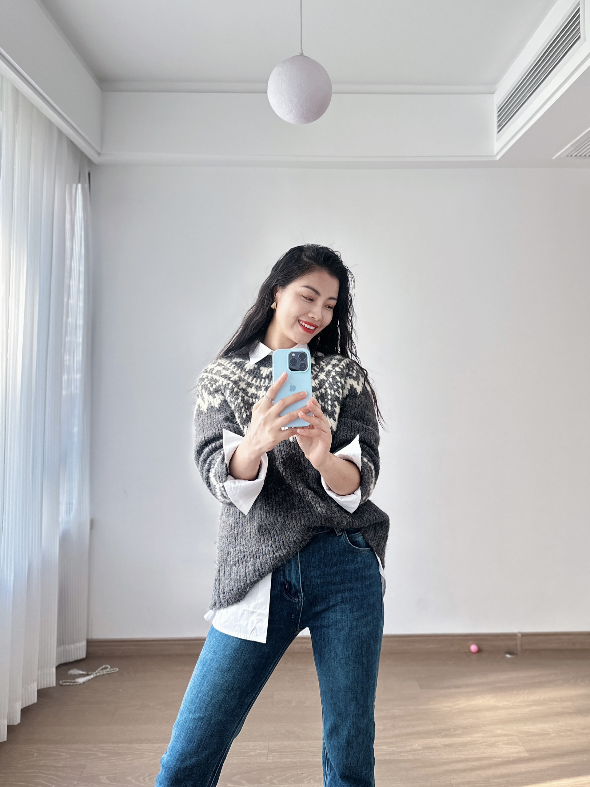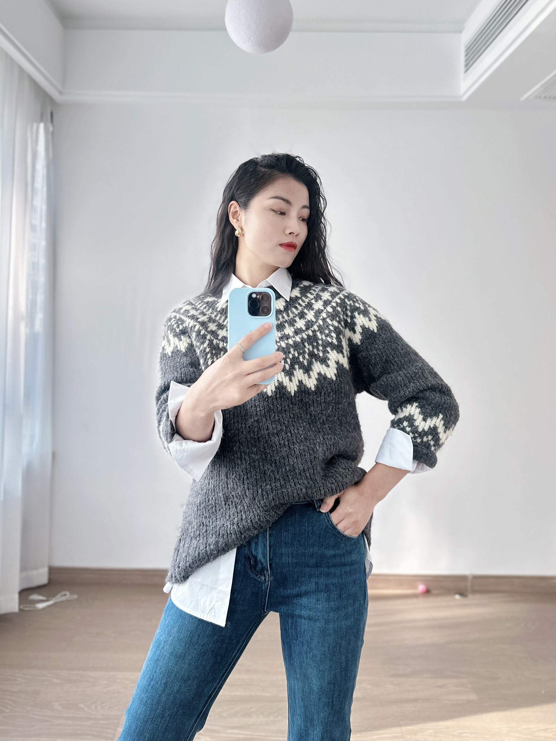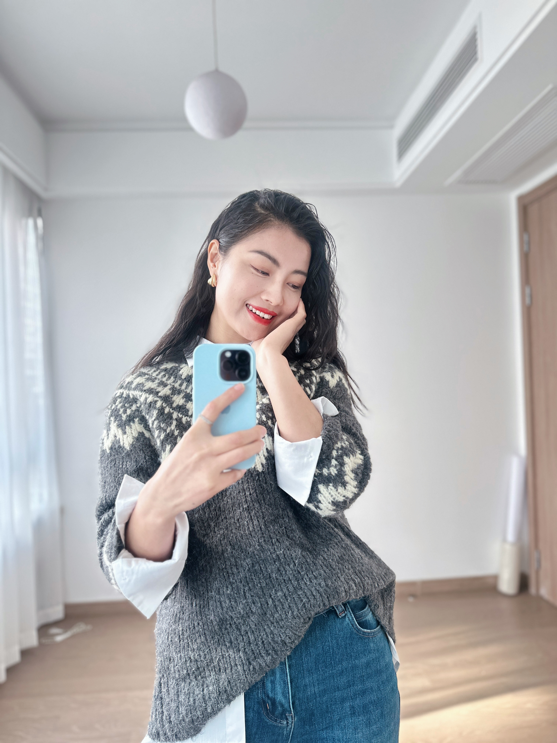 怎样将老毛衣穿出时髦感?整体氛围把握住 Look 1 前两天的笔记 配了百褶裙➕长靴 灰粉色系优雅随性 Look 2 日常休闲 今天元素 直筒牛仔 白衬衫 菲尔岛灰毛衣 棕色🏾方头鞋 方头鞋增加复古感,金属耳饰添加些许时髦氛围 穿搭小Tips : 1. 白衬衫不要中规中矩塞进去 扣子不对称扣一颗,下半部分露出一侧衣角,增加层次且能修饰身材 2. 衬衫袖口翻出 可上拉,露肤,...