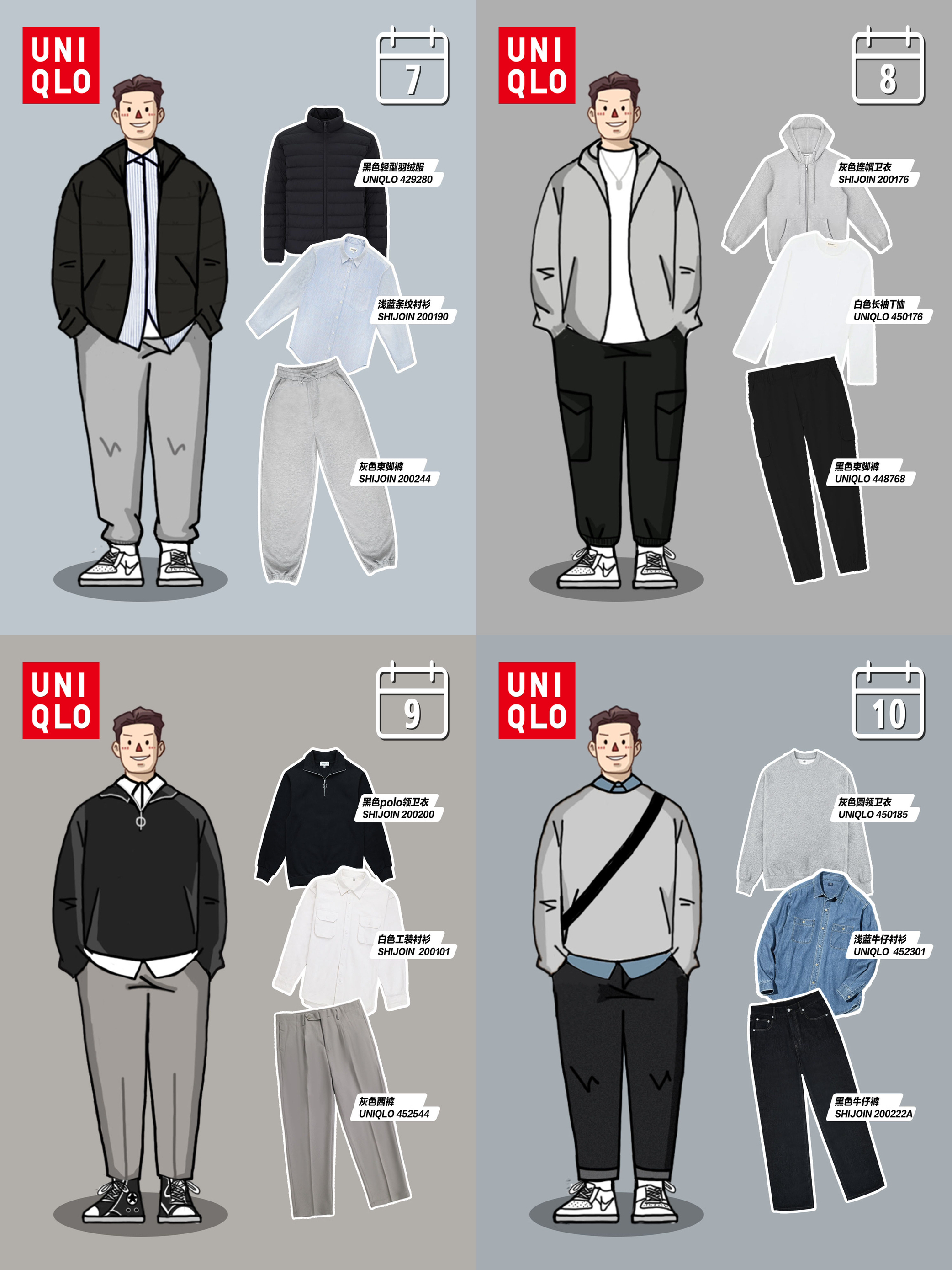 hello,穿衣显瘦脱衣有赘肉的小梁🙋来了! 说起穿搭色系,黑白色系单品🏁在男生的衣柜里比较常见🔅,搭配起来也比较得心应手,百搭简约不容易出错,本期小梁分享的优衣库黑白色系穿搭合集〽️,干净简约一周不重样,同事都在问我要链接‼️ - 我们下期见~