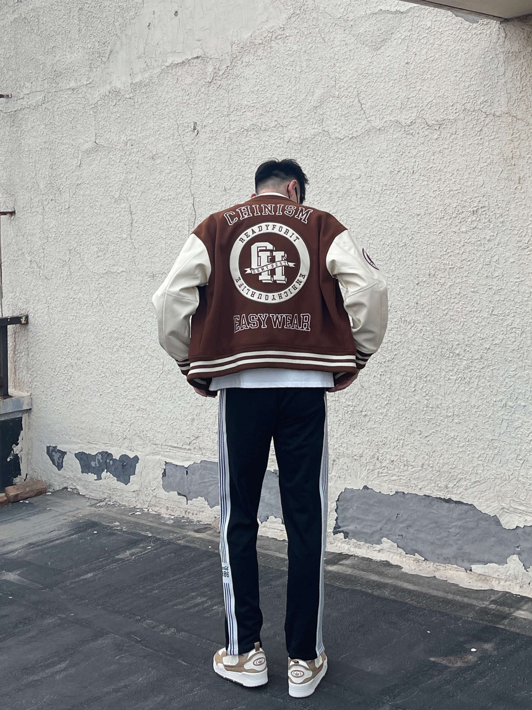 👦🏻棒球服搭配卫裤真的绝呀 这样的一套肯定是经典不过时的穿搭 🥶秋冬季气温起起伏伏 常备一件外套是很有必要的了 再搭配一条条纹卫裤,出街也会很吸睛 👇🏻今日OOTD 👔:ch徽章系列棒球服 👖:coca-cola条纹串标拉链运动裤 👟:adi2000