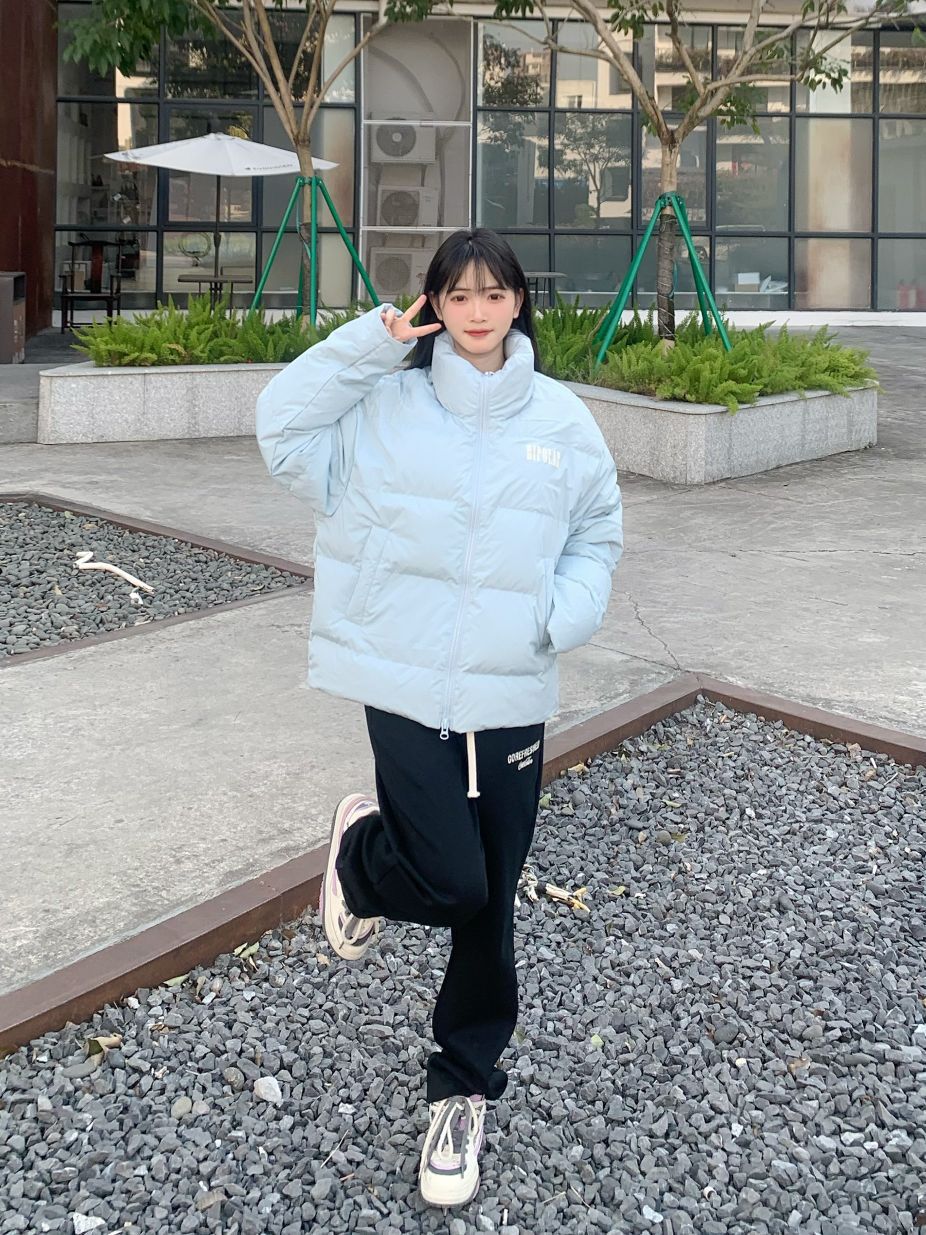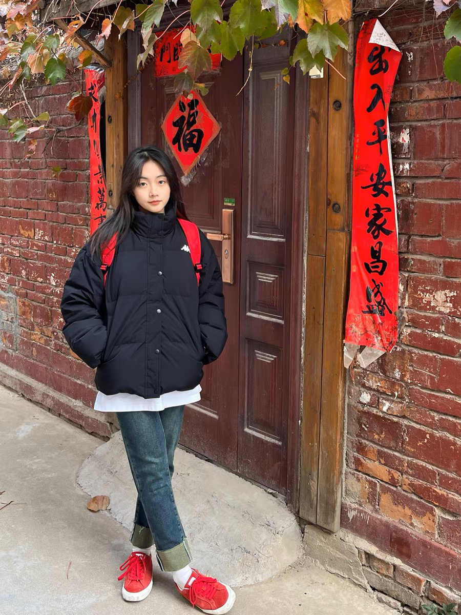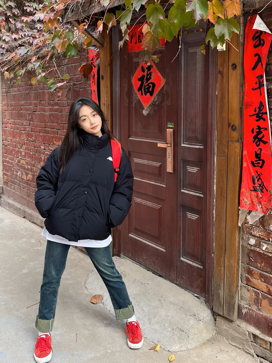 冬天怕冷星人穿羽绒服是最保暖的,短款对小个子女生比较友好 黑白色不过时,好搭配,搭配牛仔裤、鲨鱼裤、运动裤都很好看 冬天黑白色比较沉闷可以在内搭、鞋子、帽子、包包上面下点功夫,就会很好看的。例如叠穿白色T恤,露出白边,立显层次感。 (图片来自网络,侵删)