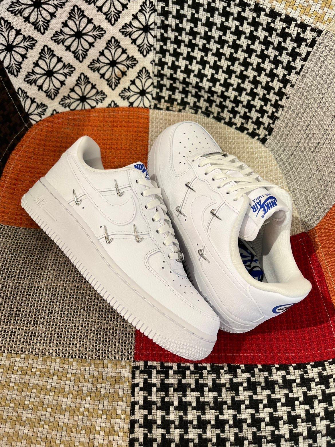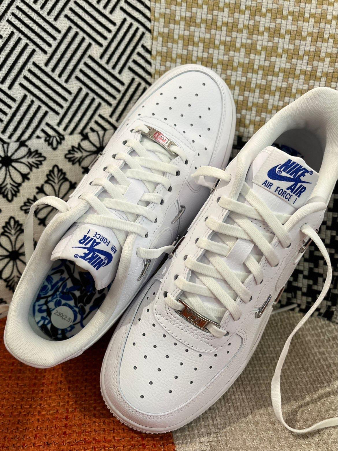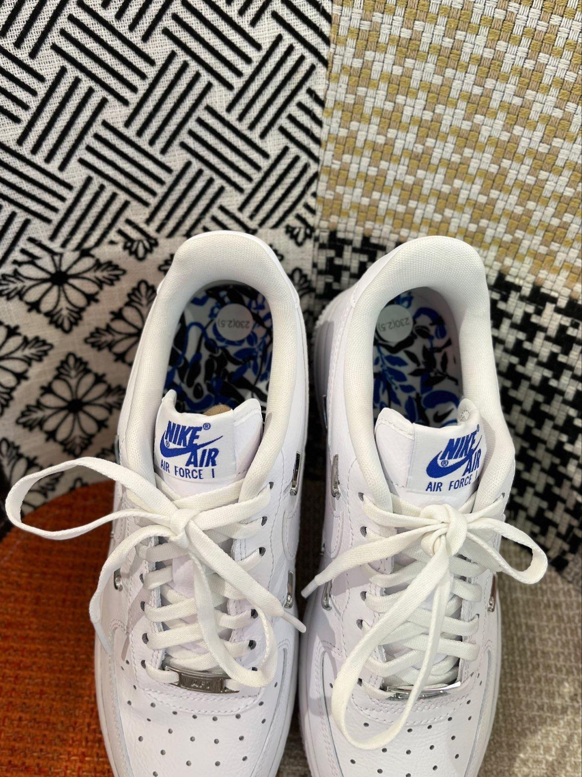 🔥人气爆款——白蓝四钩空军,时隔两年补货回归啦!!!销量9万+双,明星泫雅同款,超高颜值这谁拒绝得了?! 👟Nike Air Force 1'07 LX “Chrome Luxe”四钩 白蓝女款 泫雅同款丨阿隆戈登同款 💙鞋身以简约白色皮革为主,鞋头带有金属质感的“AF1”鞋带扣,内外侧四个金属小钩子,具有极强的辨识度。 🎨鞋垫上蓝色的花卉图案,抽象艺术,后跟阴阳反转的标志,个性十足。 💃🏻纯白空...