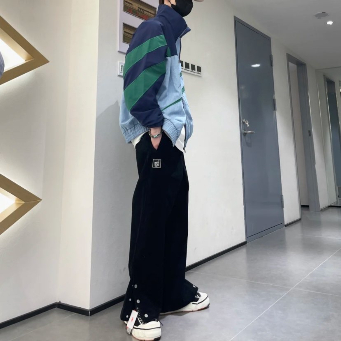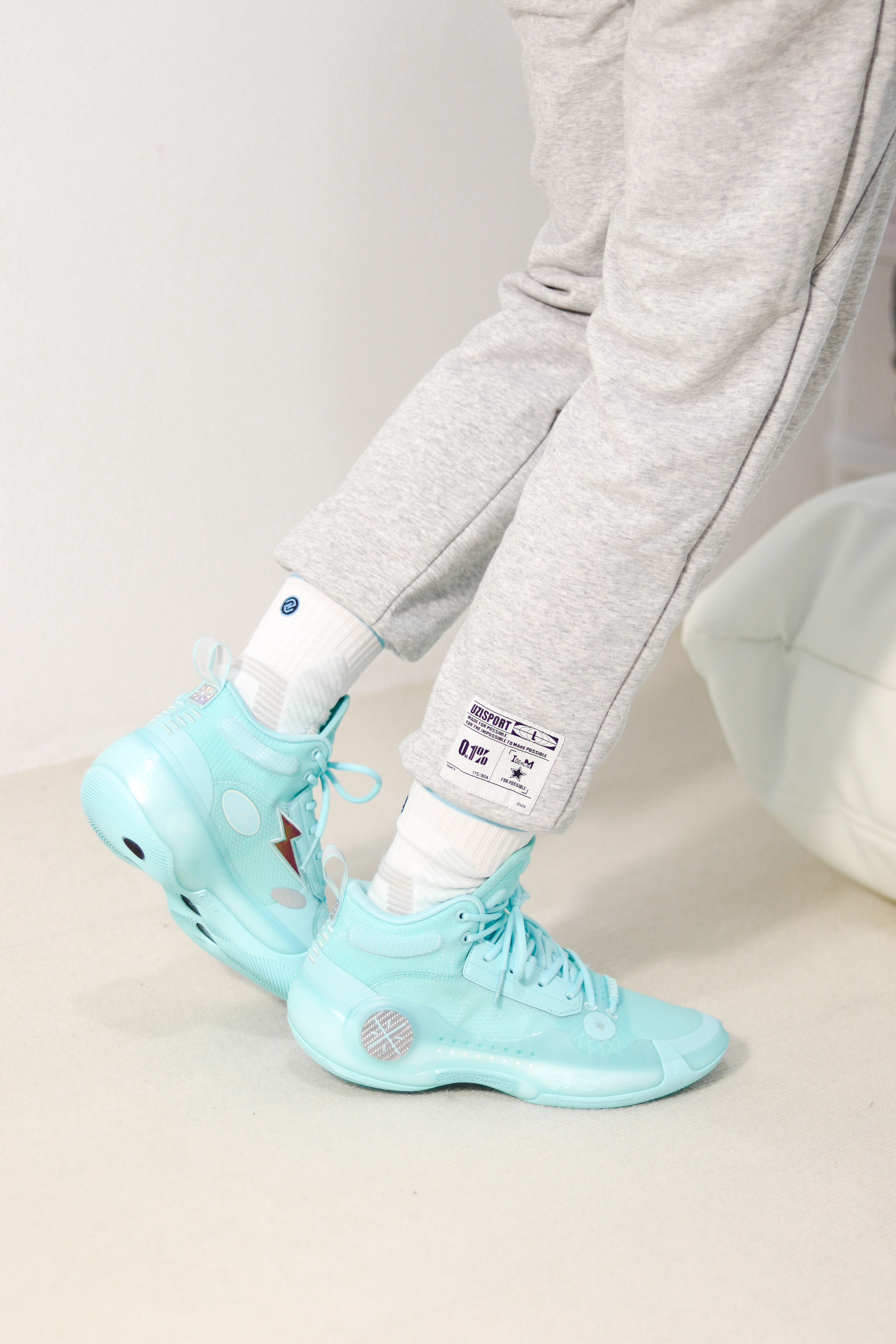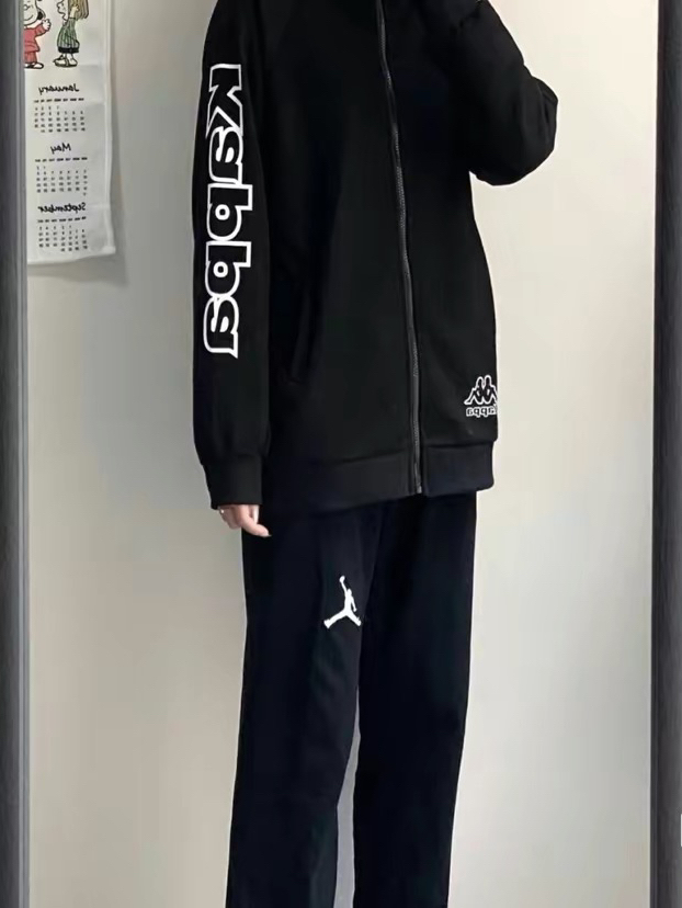 四季都好穿的卫裤在爱打球男生里很常见吧?换成灰色其实显得整个人干净的多,宽松的版型也不挑人,胖瘦都遮住,运动起来轻轻松松⛹️ 裤脚松紧带设计很方便扎球袜,裤脚也能轻易产生堆积效果,显瘦又利落,其实还有点防钻风⛹️我很喜欢裤脚上的球员标,氛围拉满了,再搭上同样来自UZIS的球袜,出街还是打球都很帅啊🕶️ 👖:UZIS 蓝标 🧦:UZIS 方舟 👟:韦德之道10 薄荷