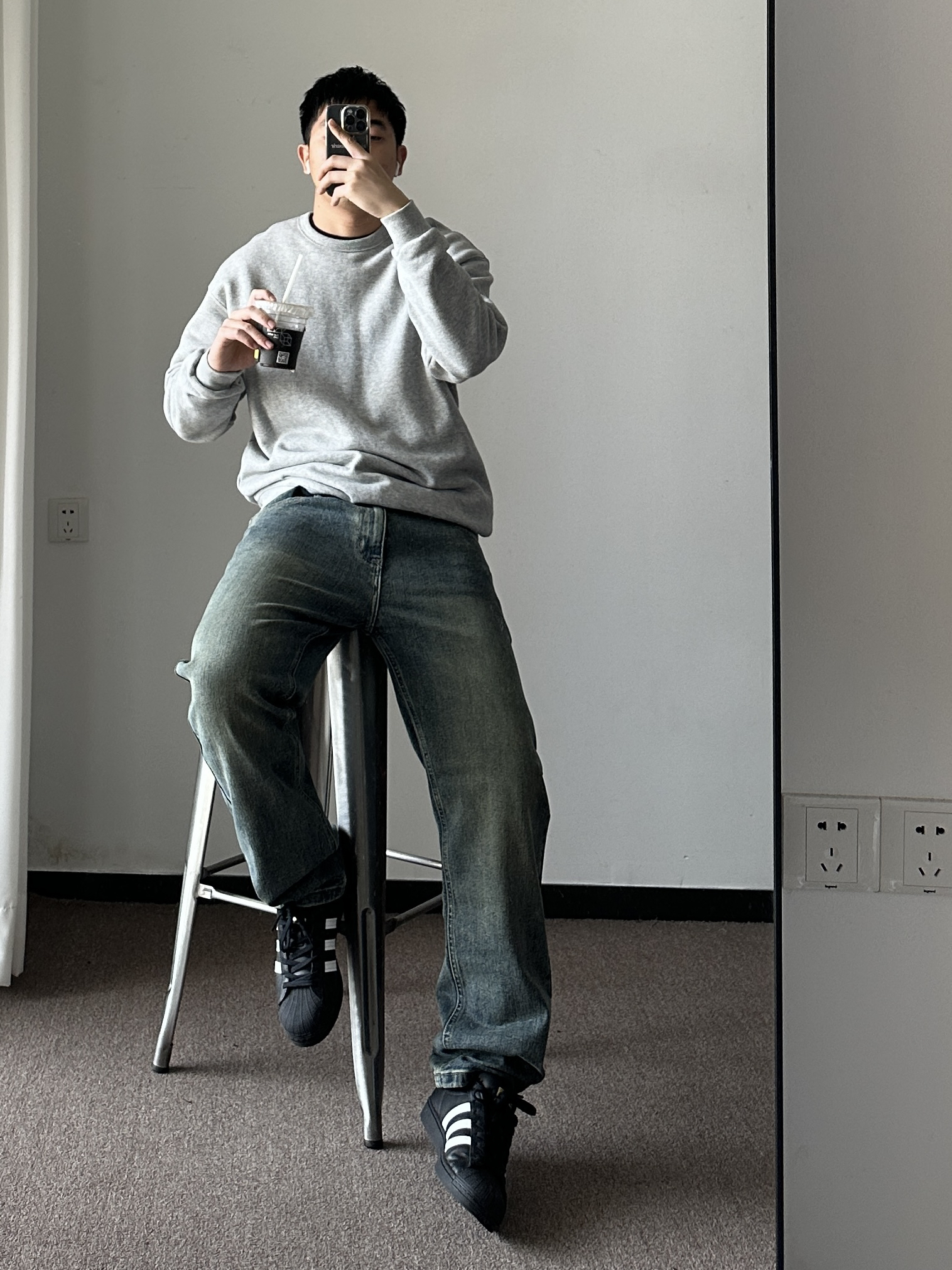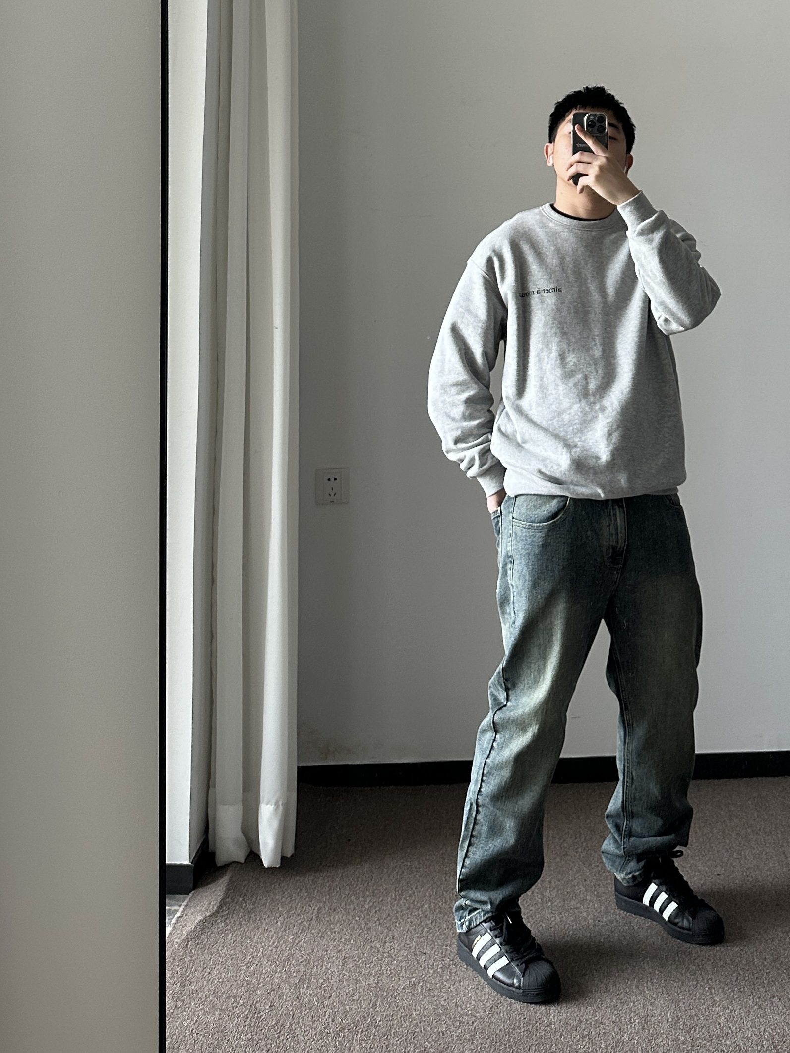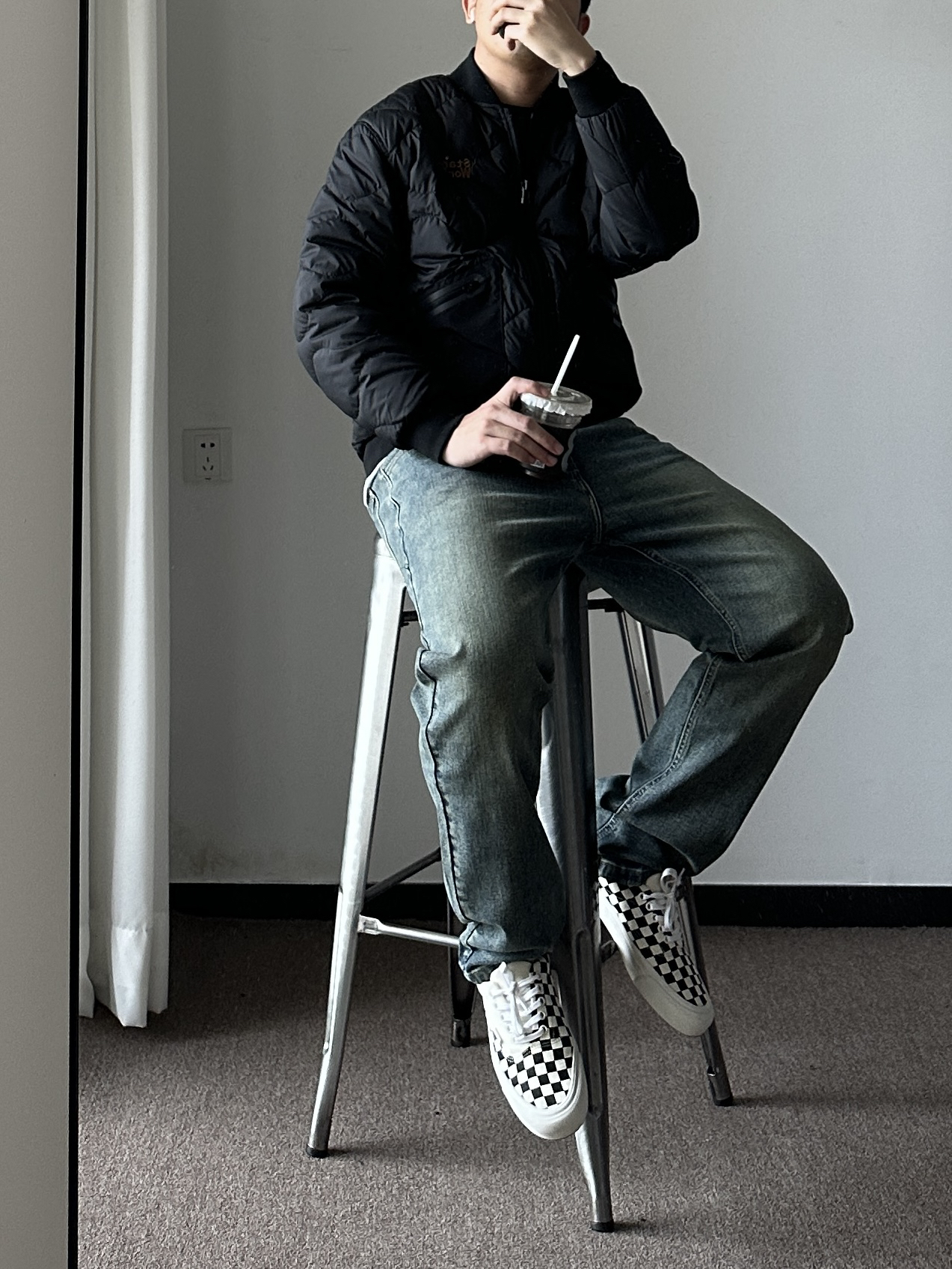素人也能好看系列~ 174cm/65kg 🧥-飞行夹克棉服,衣柜里的百搭外套,上身XL,版型偏小。注意选择,内搭卫衣保暖好看。 👖-浅色牛仔裤怎么搭怎么好看,嘻嘻~上身33,参考一下,主要看腰围和裤长,整体合身微宽版型。 👟- 可以superstar,也可以棋盘格。