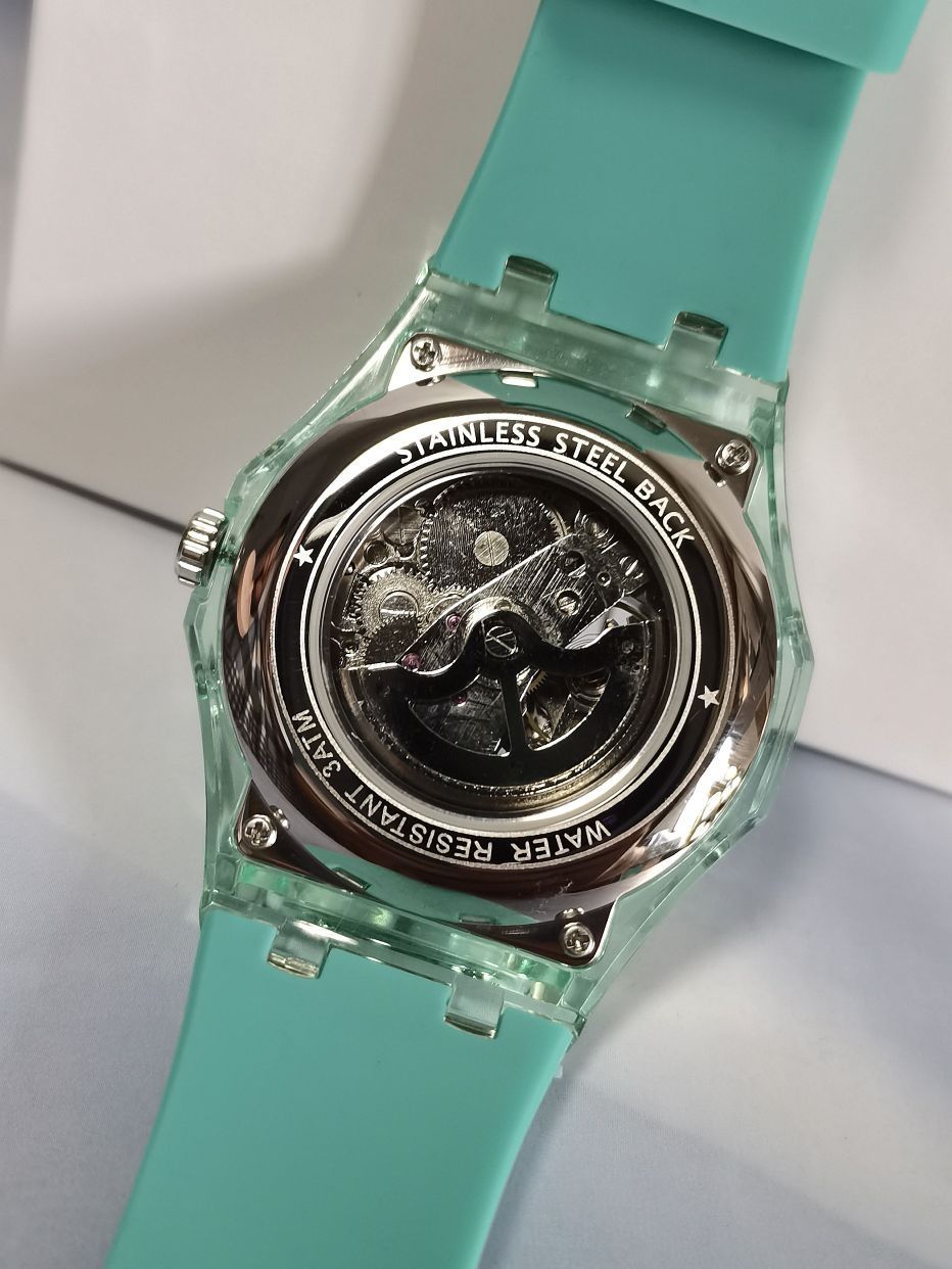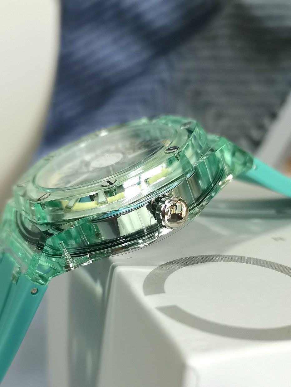 上次入的是冰川系列——这次是远航系列 之前入的冰川系列的就很帅啊 这次看到这款机械表我决定盘下它 双面镂空远航系列手表、亚克力色 从外观上就看出来了 两个词形容:时尚、潮流 整体我比较喜欢的几个地方 表盘内指针以及刻度都是夜光的 表壳是全透明系列的戴上也很清爽的感觉 外加环保橡胶表带戴着很舒服 你们觉得这款表怎么样?