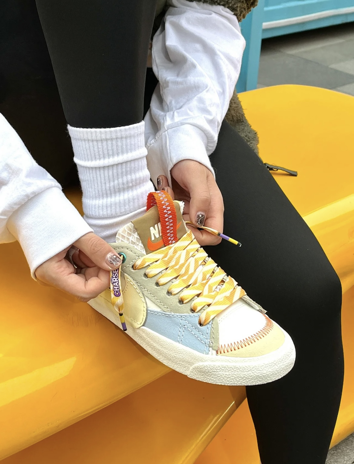 nike板鞋推荐 奶fufu的一双 真的很可爱 鞋子是Nike blazer low77 鞋带是Charsea 牛奶布丁~ 太适合甜美了这双鞋!