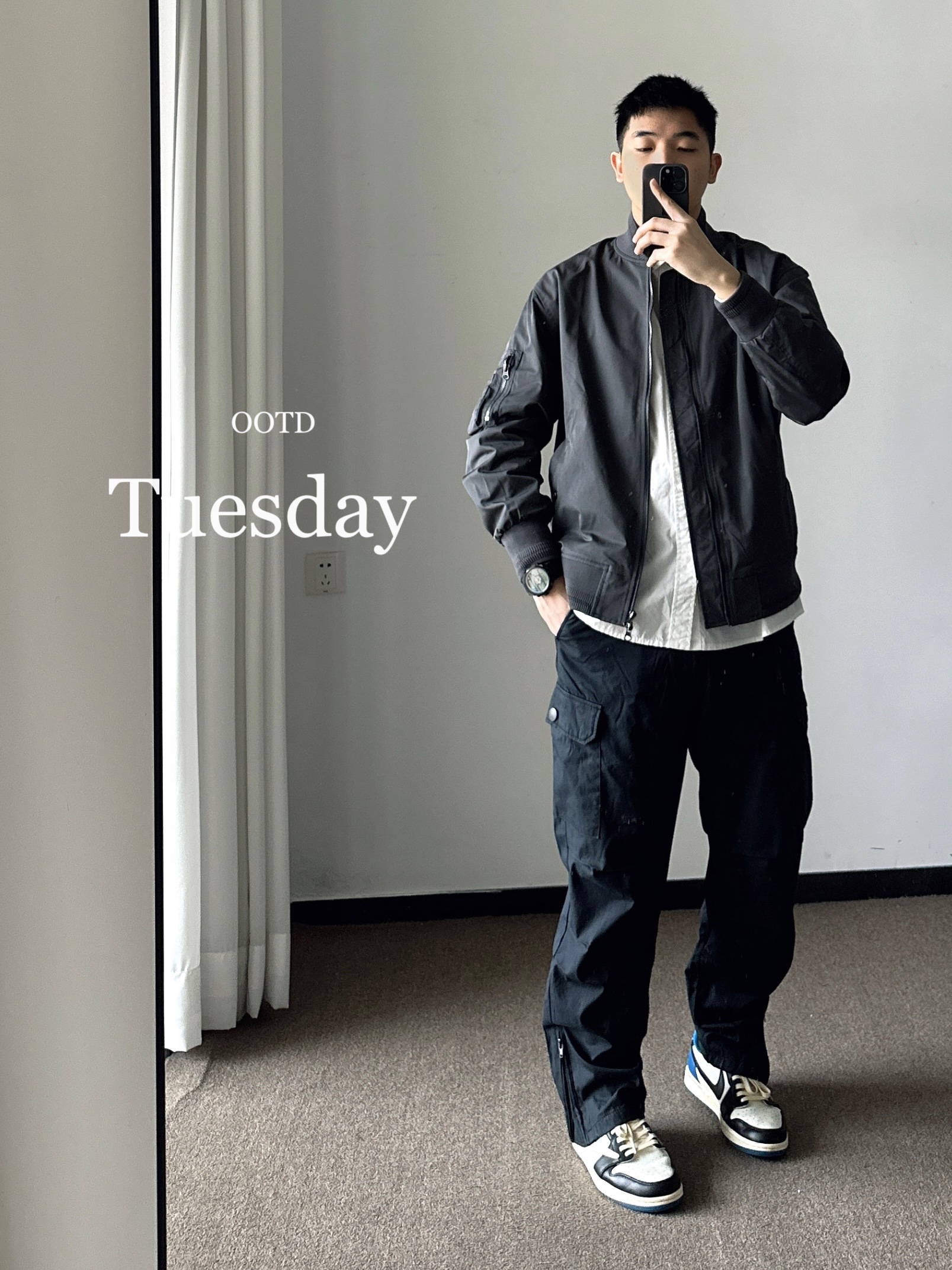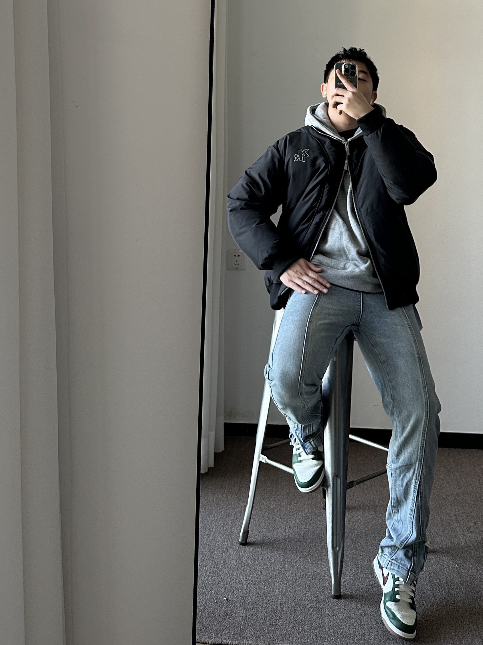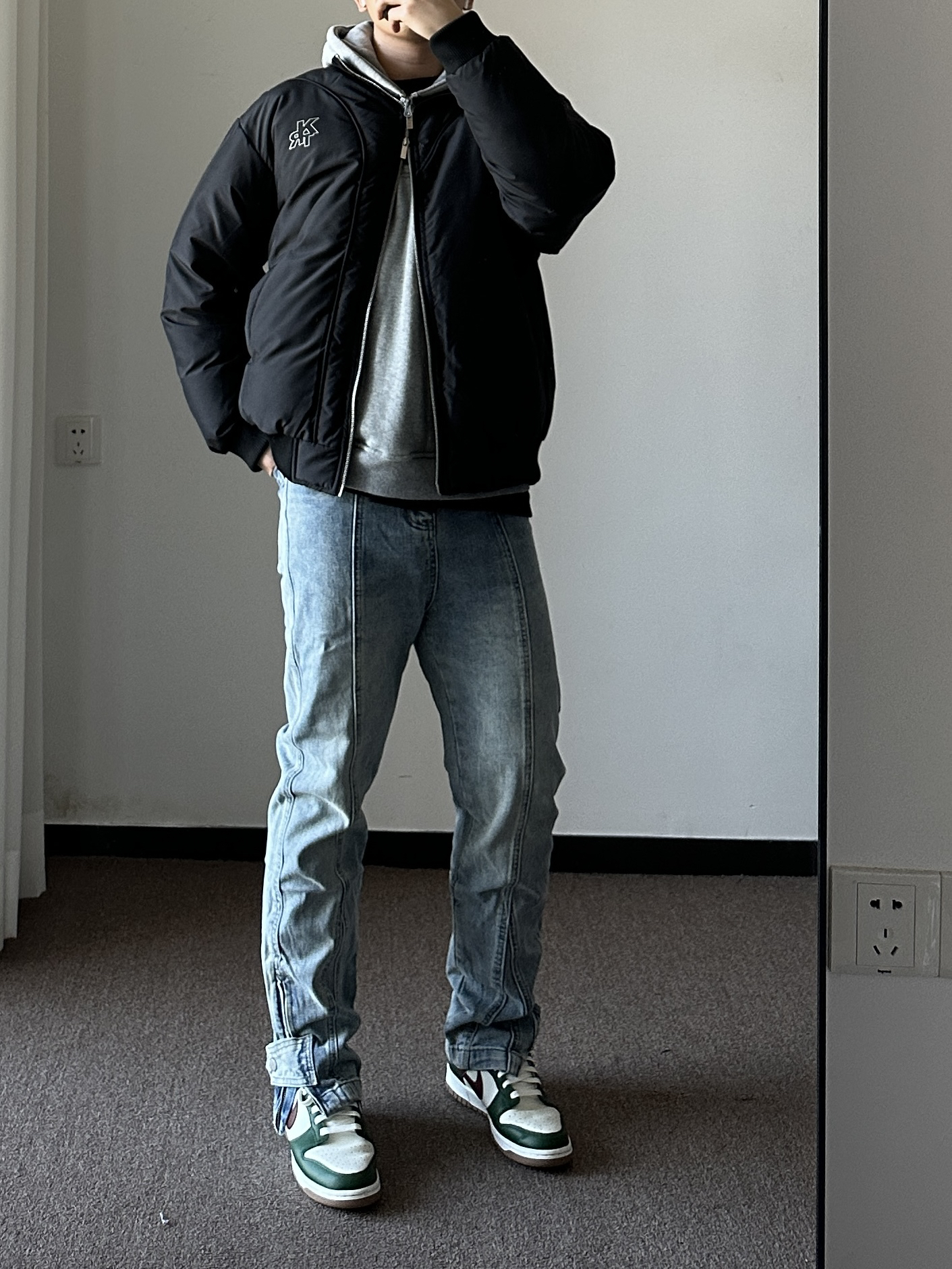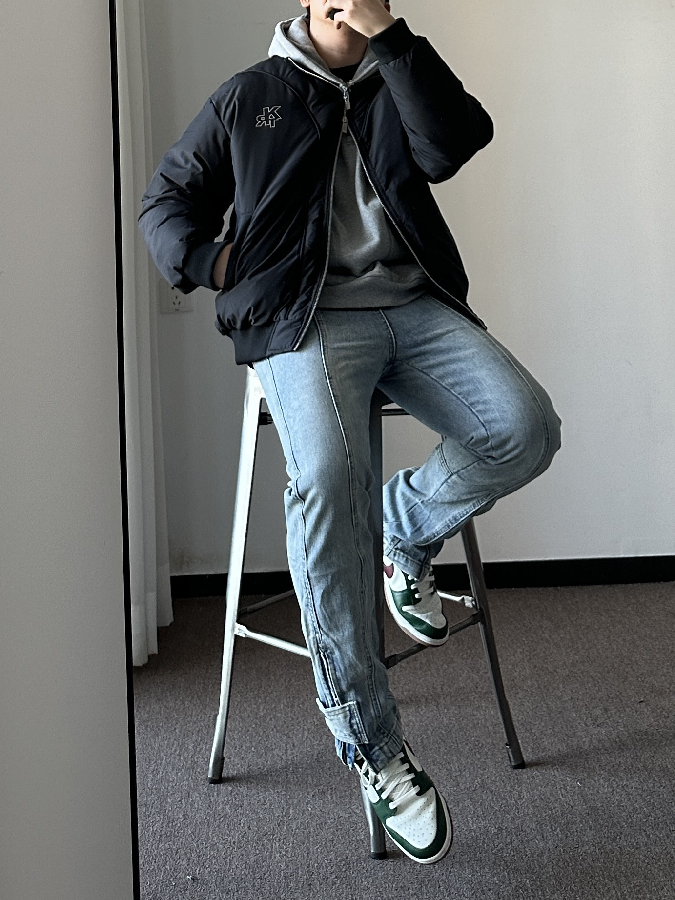 170男生穿搭 | 初秋百搭字母卫衣搭配分享 素人也能好看系列~ 174cm/65kg 🧥-冬季的飞行夹克,美式街头味太浓了,内搭起来吧!外套上身M,卫衣上身S。 👖-clean fit的裤子,裤脚处微喇设计,拉链式调节。浅色水洗太漂亮了,注意腰围选择,腿粗的咨询客户哈!上身M~ 👟- 直接上dunk。