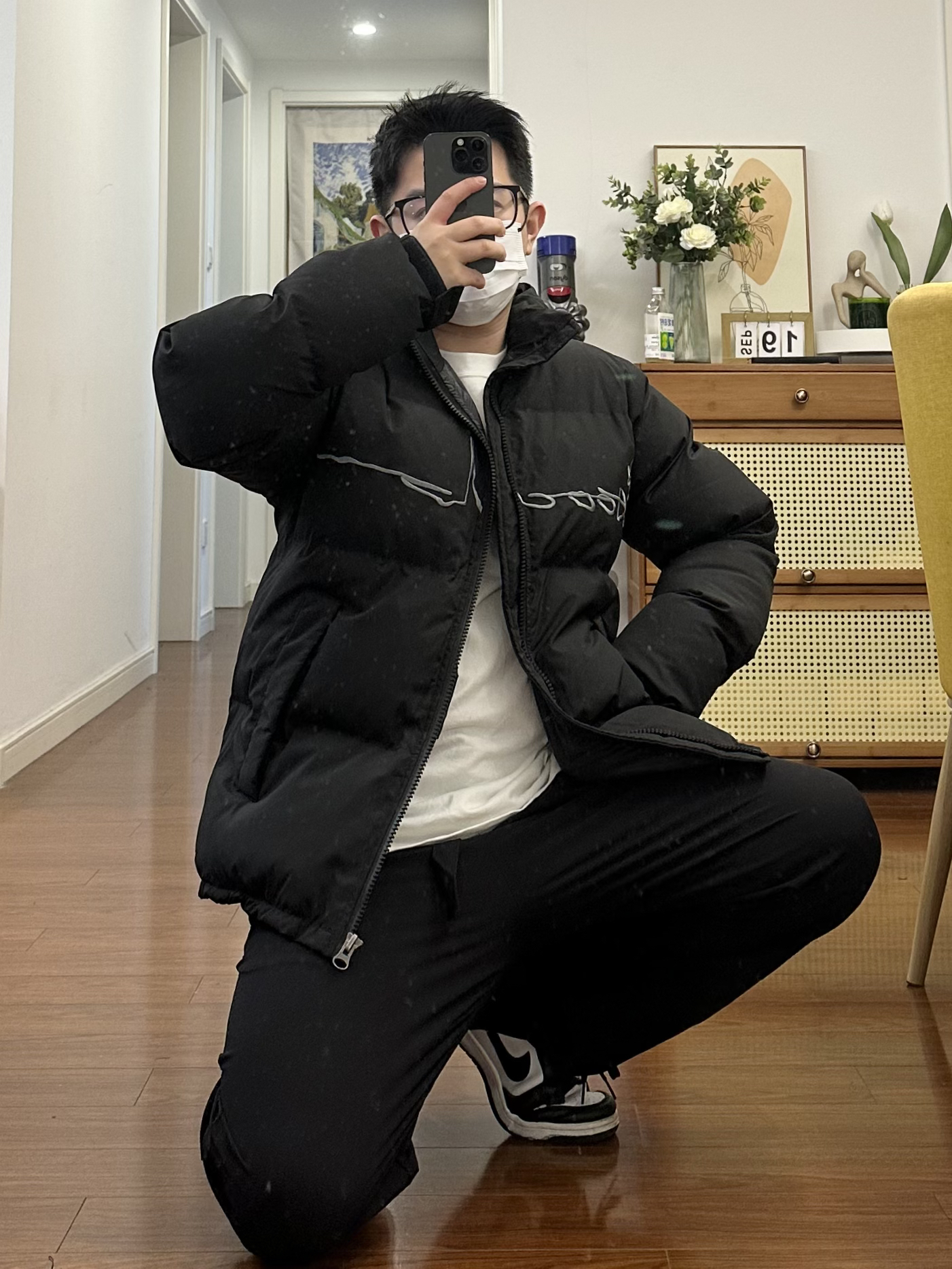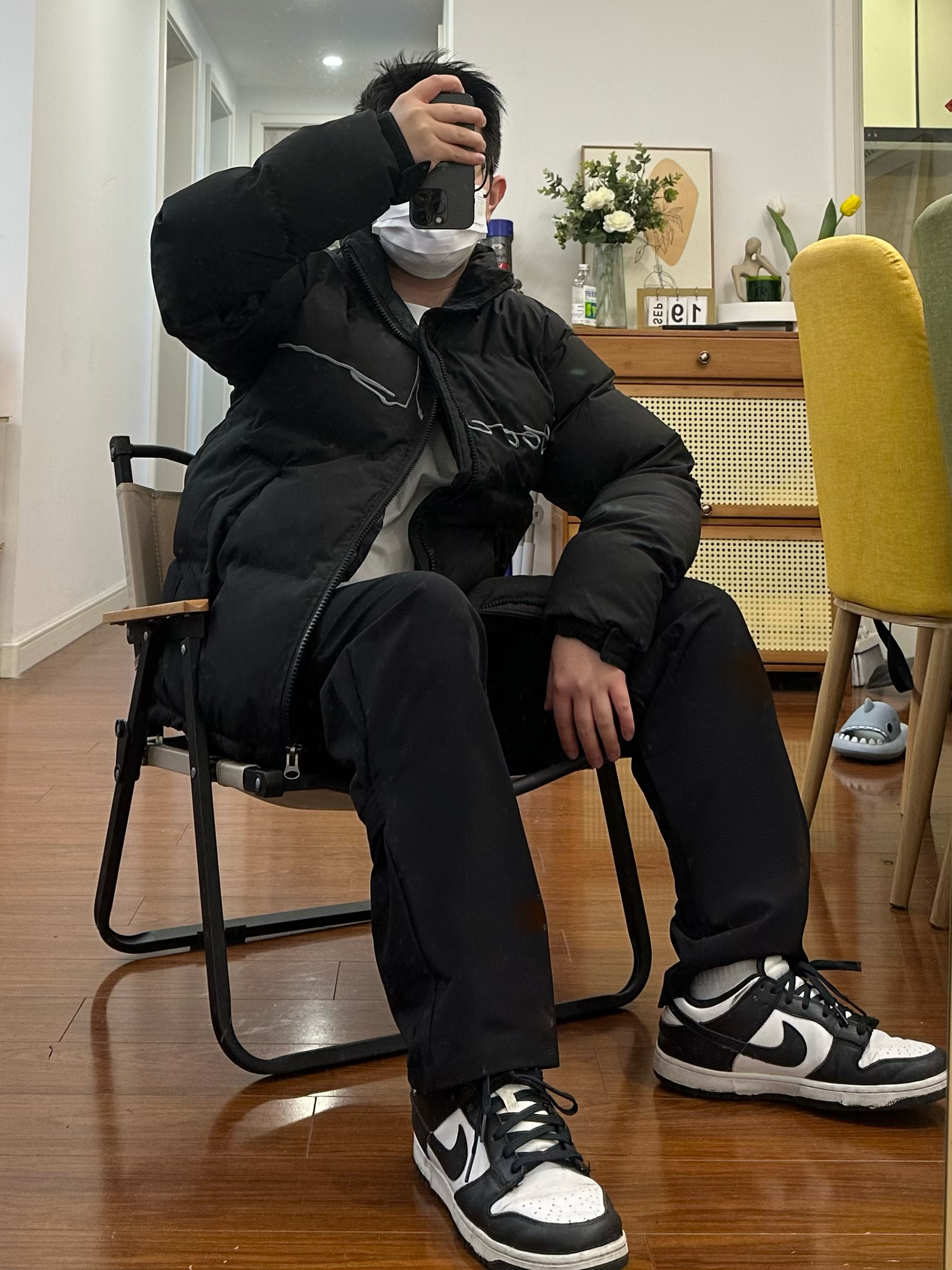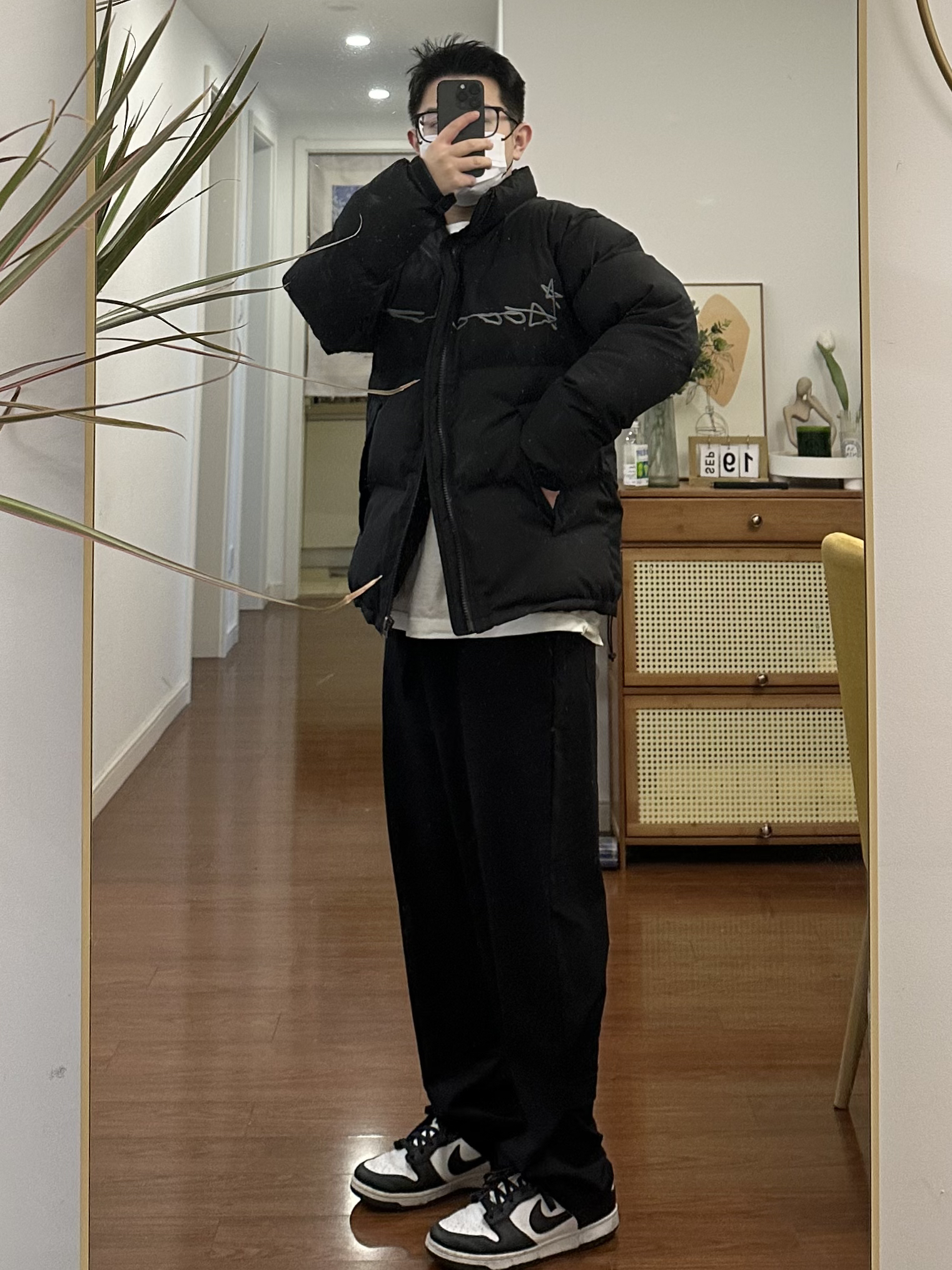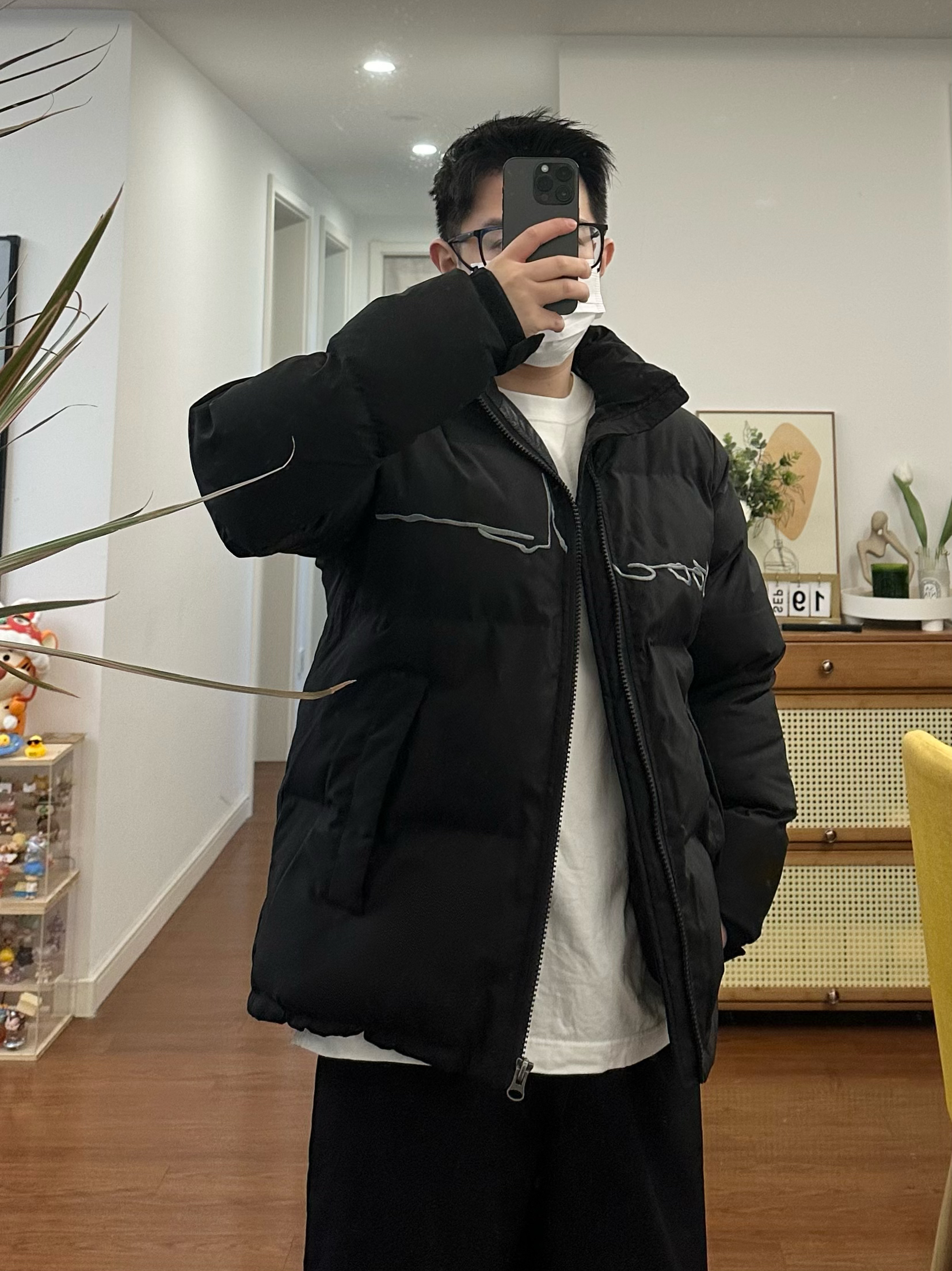 这件黑色棉服我真的要吹爆它 真的 是太百搭了 既简约又高级一 里面配一件丁恤或者卫衣 拍照真的太出片了-最重要的一点是真的特别保暖