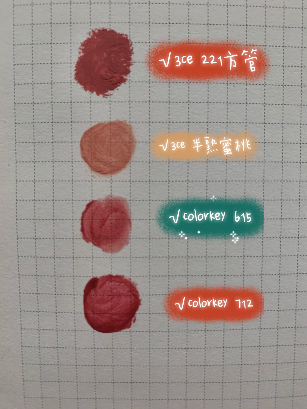 本篇笔记关联了CT/夏洛特蒂铂丽 奢彩明眸全系列四色眼影盘 易上色细腻显白 5.2g 枕边话Pillow Talk 、Tom Ford/汤姆福特 幻魅四色眼影盘 眼部修饰 20琉光蜜桃盘 DISCO DUST、colorkey/珂拉琪 小黑镜水光空气唇釉 镜面 1.7g P712半熟樱桃等商品,为用户提供真实的使用体验和购买参考。
