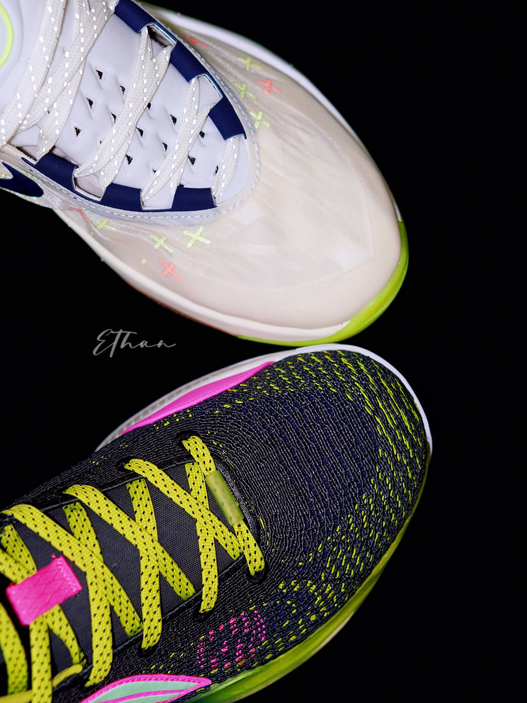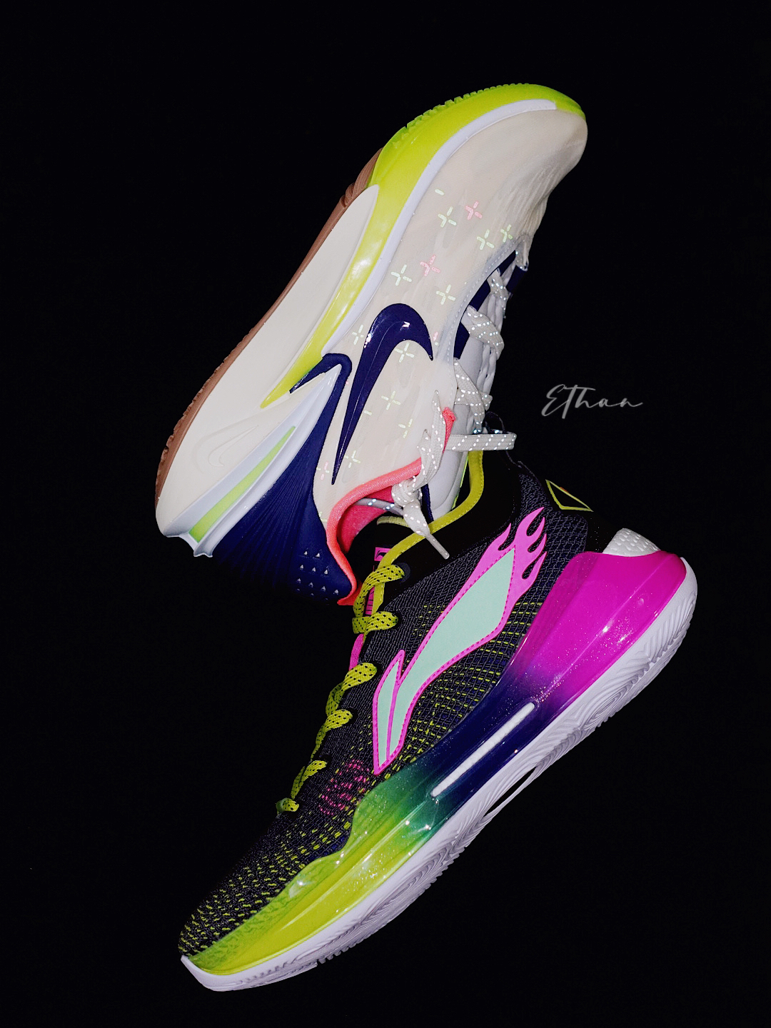 如何以最低价格入手千元内的神鞋?我是以500多入的驭帅13,400多入的Gt cut2,GT cut在视频最后告诉大家,驭帅13关注我,私信和你说! ①驭帅13䨻。整双鞋的鞋面用到的是全部密度比较高的编织材料,外侧有一块非常长的硬质TPU,荧光绿和紫色的渐变色系。淡绿色的李宁logo,搭配了火龙果色的火焰,鞋舌是太空棉的设计,全掌的轻弹䨻!注意是轻弹䨻哦,不是peba䨻,也不是tpee䨻,回弹率...