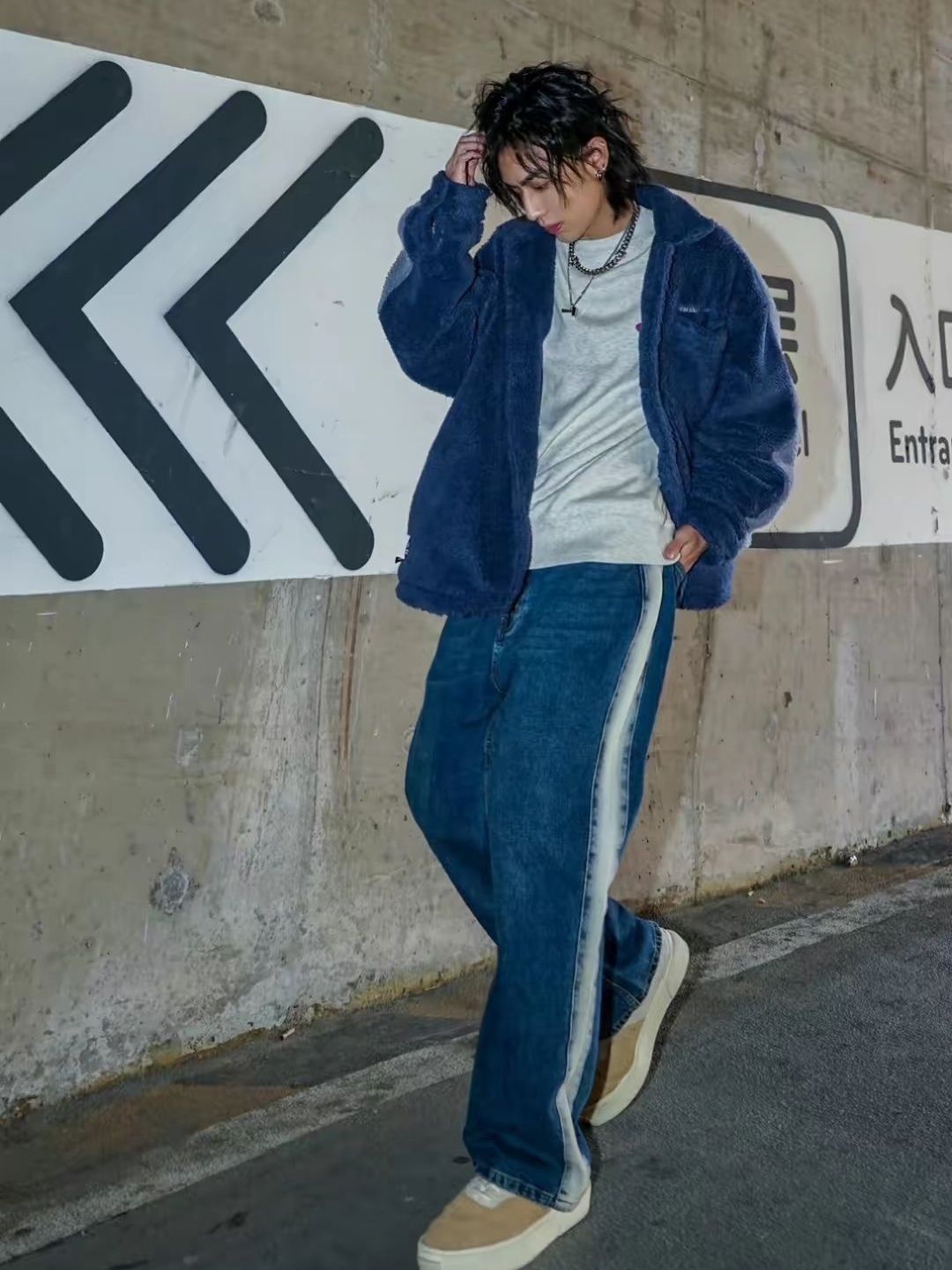 【秋冬爆款】 EQUALIZER 2022AW 羊羔绒撞色夹克外套 🌮🌮🌮 蓝色夹克 白色内搭 蓝色牛仔裤 黄色板鞋 🥙🥙🥙 这一身真的帅气🍟好帅啊🥩青春男大学生🍖夹克颜色也是好看的🥪蓝色又好看🥩适合秋冬穿的一身🥪这款外套可以穿出多种感觉🍟女生穿也是满满的ins风,🍘简约的款式同样也是很百搭的,可以随意挑选下搭,🥓日常出门通勤穿非常合适。🥗🥗这件夹克是属于比较长的类型,...