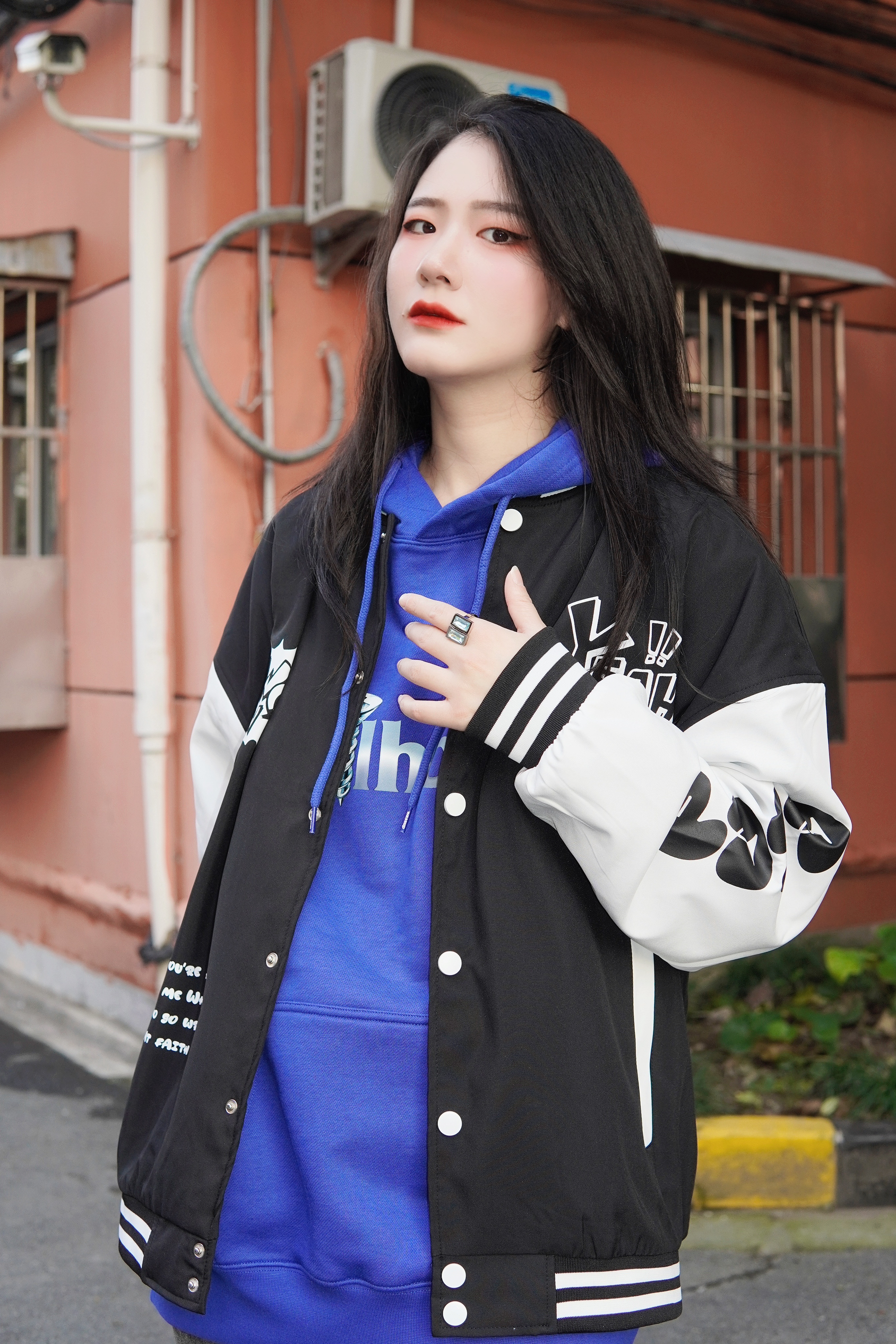 𝑯𝒆𝒍𝒍𝒐 宝子们👏🏻 这里是穿搭百变的170高个子梨形女孩苏苏👧 1⃣️1⃣️🈷️的最后一套look来啦🖇 电光蓝卫衣做内搭真的巨好看 超级喜欢后背的图案 脱掉外套的时候还有点小惊喜 秋冬选择亮色系的卫衣就很绝 搭配黑白撞色的棒球服 街潮感满🈵️ 秋冬最爱的也就是棒球服叠搭连帽卫衣啦 再来一条黑色渐变牛仔裤👖 街头女孩就是我啦👧 小细节就是我的蓝色水晶💍 和卫衣颜色很好的呼应 而且超宽的戒...