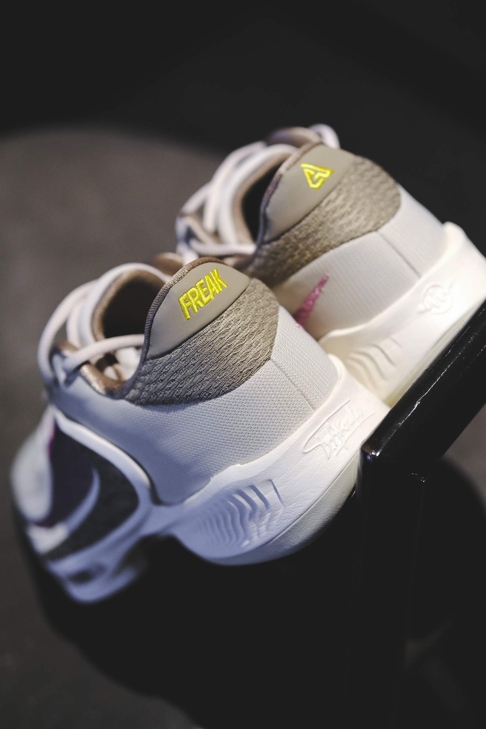 字母哥的球鞋在国内似乎热度一直都是很低的,但是由于每一次骨折的售价实际球场上的可见度也高了不少!其实他的球鞋表现无论是从外观还是到实际穿着体验都还是对得起这个价位的! 比如这款第四代,整个鞋子从外观来说个人认为设计极其出色,速读感的线条配合上倒着的大钩子,非常流畅帅气!同时又可以起到抗扭转的功能性,其次鞋面材料也在该加固的地方做了加固,但是轻薄的地方则非常透气舒适! 中底依旧是前掌两颗小气垫装...