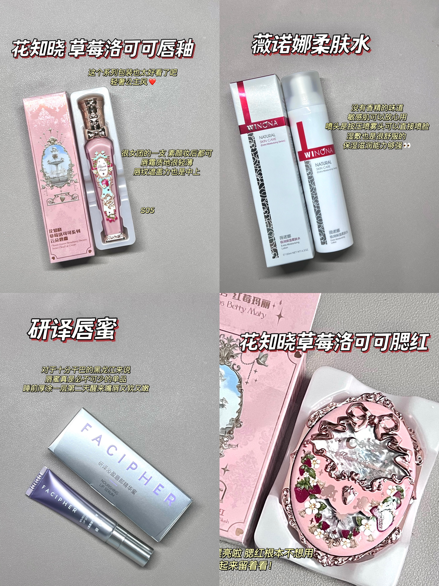 哈喽哈喽 我最近的更新频率还算不错 值得夸夸一下 话不多说 先来介绍一下今天的参赛选手 🍰百奈子唇膏 🍰XDG水乳 🍰施华蔻洗发水(细软塌亲测有效 蓬起来了) 🍰米蓓尔小蓝帽(dodo肌给我冲)