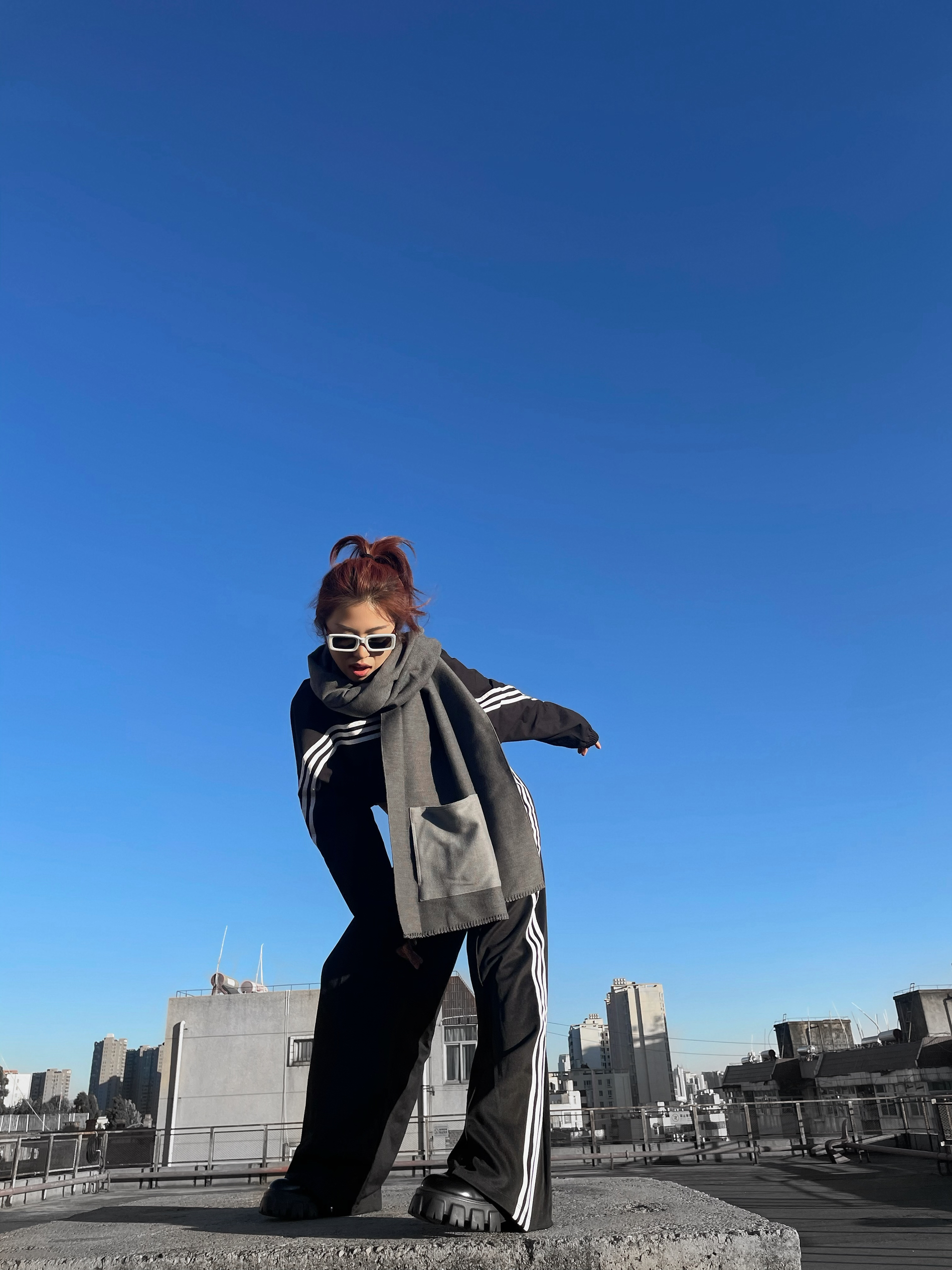 同样是阿迪达斯,性价比太高了! 今天巴黎世家即视感look 整套都是满满的运动感配上鞋子就有有点巴味道😎 造型方面呢选的是围巾🧣和墨镜🕶️ 运动潮酷两不误~ 即使日常穿搭在秋冬围巾也特别实用!保暖的同时又能给丰富穿搭增加造型感~一举两得咯🤓 👕:Adidas 👖:Adidas 👟:stooshe 🧣:蕉下