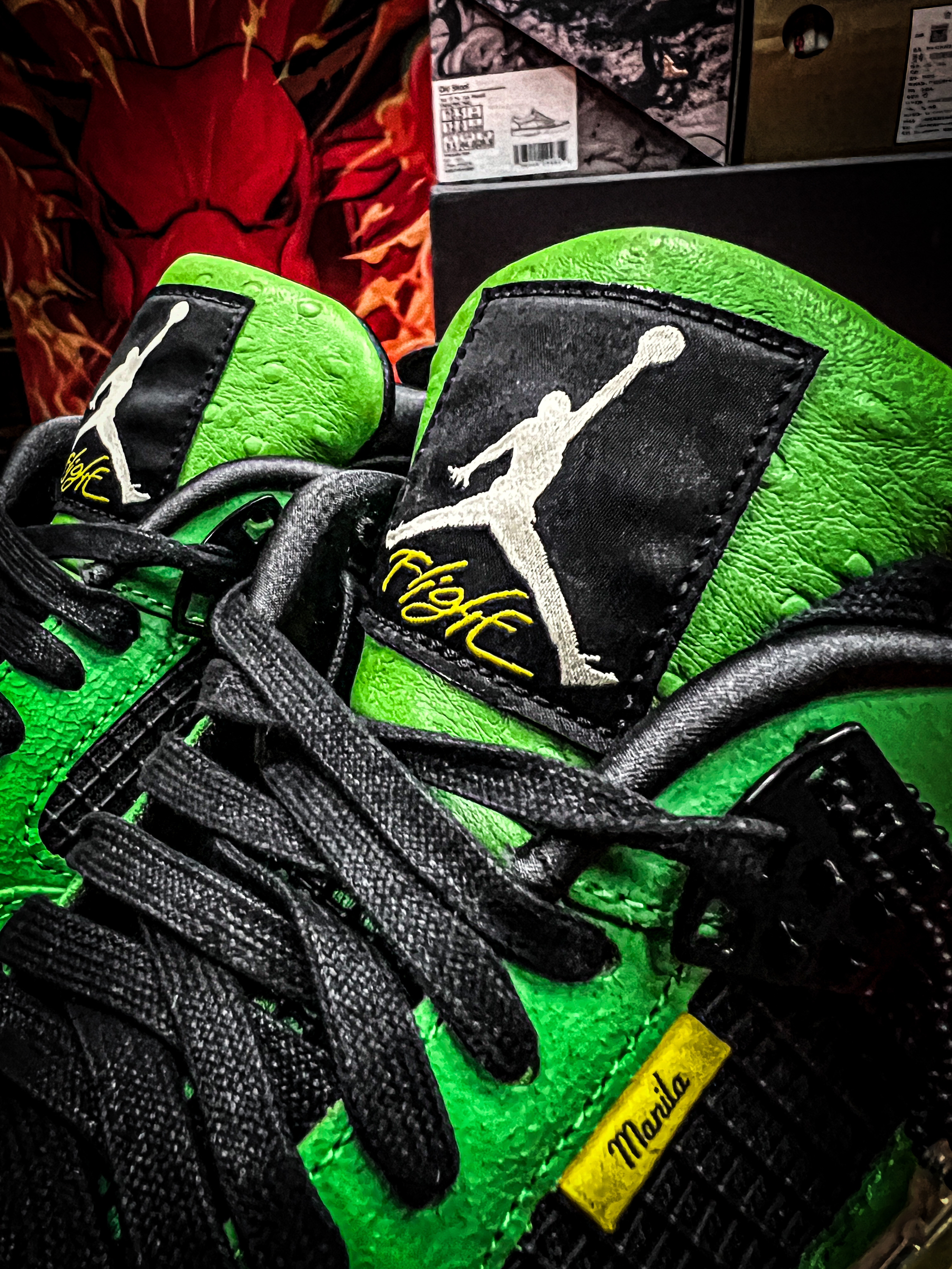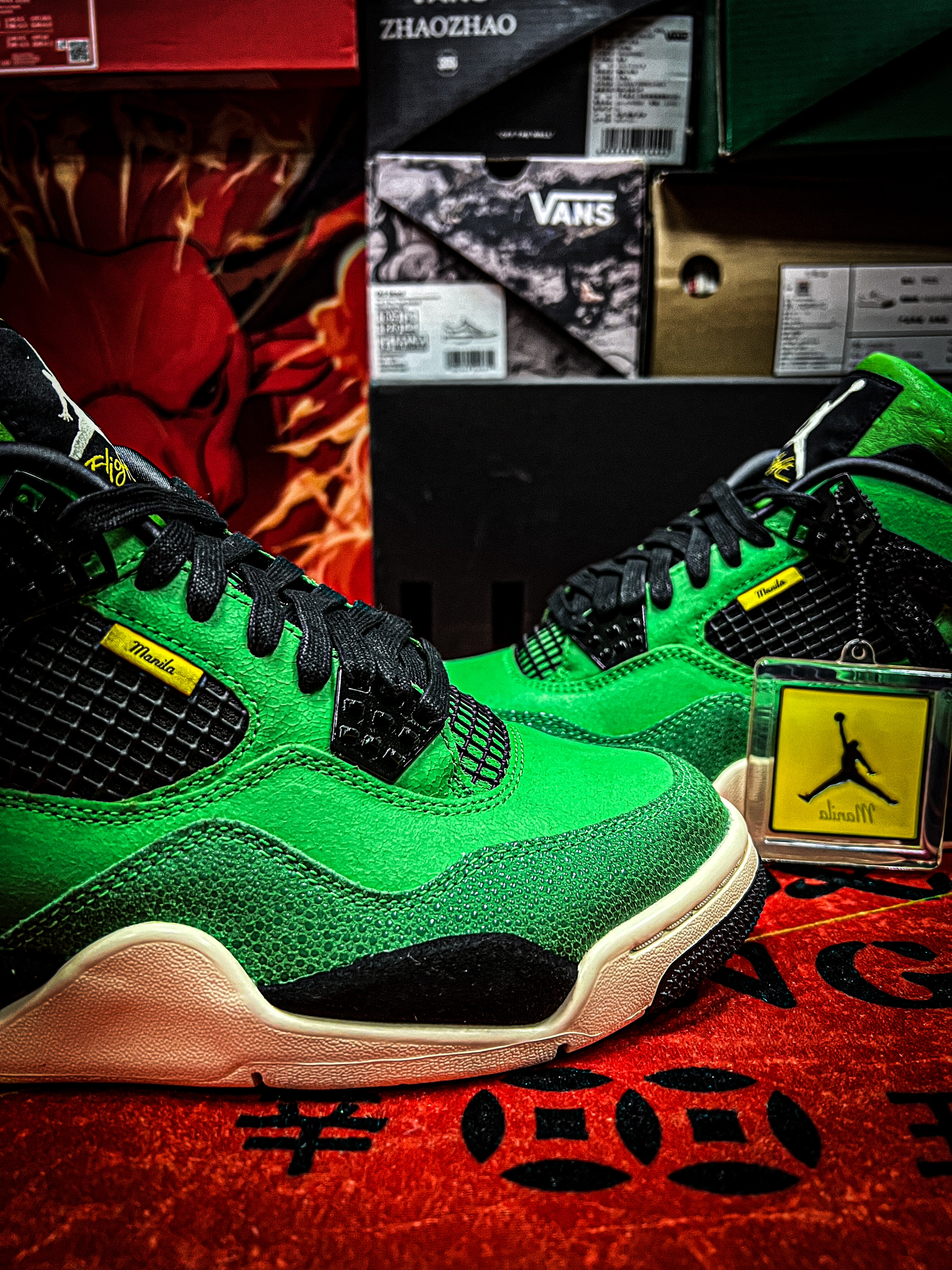 为庆祝全新店铺在菲利宾马尼拉正式开业,Jordan Brand 准备了一双极其限量的 Air Jordan 4 “Manila”。鞋款受到马尼拉城市风格启发,绿色皮革鞋面下以鸵鸟皮纹路打造,并且鞋款其他细节处采用黑色处理。此外,大底上使用红色、蓝色和黄色代表菲律宾国旗元素。 全球限量150双!