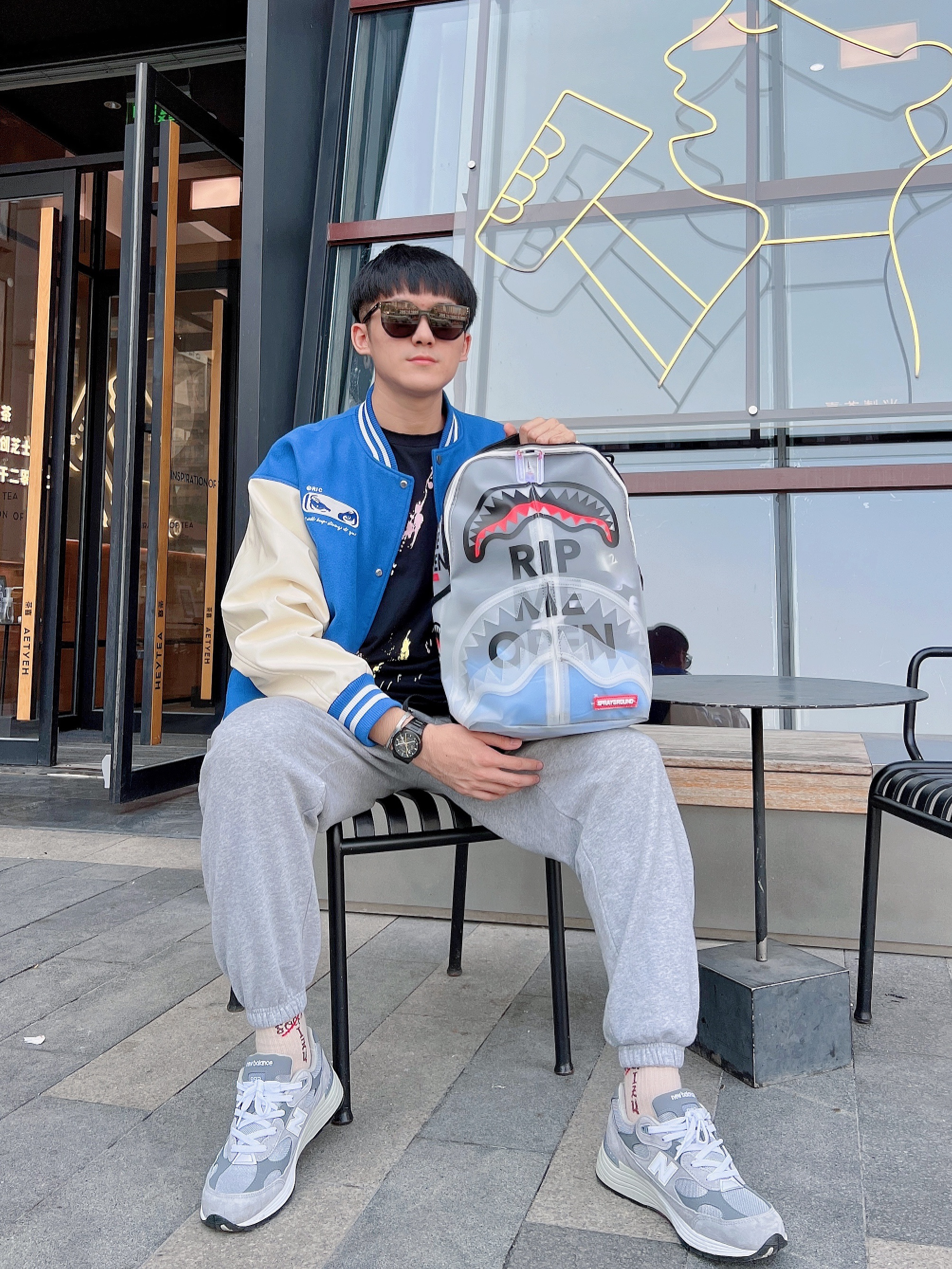 男生衣柜里怎么能少了棒球服 简直是复古街头风必备单品 而且超适合秋冬季叠穿搭配 简单的打底黑色polo衫 外搭蓝色棒球服外套棕色的搭配复古耐看 保暖性上更是没话说 手感也很好 下半身搭配灰色百搭休闲裤 最后搭配新百伦元祖灰球鞋 整体搭配简约高级街头感十足!