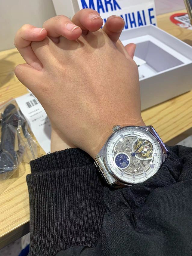 本篇笔记关联了Mark Fairwhale/马克华菲 日月星辰多层次镂空陀飞轮大表盘精钢雕花夜光防水自动机械男士手表 银壳白面钢带 等商品,为用户提供真实的使用体验和购买参考。