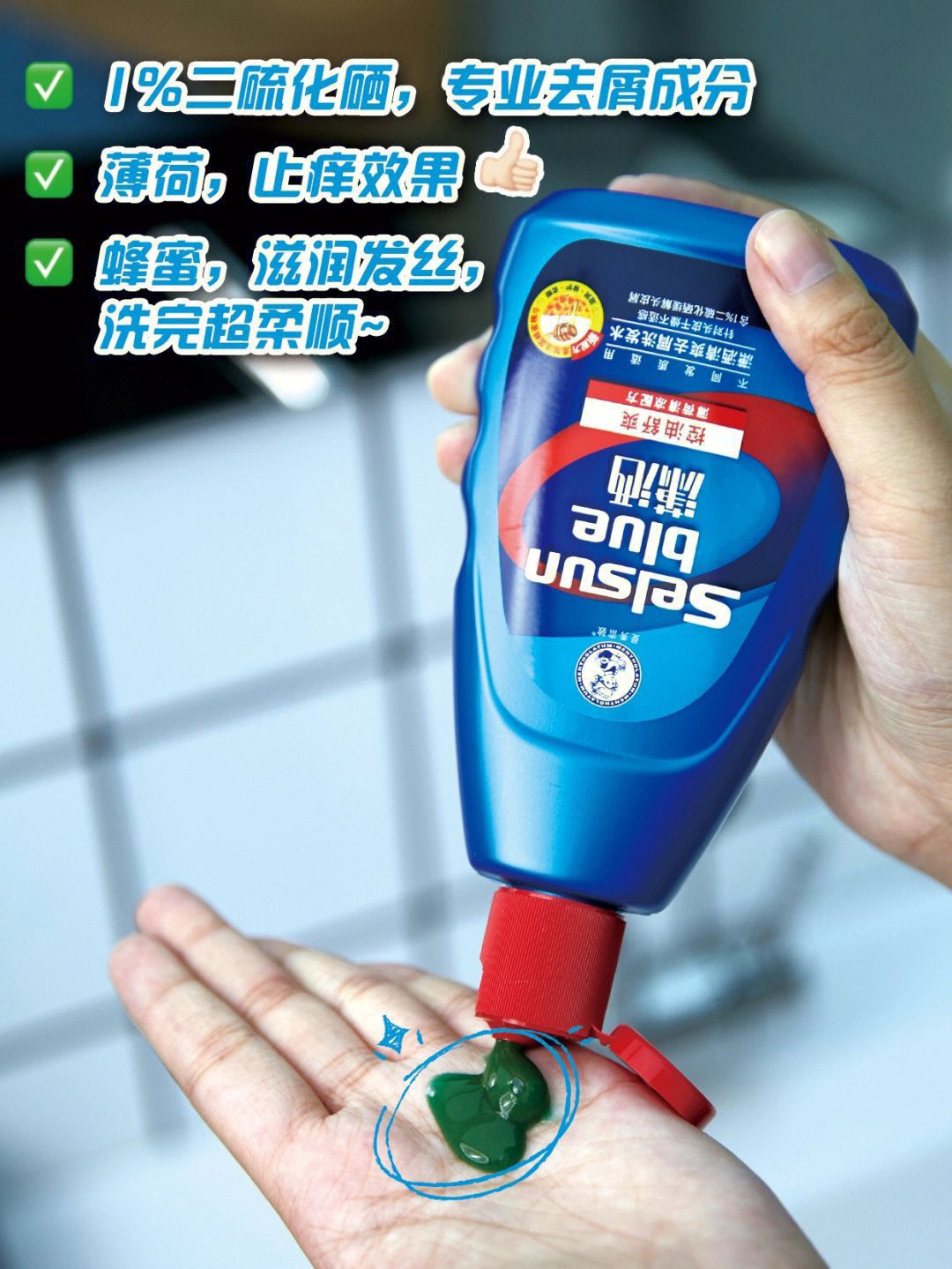 洗一次头发,撑不过两天就头皮屑满天飞,一肩膀的雪花❄️,拍都拍不掉🆘头屑星人的烦恼,是时候交给曼秀雷敦Selsun潇洒去屑洗发水来终结啦!👍 ⭐️主要成分是1%二硫化硒,这是专业对抗生成头屑的马拉色jun的去屑成分,能很好地对抗因为真jun、脂溢性皮炎造成的头屑反复问题,去屑效果杠杠滴👏 ⭐️添加了薄荷🍃+蜂蜜🍯成分,有效止痒的同时还real滋润,用完头发顺滑,发丝清爽蓬松,三天不洗头都头发不会油...