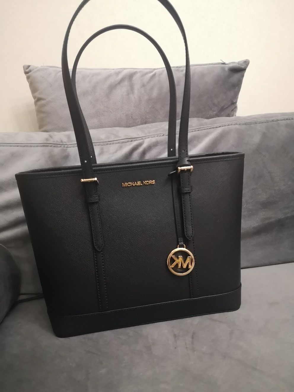 本篇笔记关联了Michael Kors Jet Set Travel 大号 牛皮复古大容量字母LOGO坠饰通勤托特包单肩包 黑色等商品,为用户提供真实的使用体验和购买参考。