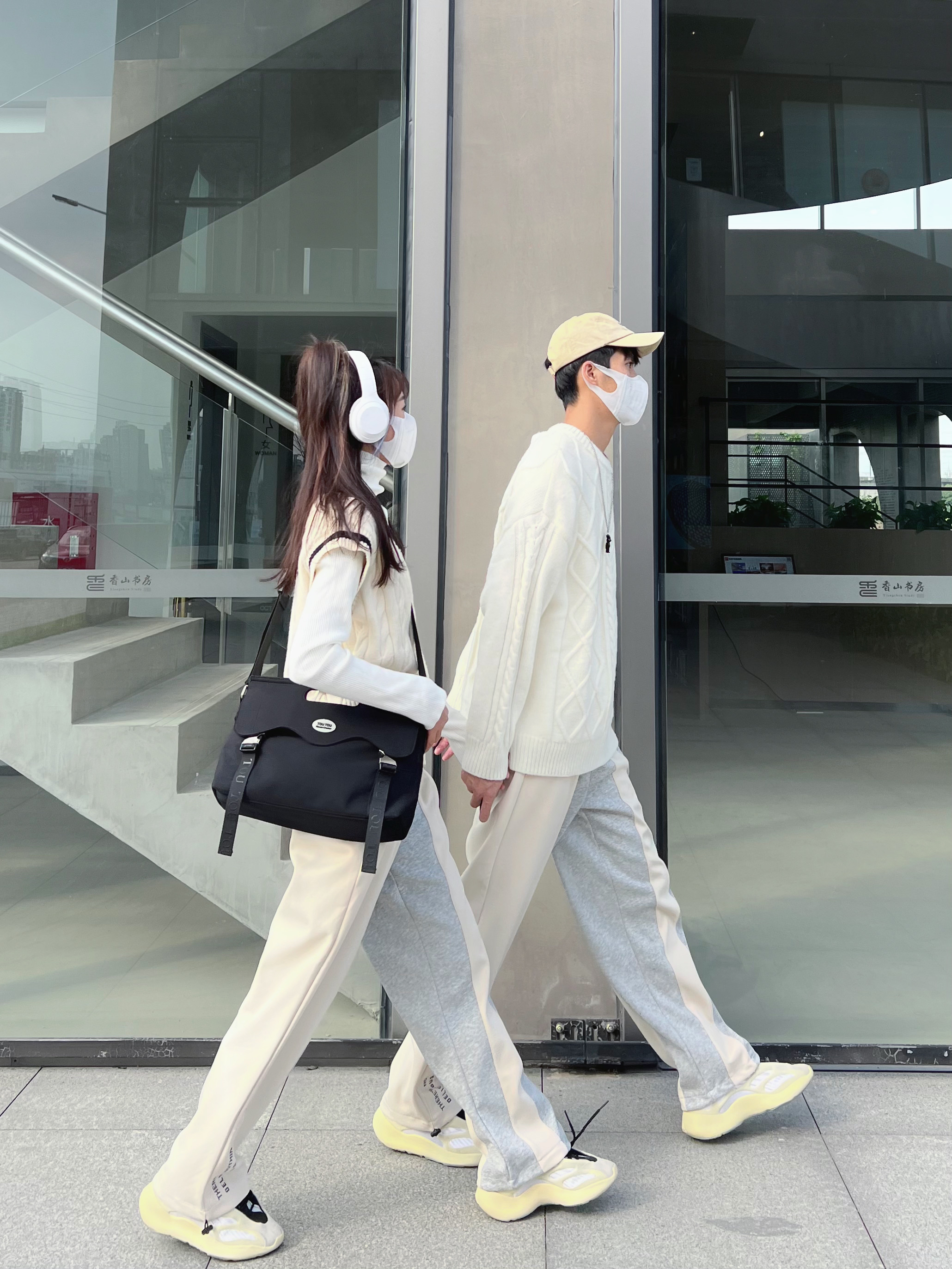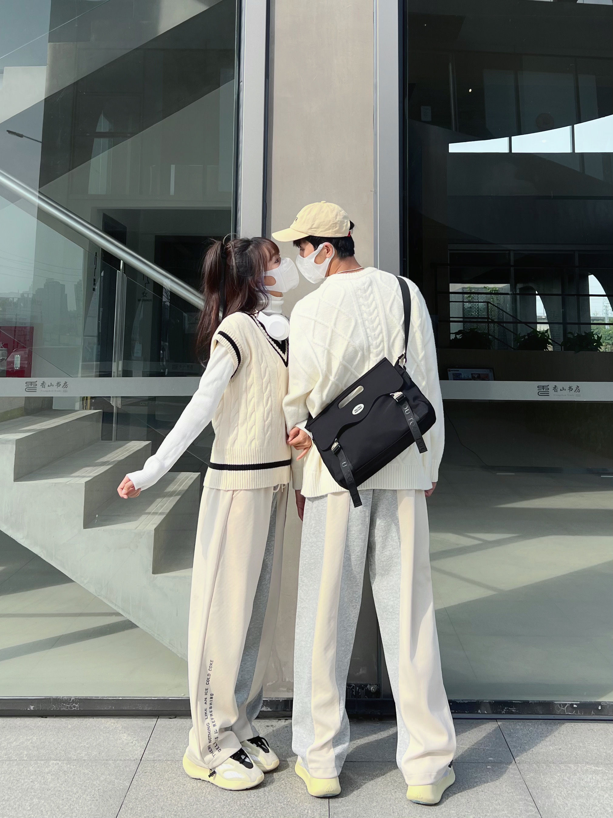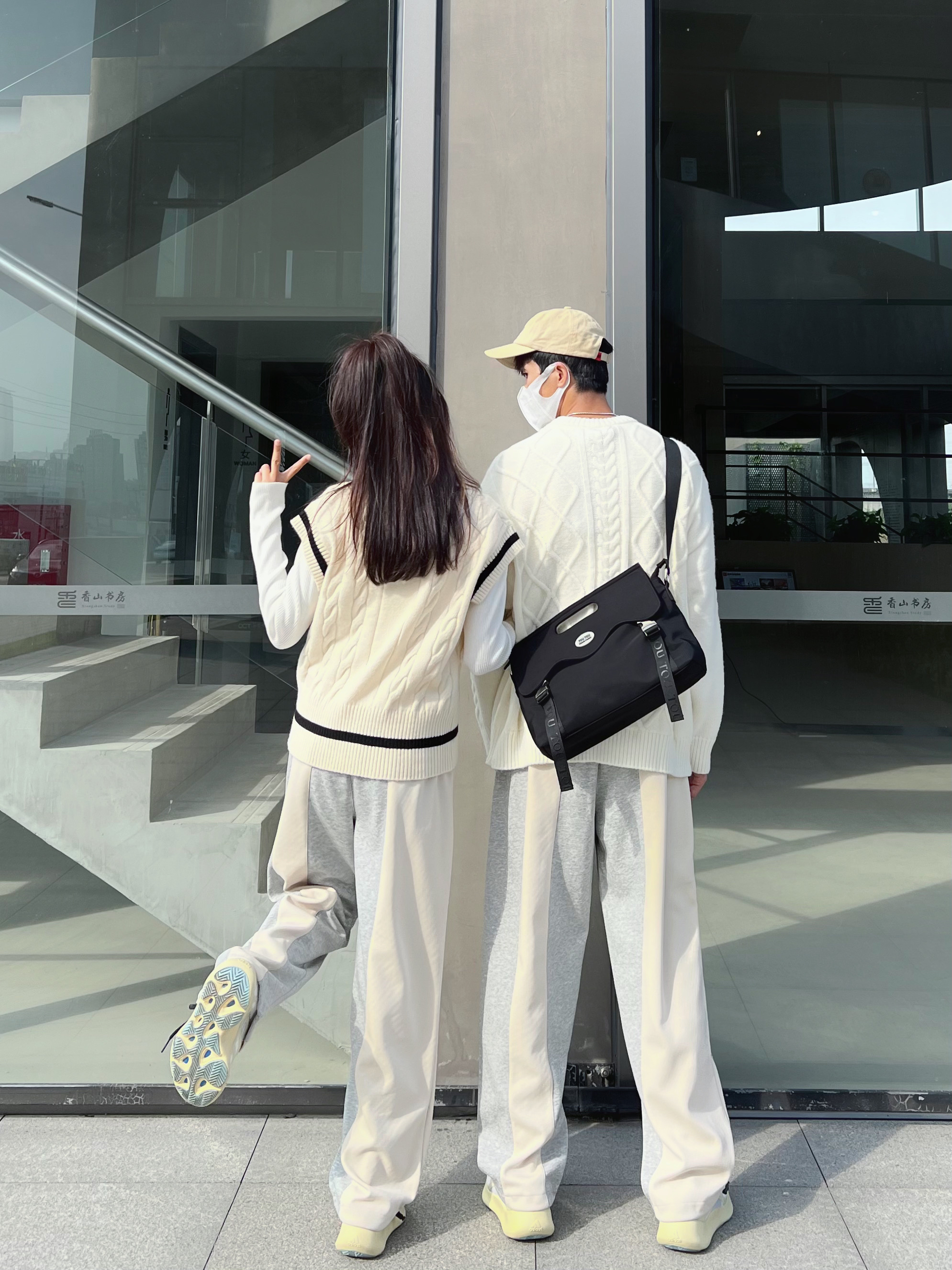 浅色系穿搭也很好看呢🏻 今天这套还用韩系的~ 米白色毛衣搭配可口可乐的撞色休闲裤 同样也是浅色系的 米白拼浅灰色也很养眼~ 配饰上来一只黑色的斜挎包 toutou这款男女同款的斜挎包还蛮百搭的 女友和我都能用!是很实用的一款包没错啦! 方形的设计还带点学院风的感觉~ 跟今天这套韩系休闲风还蛮搭的! 容量挺大的 出门完全够用☑️