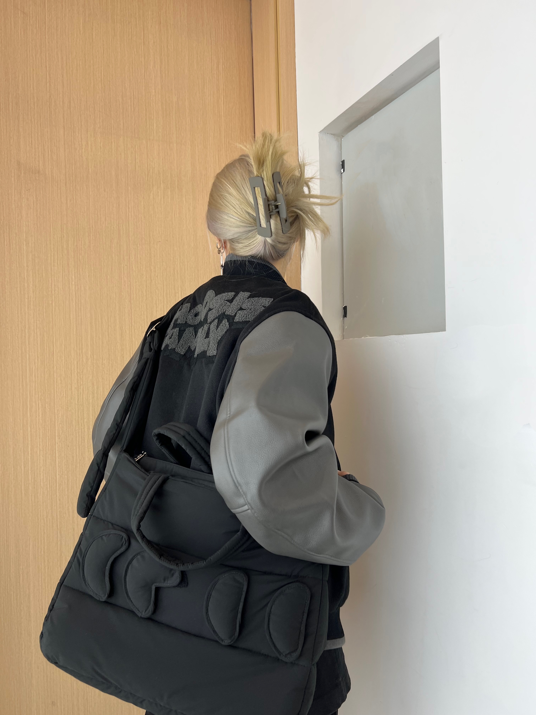 夹棉棒球夹克在保暖的基础上又不显臃肿 黑色yyds!!!!!!