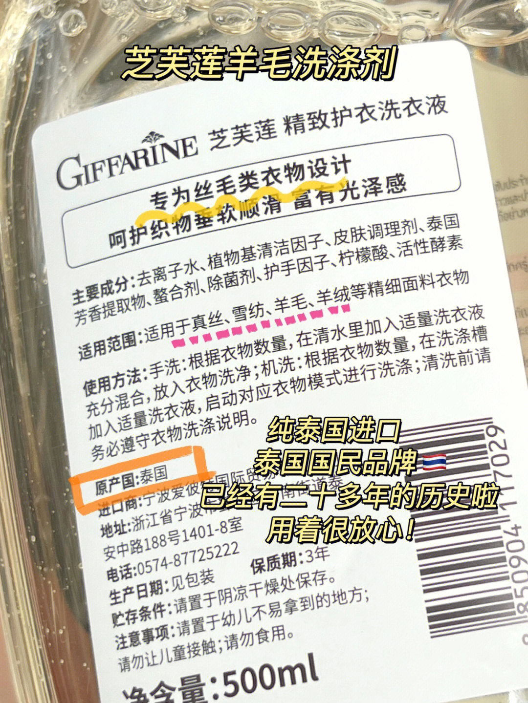 以前用普通洗衣液洗完真丝啊羊毛类的衣物之后 皱皱巴巴的! 还容易变形发硬 毫无质感 但是经常跑干洗店开销太大啦🫠 在闺蜜的推荐下 我买了芝芙莲羊毛洗涤剂自己在家洗 感觉我的衣服都越洗越新了是怎么肥四!! 突然相见恨晚了555! - 芝芙莲是来自泰国🇹🇭的国民品牌呦! 用着就很放心!香味也是满满的泰国风情 这瓶羊毛洗涤剂味道是甜梨与葡萄香🍇 前调是香甜馥郁果味 后调带着一丝清新的酸 像少女般甜美俏皮...