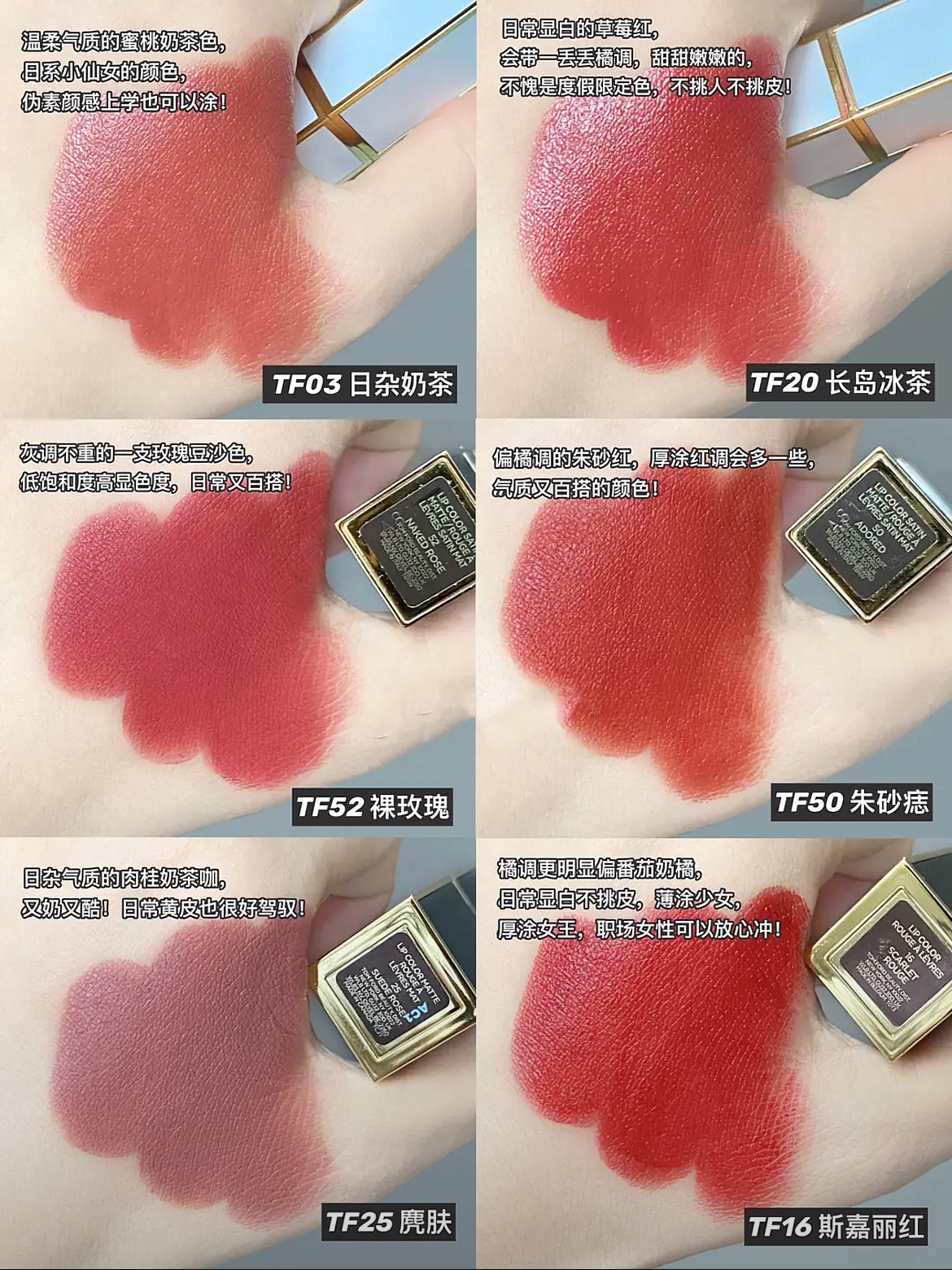 我个人比较喜欢细黑管系列的质地顺滑的半哑光带有一点光泽 #52裸玫瑰 灰调玫瑰茶棕我是橄榄皮平时素颜也会涂这支温温柔柔的 #27无耻之徒 枫叶红栗棕贵气的调色衬肤色~ #50朱砂痣 暖橘调朱砂红薄涂带点甜厚涂气质姐姐