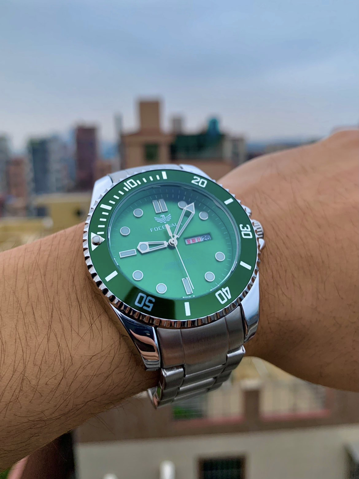 给手表也来点绿色 搭配的清爽小细节 ✅ 圣诞节的仪式感也可以自己安排 大家都送给自己什么礼物了呢❓ 最近特别中意的一块手表 ⌚ 果断安排入手 银色的选择不会出错 搭配什么衣服都好看 简约大气的感觉 我是绝对抵挡不了的 再有绿色的加持 小清新的感觉特别舒服 护眼绿色 就算是眼睛累了 看看就好了 hh 日常各种场合都可以佩戴 nice 👍 前劲 FOCEWALK