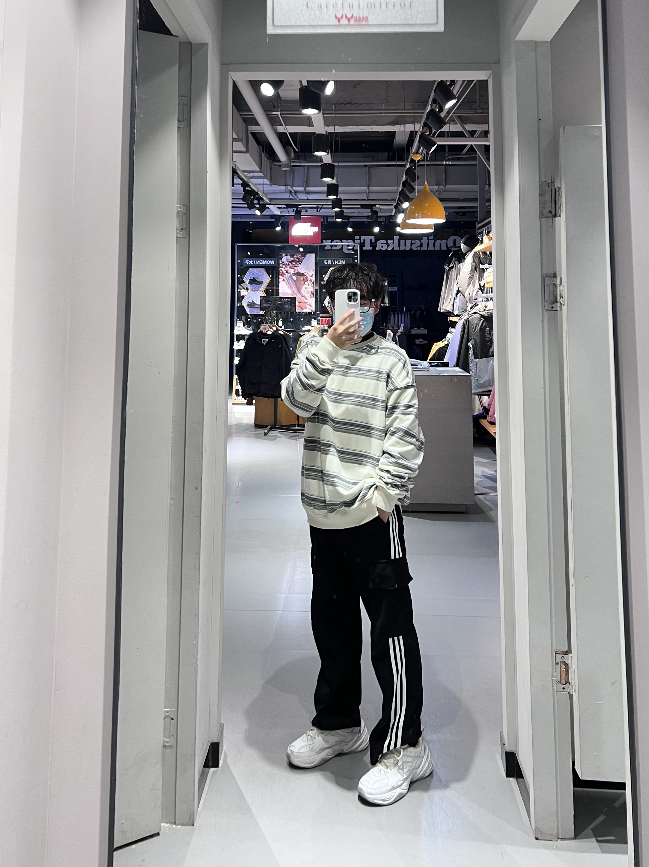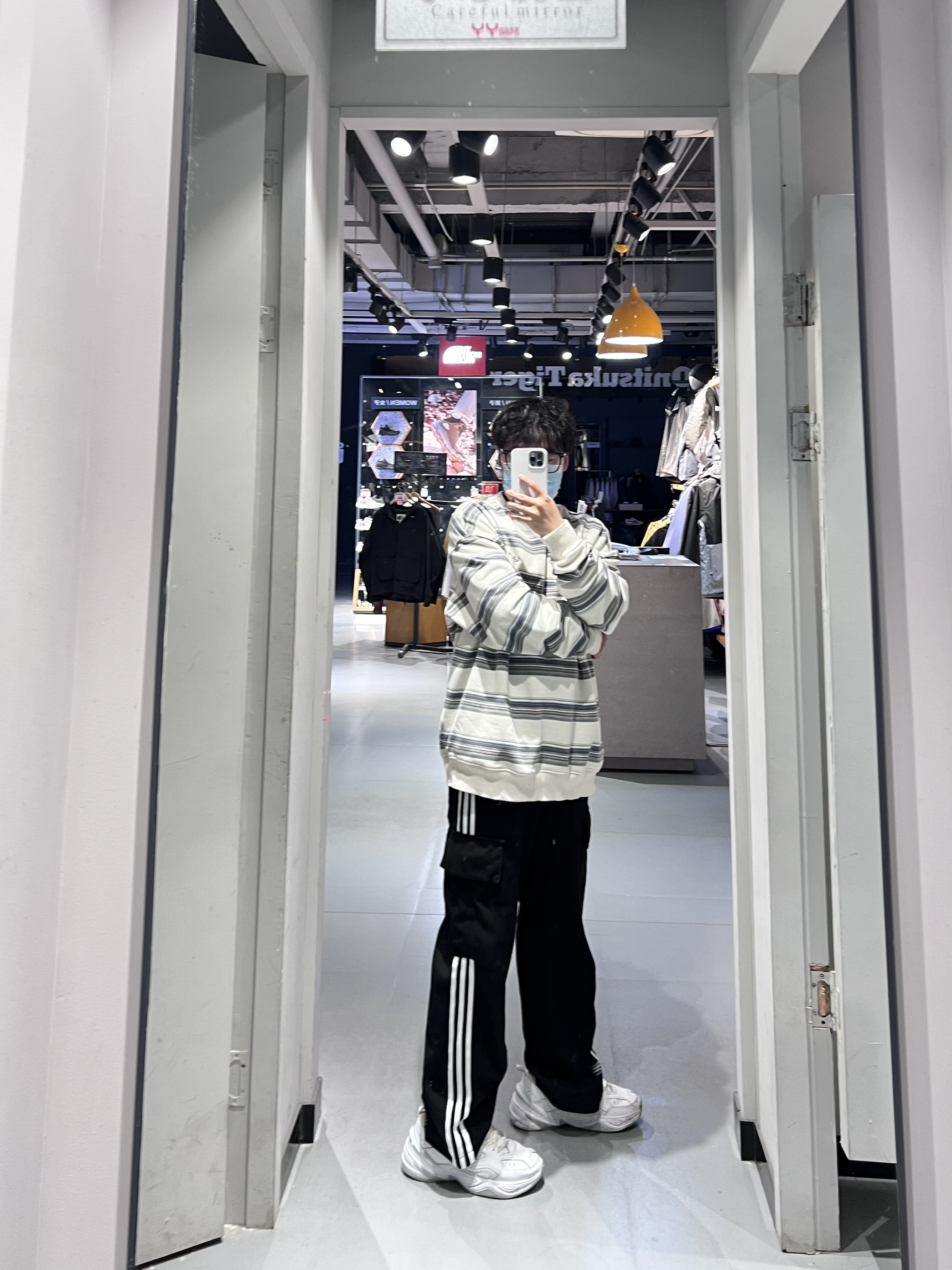 今日穿搭分享 👔条纹奶白色卫衣 F426这款卫衣真的好爱 穿上秒变小奶狗哈哈哈哈不过确实很帅 奶呼呼的减龄装嫩卫衣,小狼狗尝试一下小奶狗 女孩子也非常推荐啦,百搭显嫩小姐姐更🆒 👖Gwola x 0306H 联名款 初恋是阿迪排扣裤,再恋就是就是他 确实有点阿迪那味,但也有自己的创新 三条杠设计加工装裤口袋垂感💯征服你 适合这个冬天里所有的穿搭风格给我爱到死 👟Nike M2K纯白 搭配小白鞋...