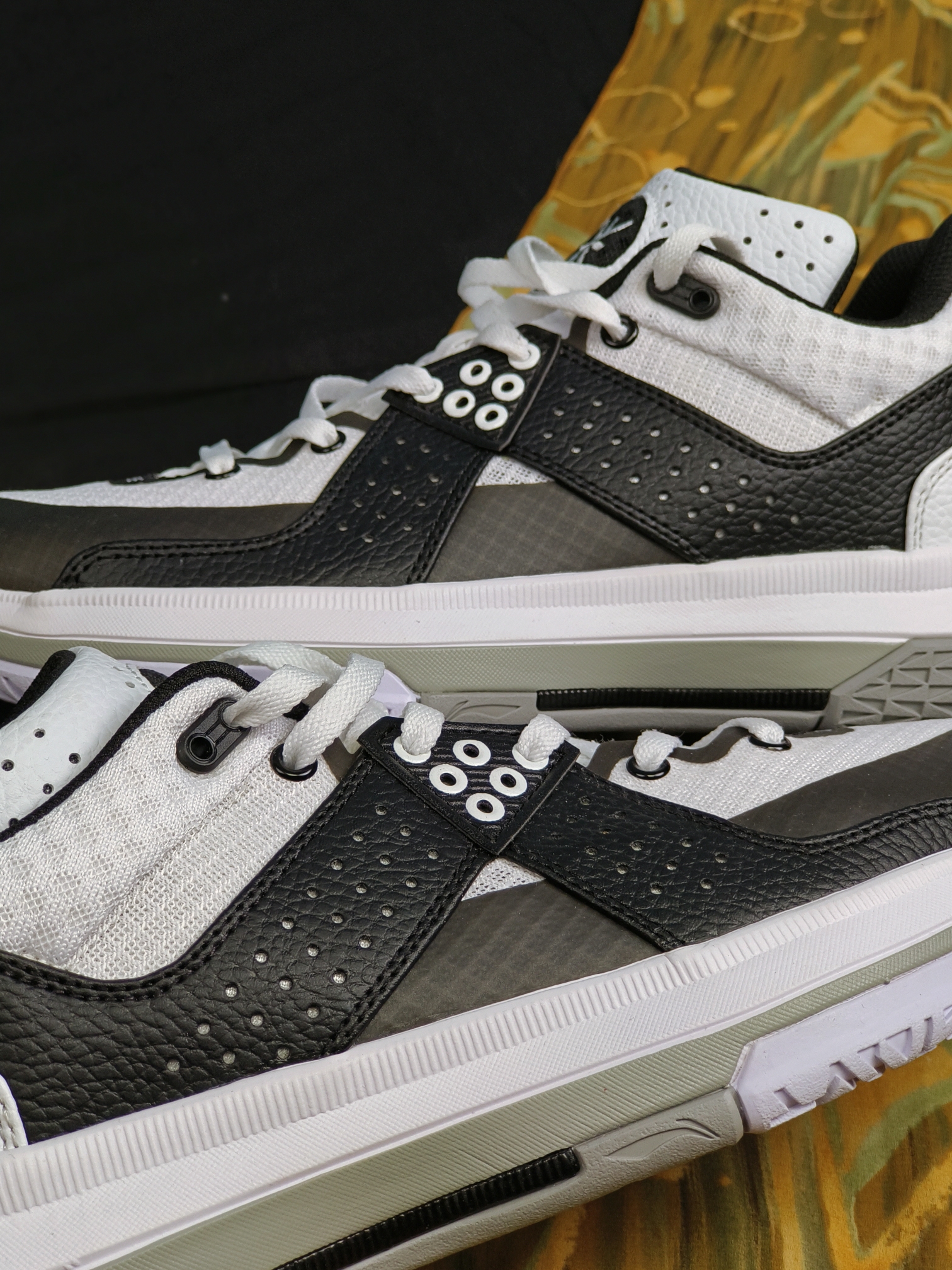 大家好,今天给大家分享这双李宁韦德之道系列的全程五代熊猫配色。 鞋子使用黑白的两色经典搭配非常好看,并且这双鞋子也可以出街穿。 鞋面使用牛皮,合成革,织物和热熔压胶,除了脚背处过于单薄之外,鞋子的鞋面没有任何问题,包裹也非常出色,鞋舌上面有:韦德米字Logo,后跟也有tpu的保护。 橡胶大底,抓地还是不错的,水泥地稍微有点不耐磨,李宁云的缓震在早期的耐用性稍微差了点,不过200多块钱,已经足够出色...