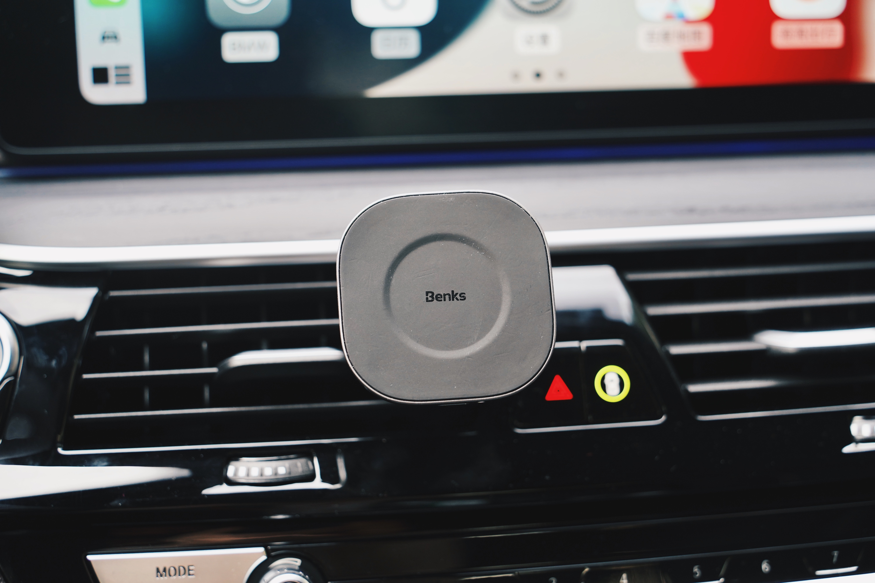 Benks车载手机支架,有时候装这个东西还是挺有用的,拆装很简单,需要的时候拧上去就行了; iPhone通过Magsafe磁吸就能固定在上面,同时开启最高15W的无线充电,一举两得。 转轴可以任意角度活动一定范围,方便我们根据自己的使用习惯调整手机位置。