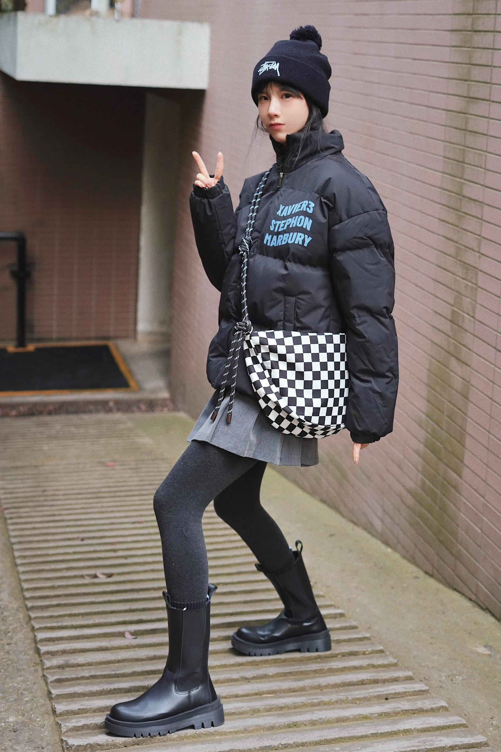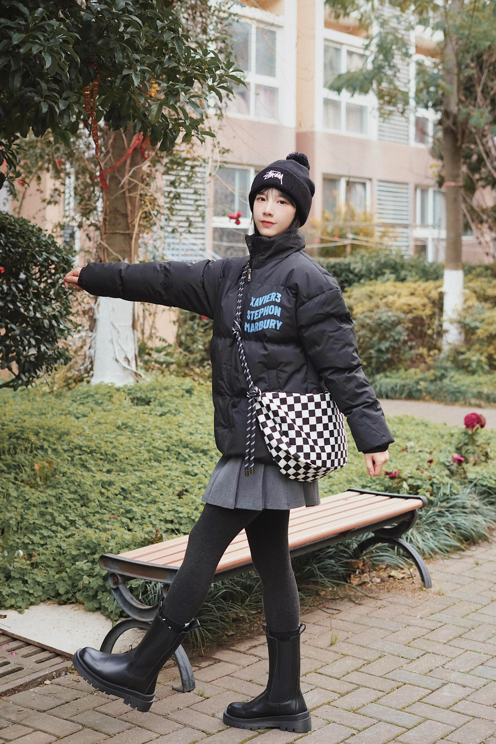 🖤🖤 真的太喜欢冬天啦 可以把自己裹成粽子 冬季穿棉服真的太好看了 黑色的百搭款,耐脏随便一搭就可以出门啦 印花的设计感略显活泼,性价比很高 搭配灰色百褶裙和纪梵希鲨鱼打底裤 再来一双中筒靴 简直就是韩系女主 腿长两米不说 还很保暖 北方完全可以驾驭 ❄️❄️ 棋盘格子斜挎包包也是我超级爱的 小小的包包大大的容量 冬天东西比较多 可以放水杯 充电宝 化妆品 本子 都没有问题啦 日常穿搭或...