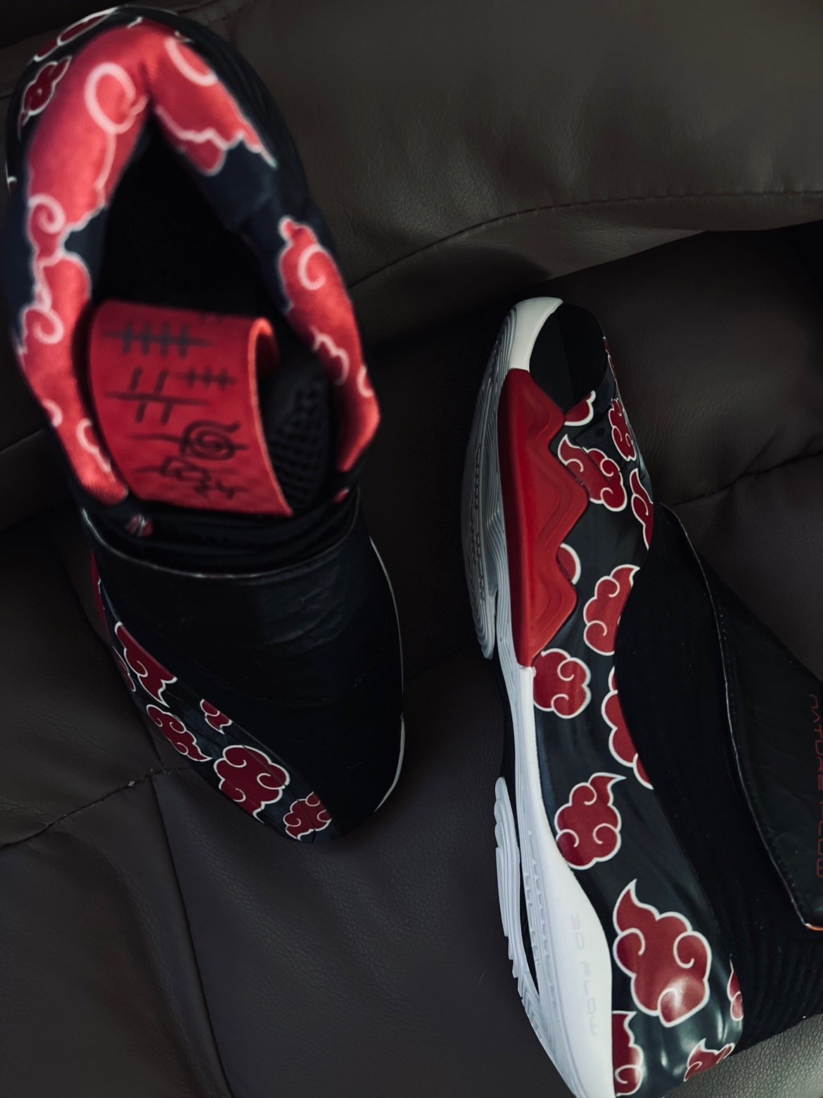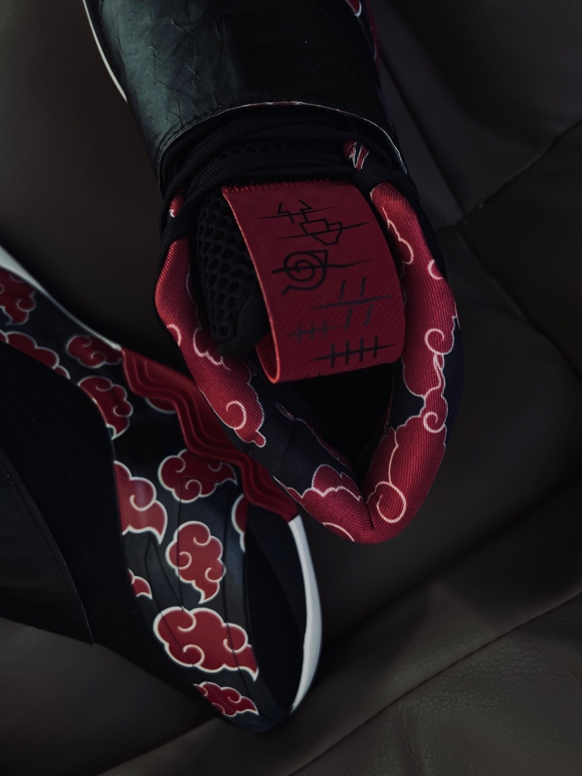 首先,这双安踏KT6“晓组织”鞋款,在鞋面的设计上是出彩的。选用了黑色作为基础配色,另外围绕着中底部分,绘制了一圈《火影忍者》中晓组织标志性的红色火焰图案,这种黑底+红色火焰花纹的设计,与动漫中晓组织穿着的衣服形象是完全一致的。作为火影中人气最高的组织,这双安踏KT6“晓组织”鞋款的发布,绝对能吸引一众火影迷的关注。 鞋面的魔术贴部分采用黑色杜邦纸材质打造,并带有撕撕乐玩法,撕开就能看到云纹图案和...