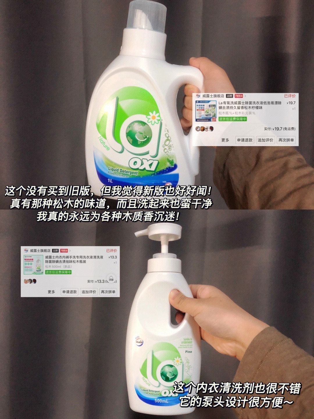 本篇笔记关联了Walch/威露士 La系列 松木香 洗衣液 瓶装 有氧洗长效抑菌除螨除菌机洗去污渍持久留香手洗实惠装 1L等商品,为用户提供真实的使用体验和购买参考。