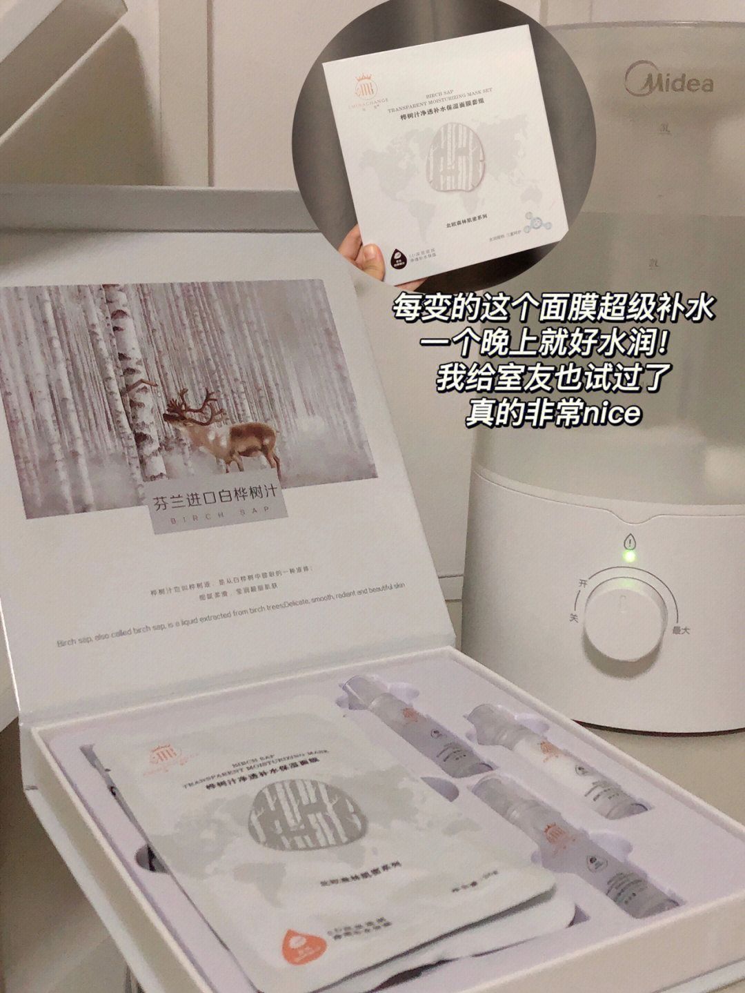 秋冬真的是好干,我每天都在各种补水补水💦 这些都是近期用到的狠狠不错的!补水一绝~ 👉🏻面膜 每变套装里面除了面膜,还有保湿水、精华和乳液!它的面膜我一整个就被惊艳到了,膜布很软很贴肤,里面的成分有芬兰进口白桦树汁,补水杠杠滴!敷完这个面膜第二天,能感觉到皮肤滑了!很多干燥问题都得到了解决!就是敷完记得洗脸,不洗的话会有一些黏腻~ 👉🏻加湿器 这个加湿器是买的二手,才40元家人们!放在宿...