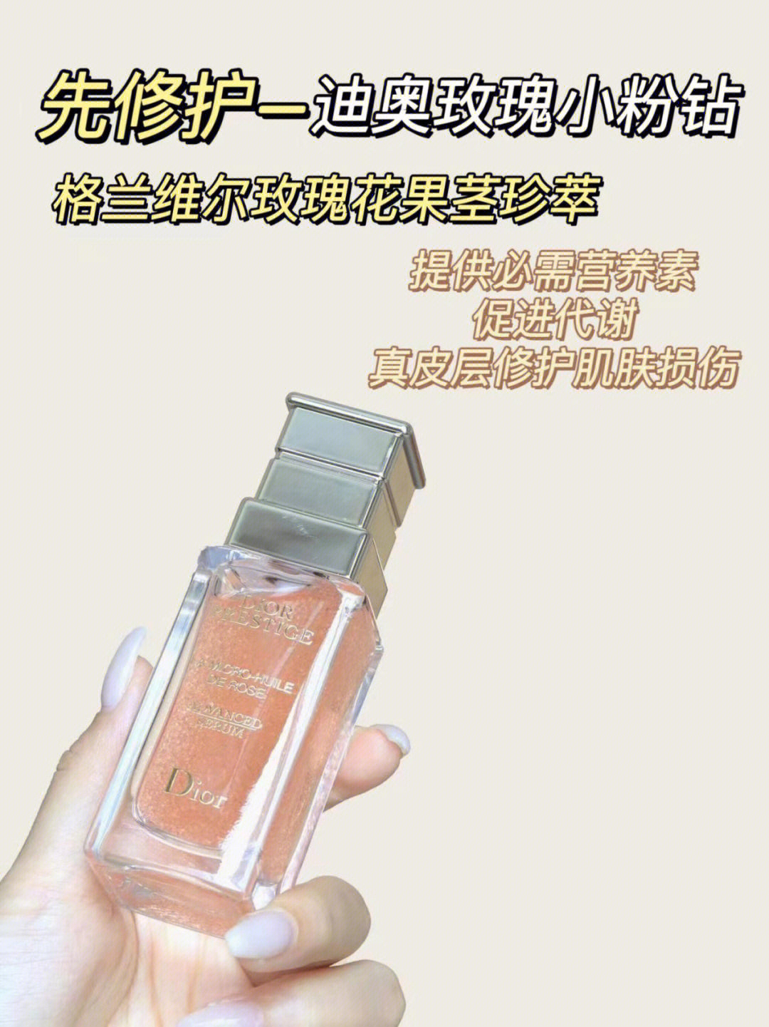 这些年在抗老之路上兜兜转转 一开始没掌握着抗老的正确方法 走了好多弯路 直到后来让我学到了 抗老原来是要先修护后再抗老 自从学到了这个方法之后 我在抗老这条路可谓是逐渐风生水起啊哈哈哈! 这对迪奥玫瑰cp是我贼拿得出手的抗老护肤品 用着真的能看到肌肤在改变!! - 玫瑰小粉钻精华是负责修护哒 精华里面融入了格兰维尔玫瑰花果茎珍萃🌹 提供营养素,促进细胞代谢 把肌肤修护好变得更加强韧~ 下一步的抗老...