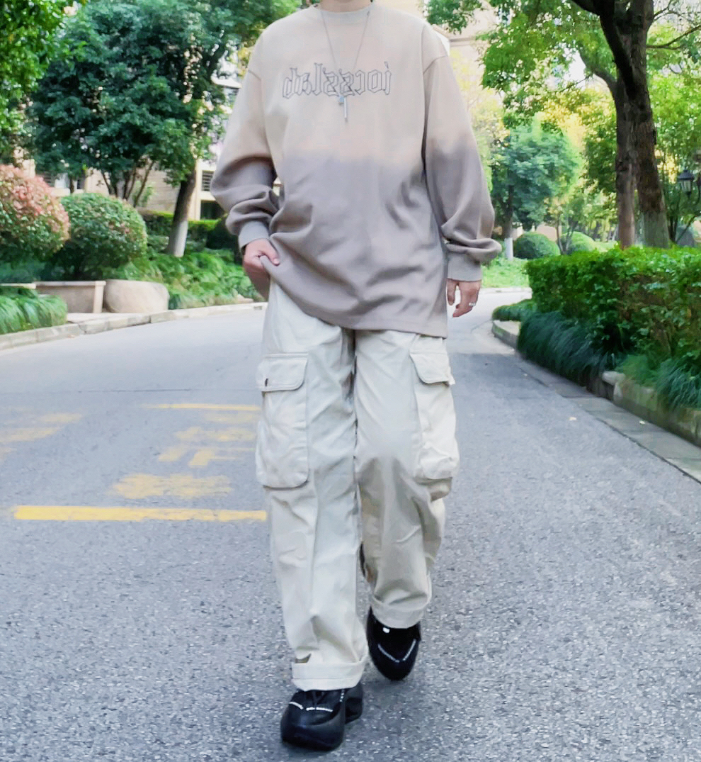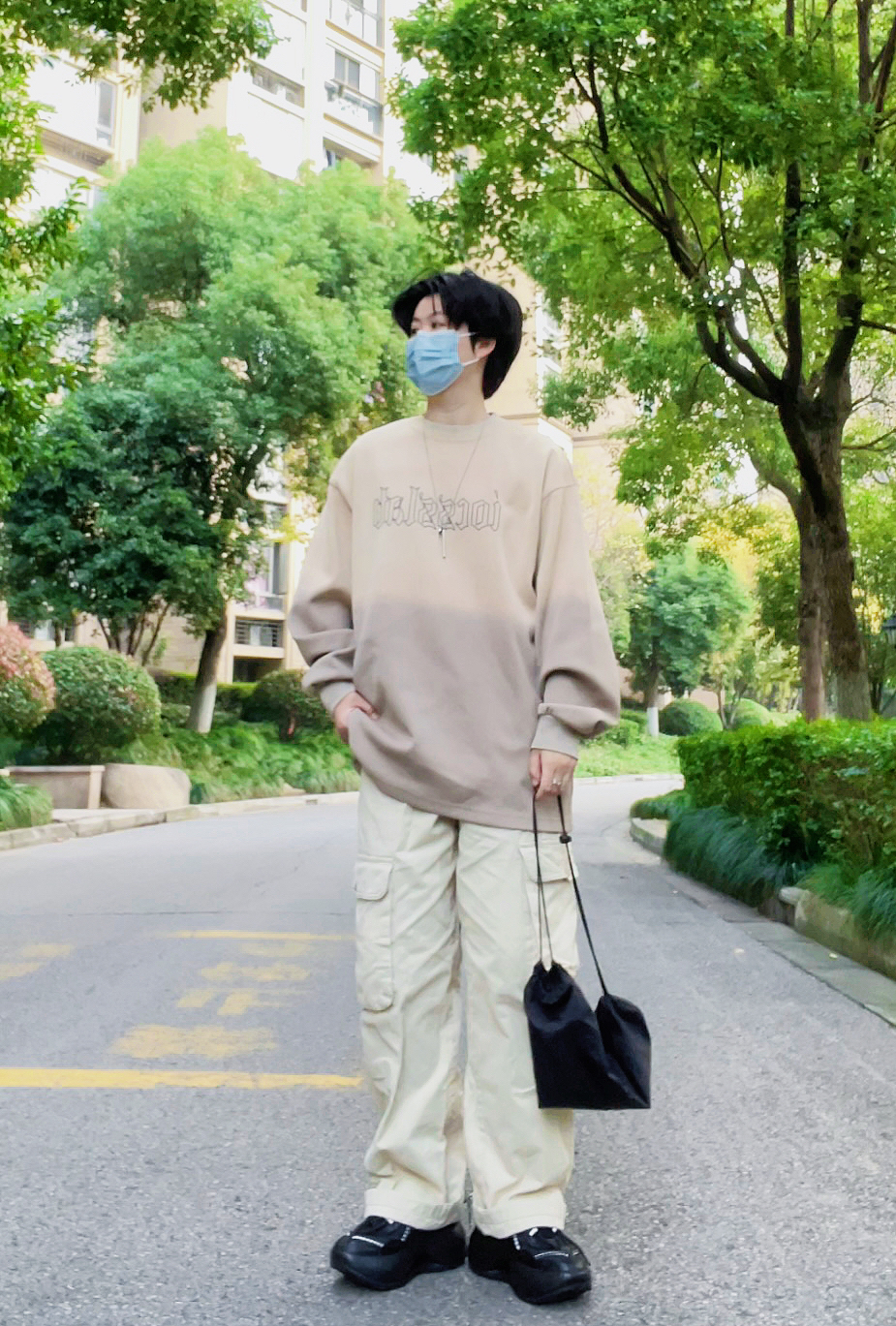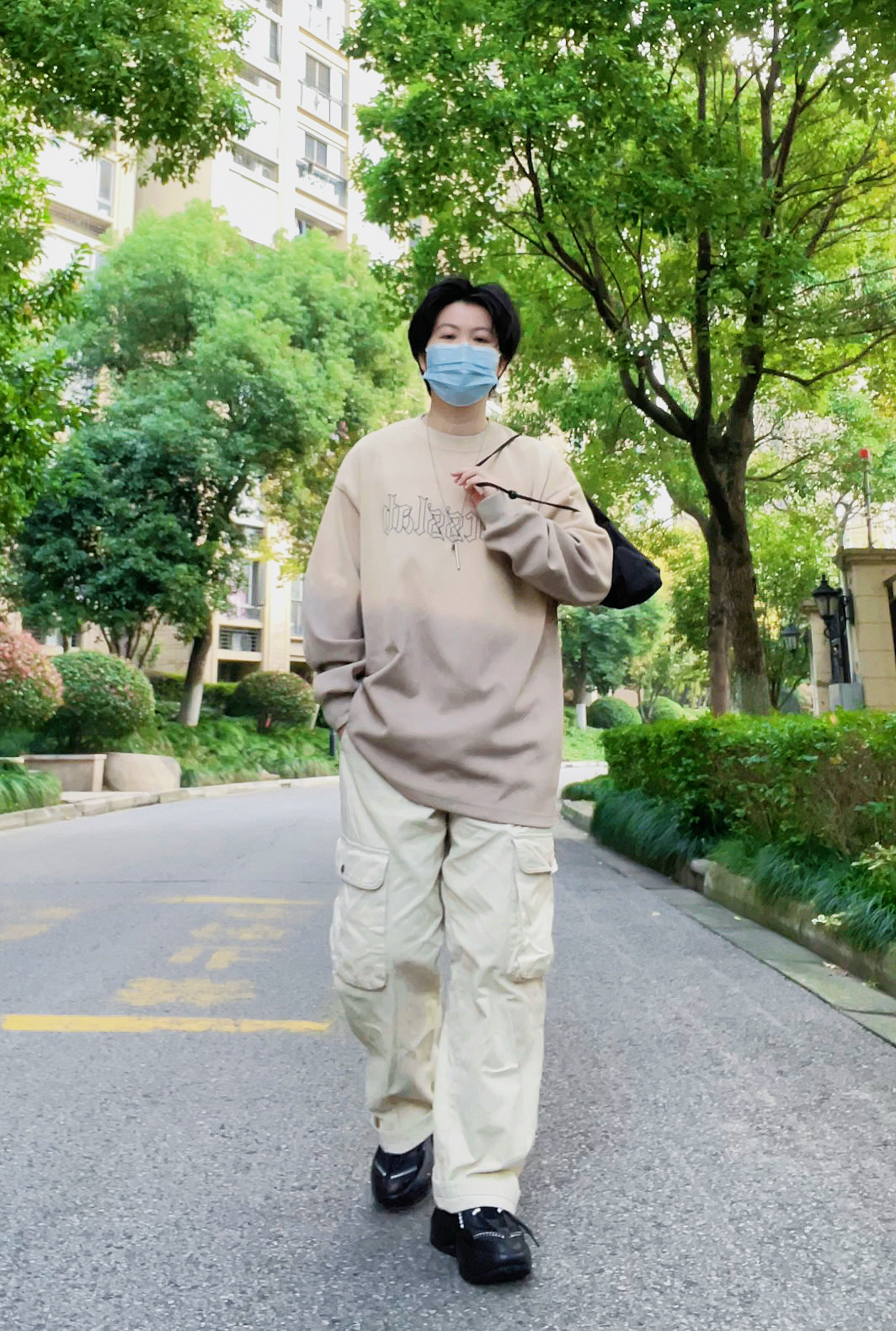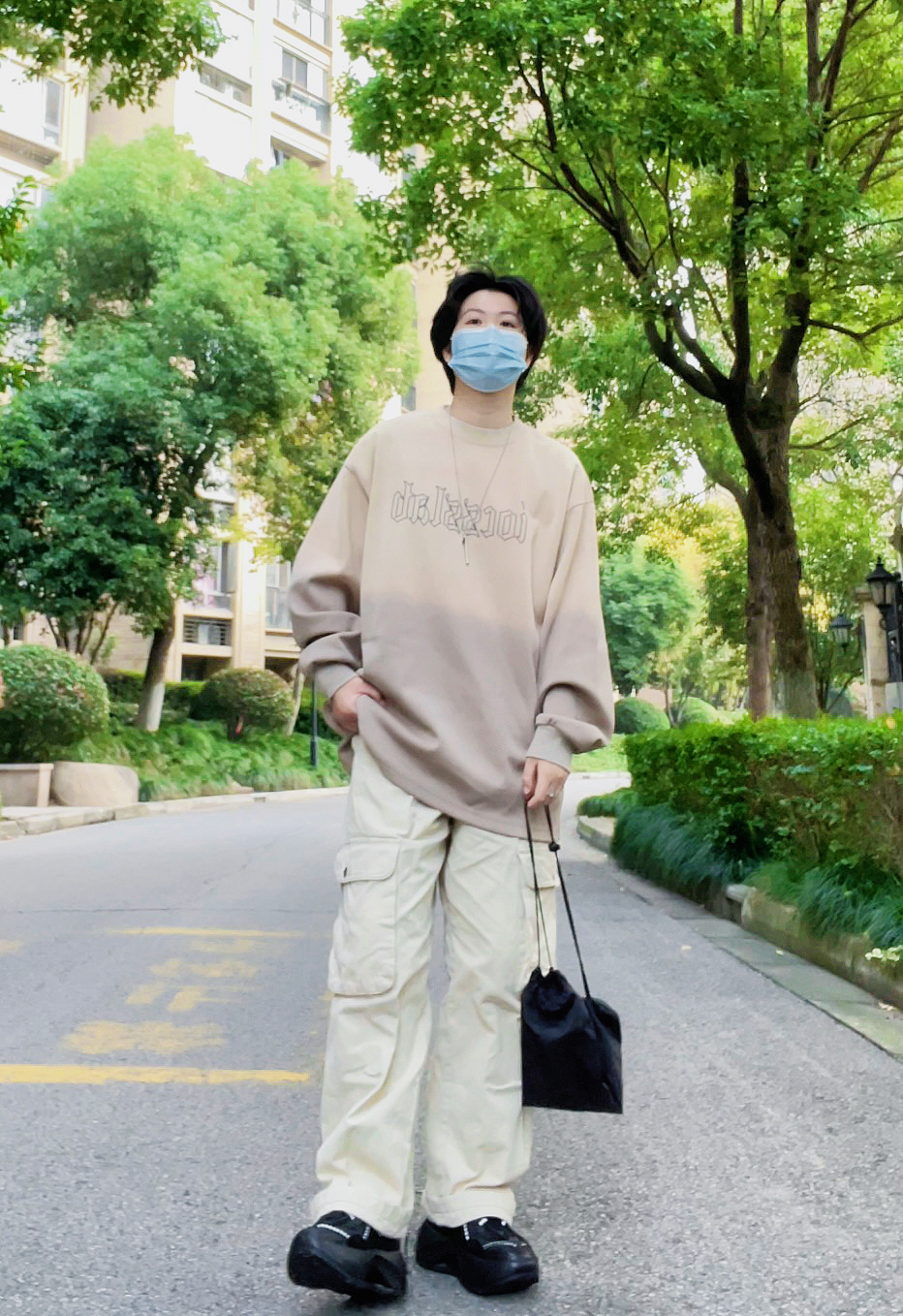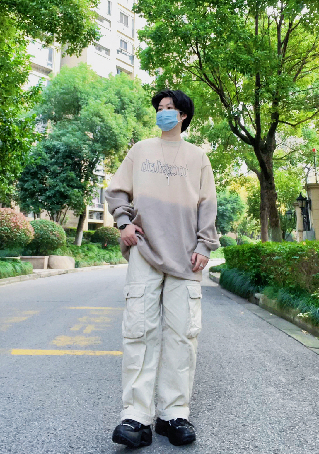 ✨今日搭配 卡其色渐变卫衣 米白色工装裤 黑色老爹鞋 ————————————————— ✨渐变设计的特色很醒目 宽松的舒适感单穿或是作为内搭都是很不错的选择 可以很轻松的演绎出休闲慵懒感的单品 推荐搭配牛仔裤和工装裤 ——————————————————— ✨OOTD|跟着买就对了|秋冬卫衣穿搭|米白色工装裤穿搭|渐变杏色卫衣穿搭|黑色老爹鞋搭配|中性风穿搭|每日穿搭|日常街头感休闲穿搭