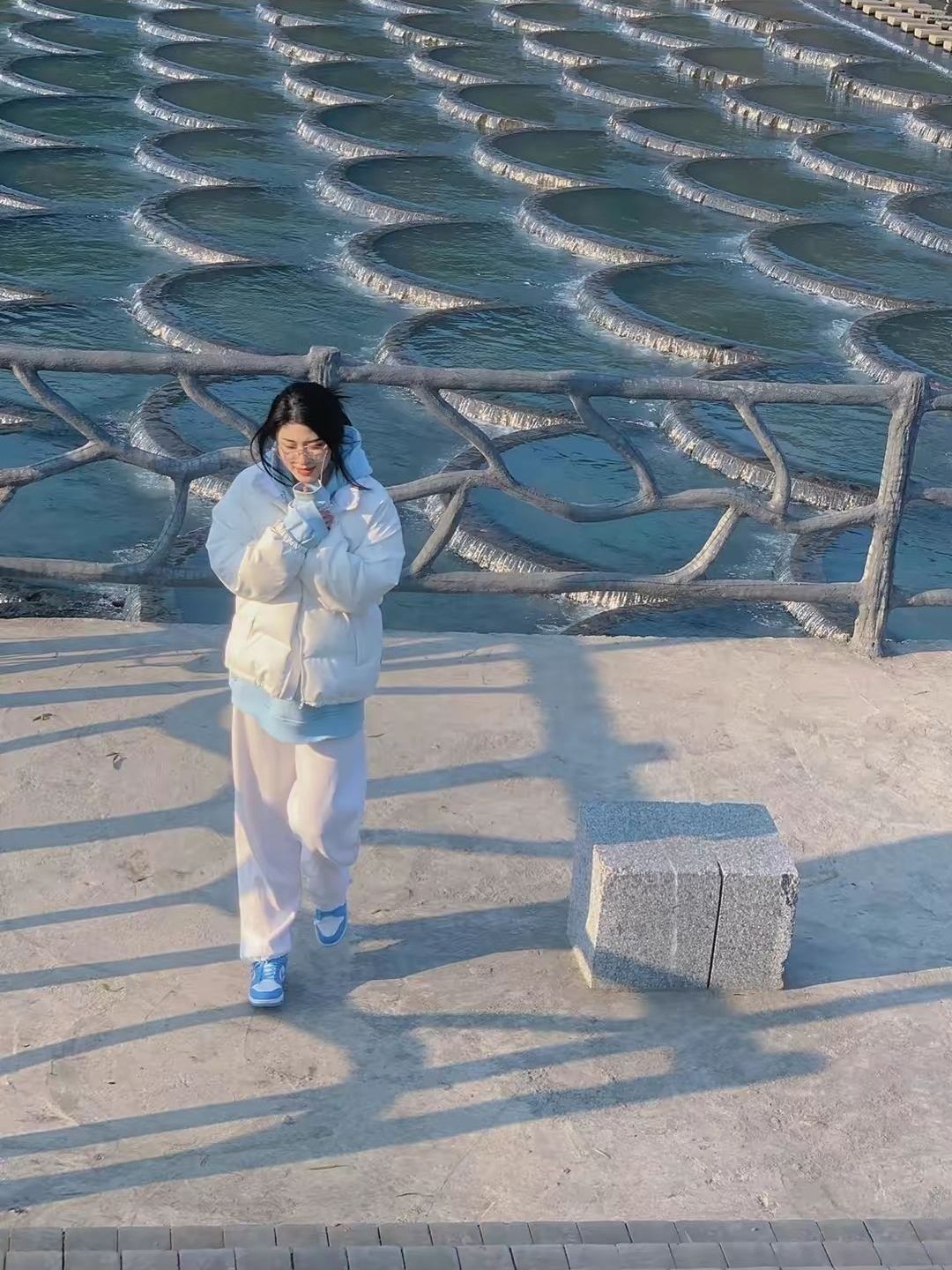 🥑🥑F426 PU皮保暖宽松棉服 🥝🥝白色棉服 蓝色卫衣 白色内搭 白色休闲裤 蓝色运动鞋 🍇🍇小姐姐这一身真的好好看,青春有活力的女大学生哦🍍🍍这款棉服可以穿出多种感觉,女生穿也是满满的ins风,🥥🥥简约的款式同样也是很百搭的,可以随意挑选下搭,🍍🍍日常出门通勤穿非常合适。 🍑🍑图源自网络 🥒🥒🥒这件棉服是属于比较长的类型,穿在身上非常强调腰的线条跟位置,🍋非常修饰比...
