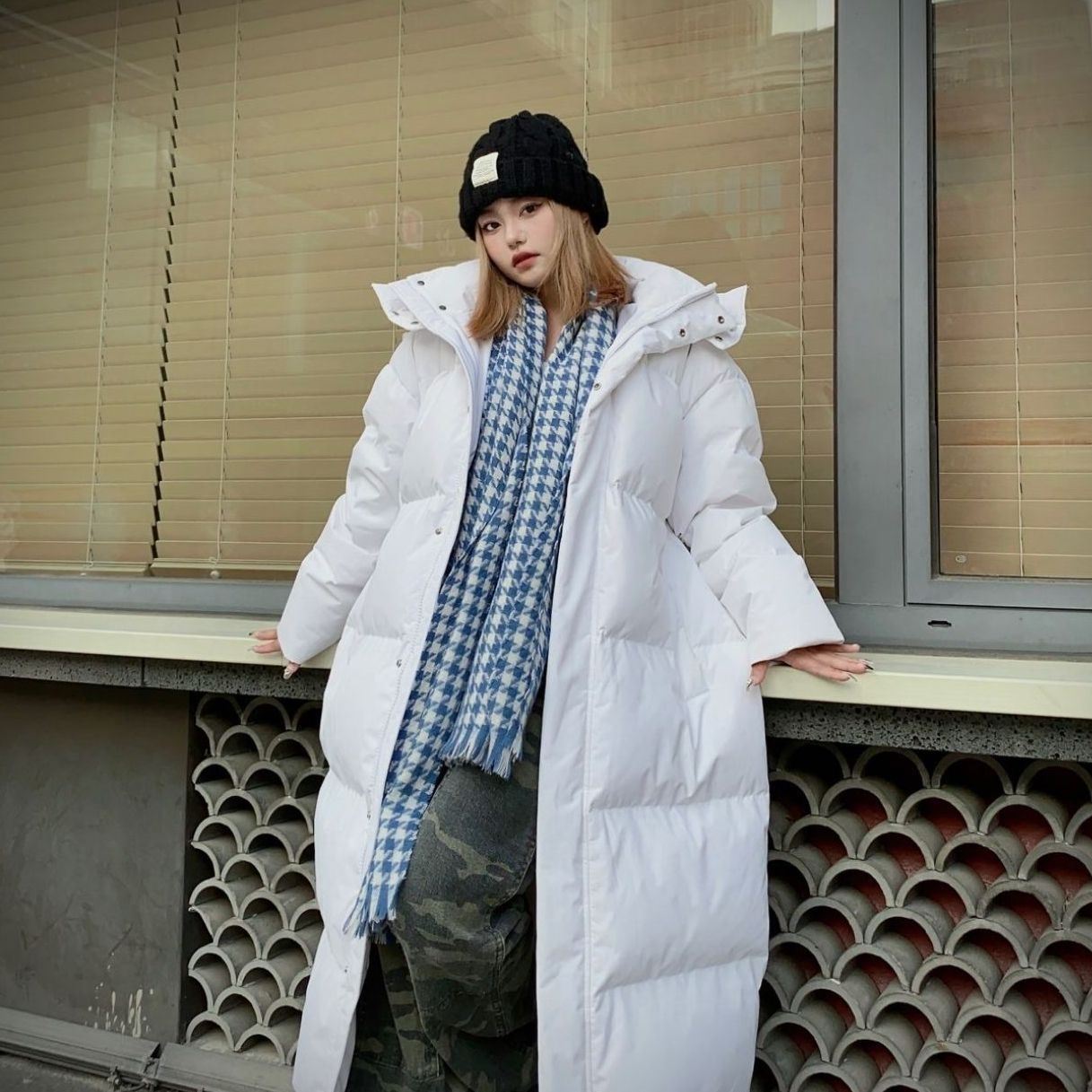 穿搭公式:羽绒服+灰色卫裤+马丁靴 这款羽绒服长度大概到膝盖,可以很好的保暖上身的部分😊北方的朋友可以冲*^_^* 缺点就是走路的时候可能迈不开特别大的步子,适合冬天在冰上走小碎步的时候穿搭哦