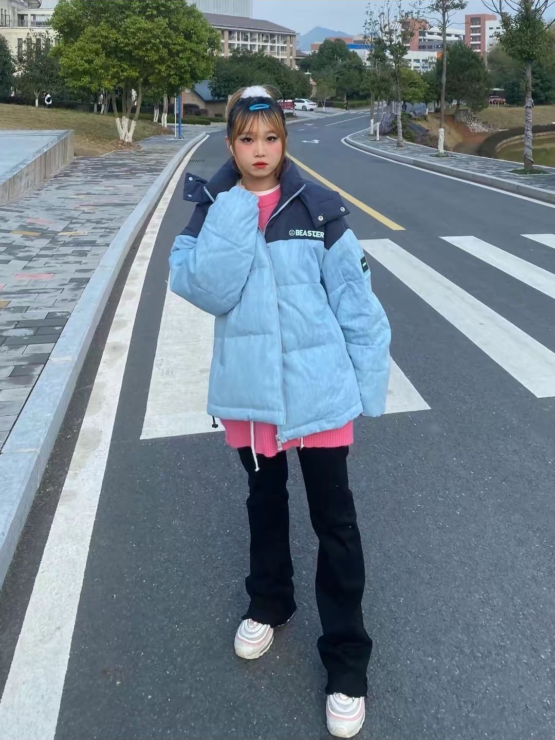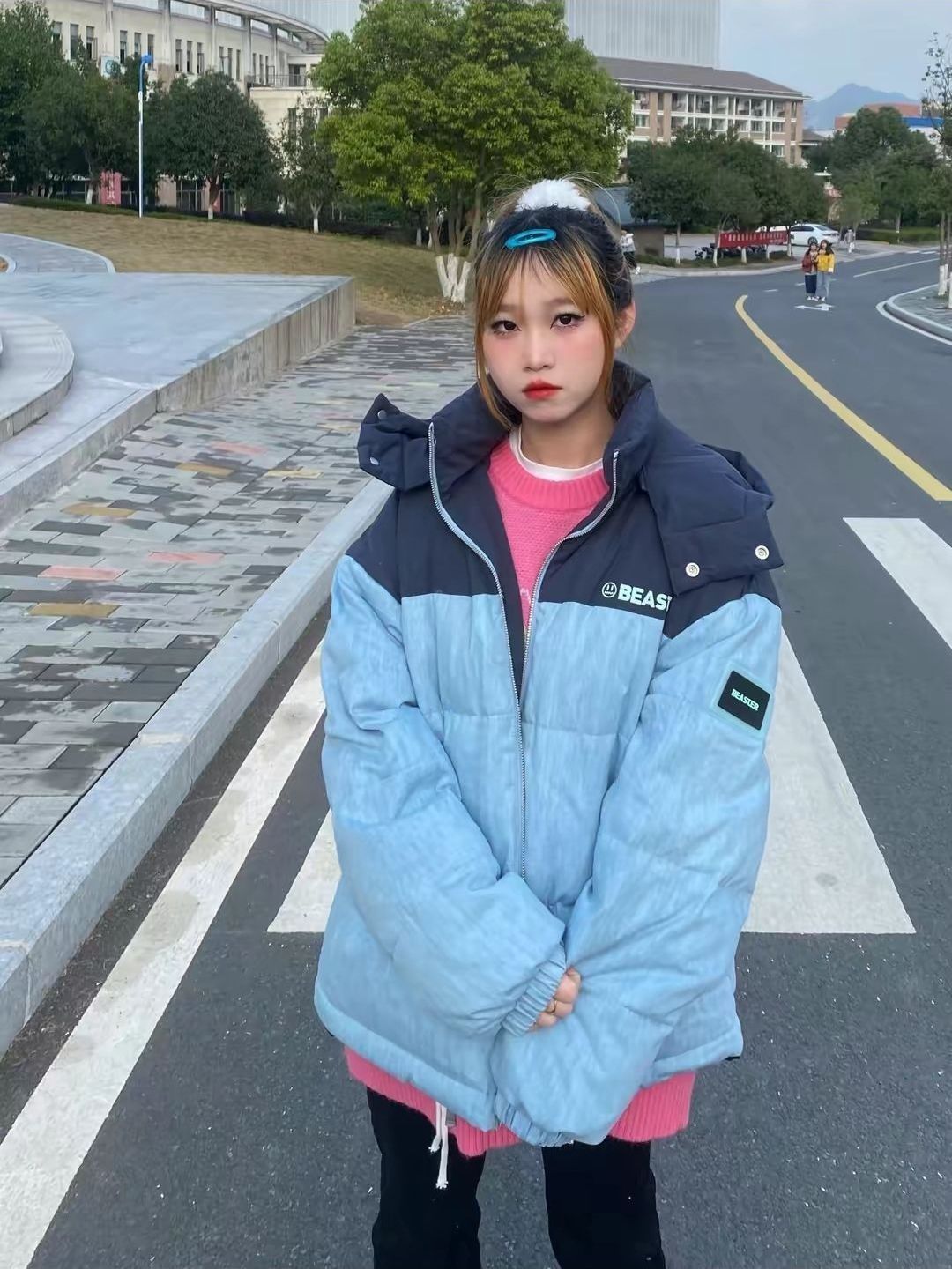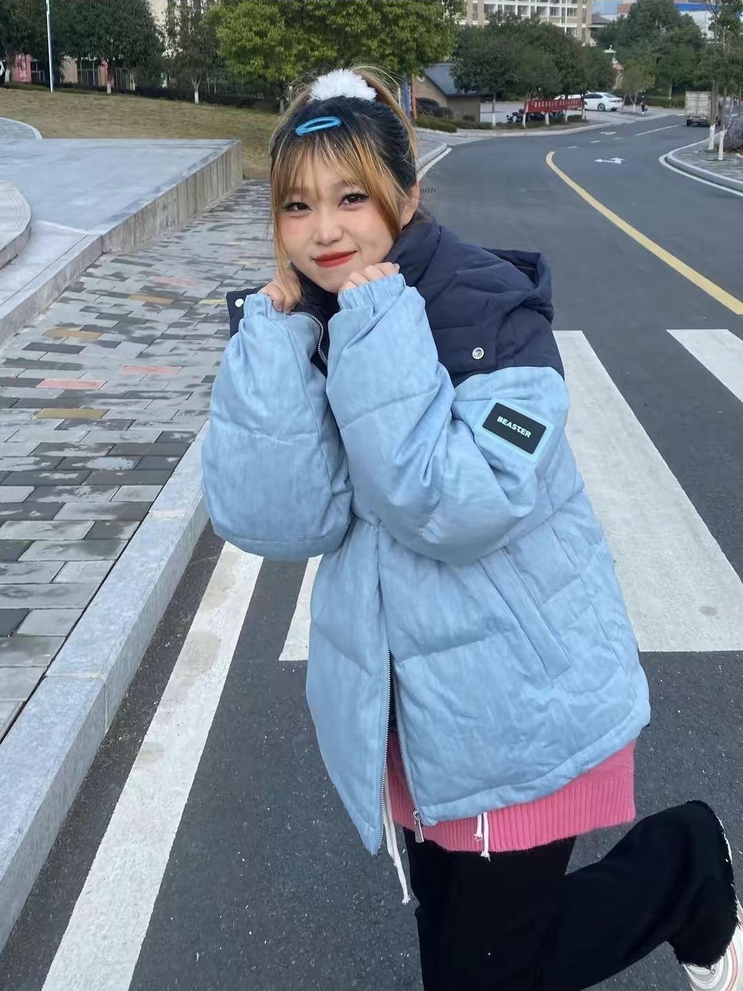 🍕🍕🍕BEASTER 小恶魔鬼脸牛仔拼接工装加厚羽绒服 🥫🥫🥫 蓝色棉服 粉色卫衣 黑色牛仔裤 白色运动鞋 🥗🥗🥗 冬天就需要一件这么修饰身材的羽绒服,在满足了保暖的基础上增加了时尚度🥘,而且搭配鲨鱼裤真的显得比例超级的好,🌭非常修饰身材,我愿意穿他一辈子。🍖 🍲🍲🍲 上身效果很好,号码也合适,总体来说非常好,物有所值!🌭 衣服很厚实不错 🥙下次还来衣服挺好看的...