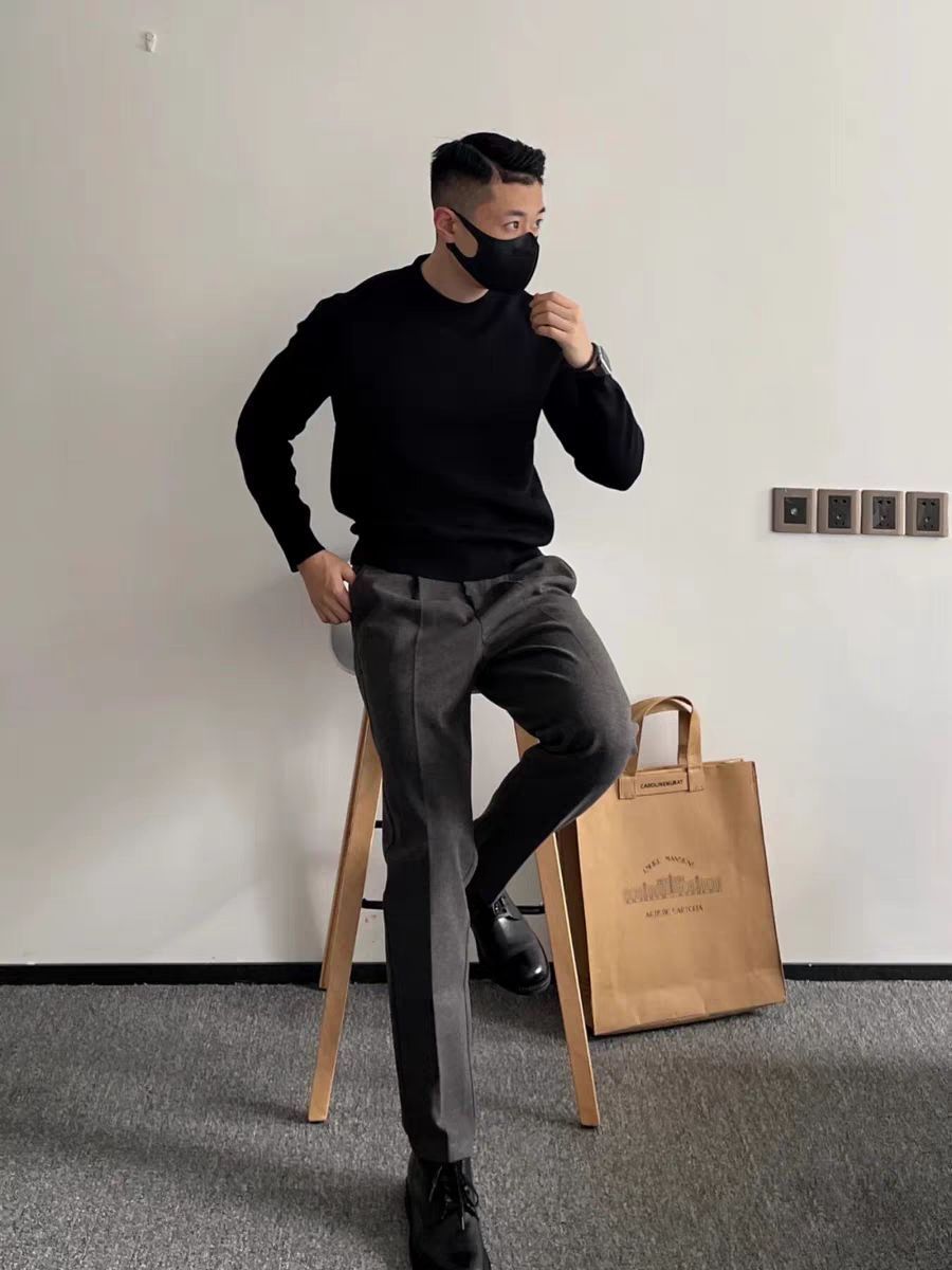 穿搭公式:半高领毛衣+西装裤+皮鞋 这款毛衣采用的是优质面料,穿起来挺柔软的,也不会扎人,如果皮肤敏感的小伙伴建议内搭一件内衣再穿 穿搭建议,半高领毛衣很有气质,感觉你外面搭配风衣或下面搭配西装裤,更显绅士风范
