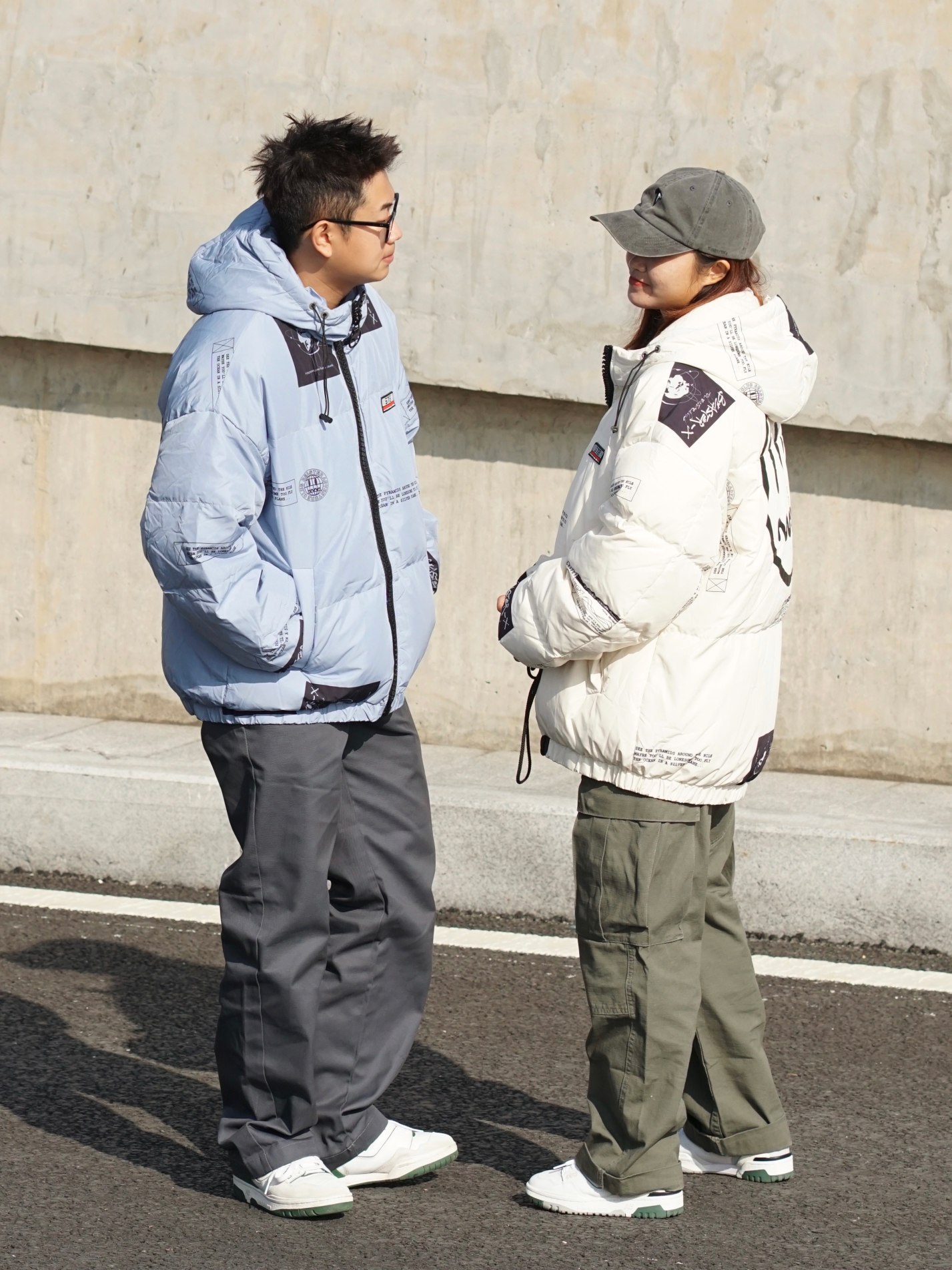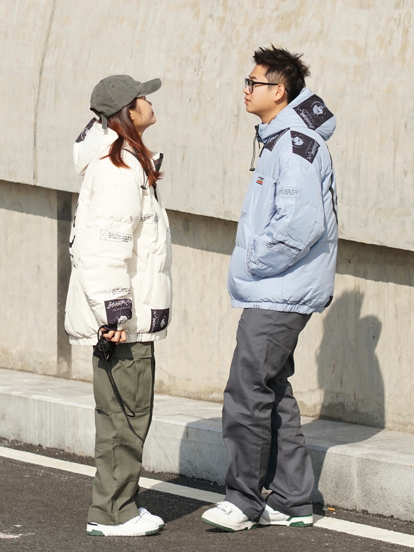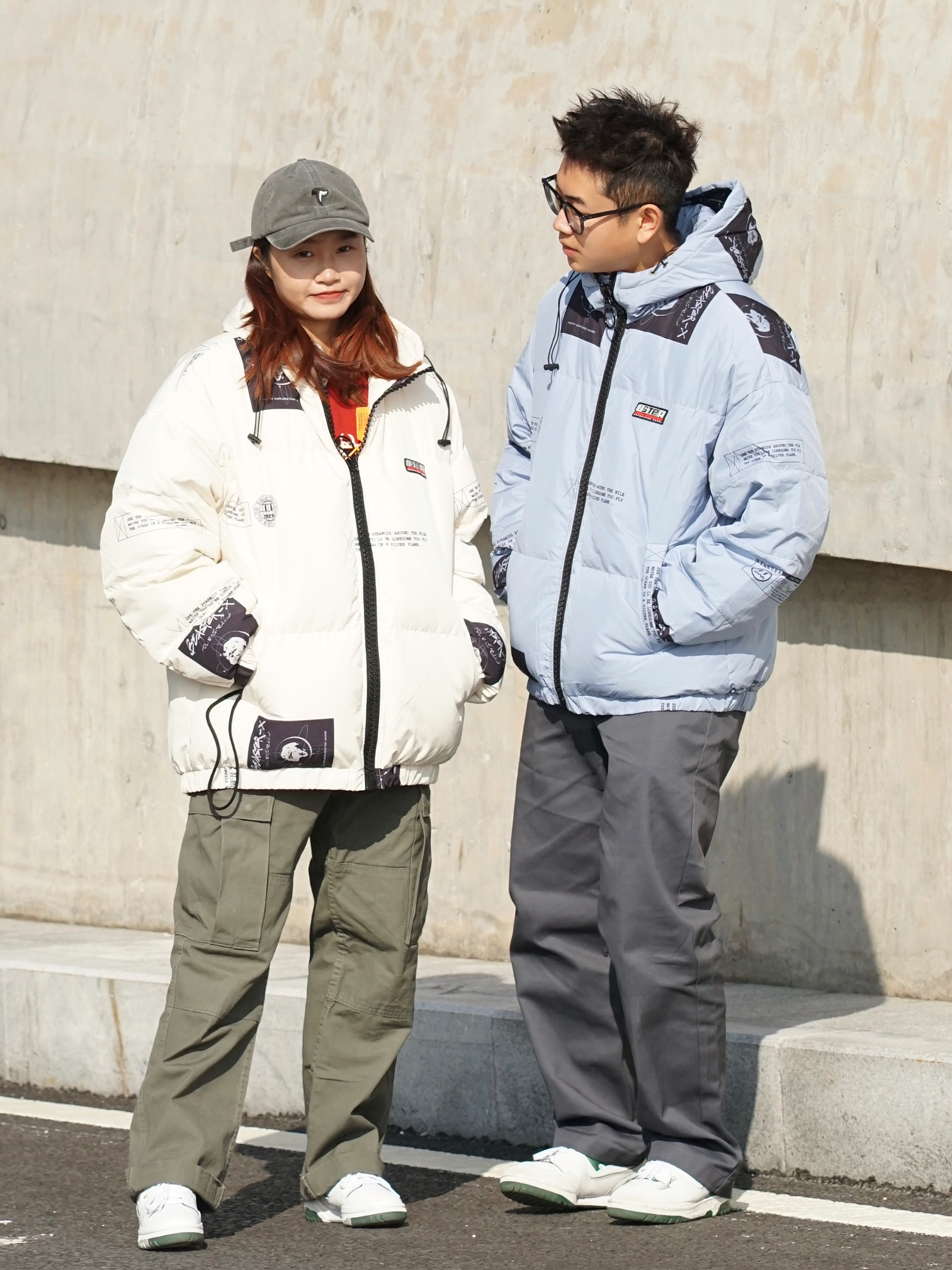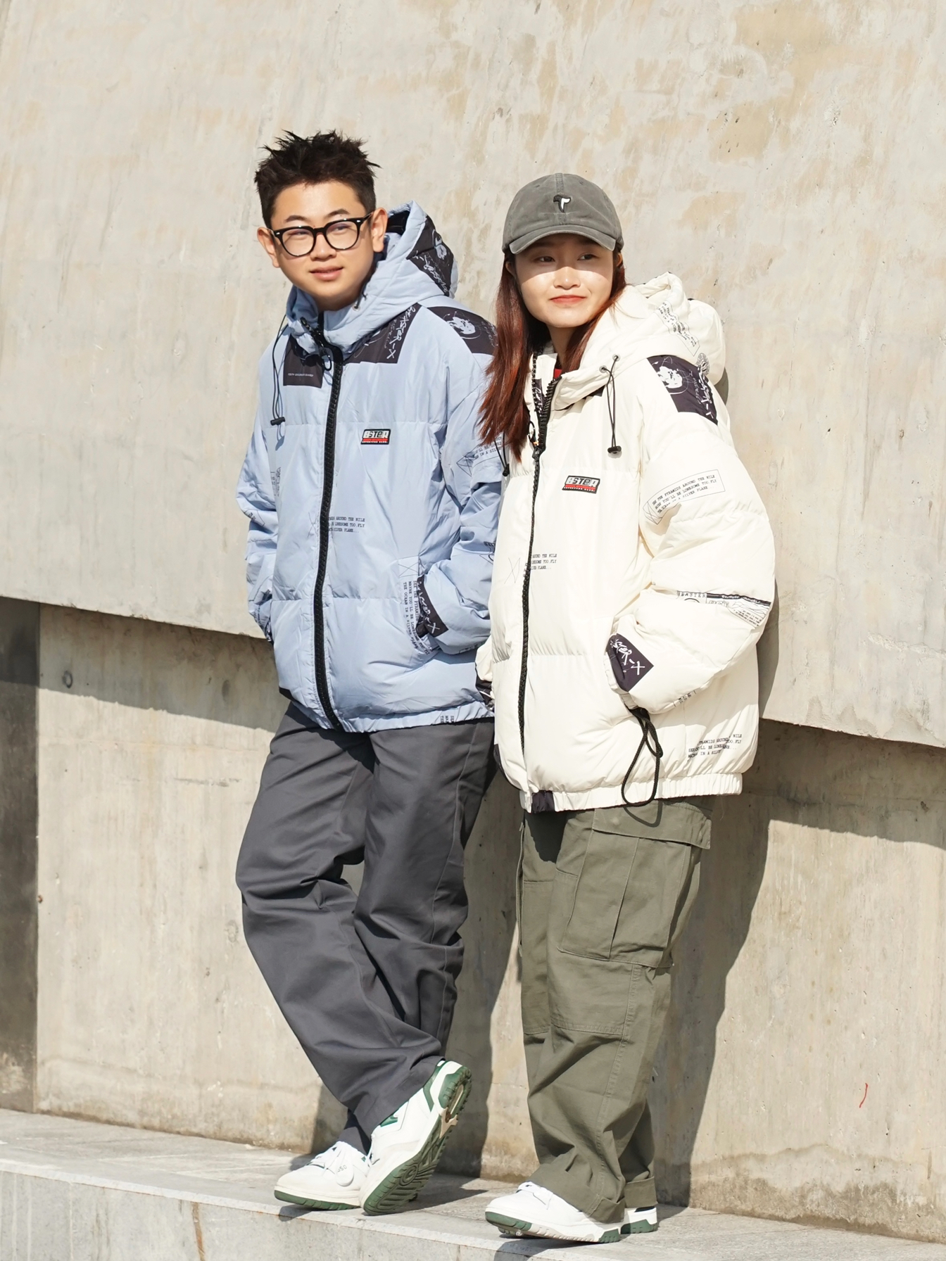冬天日常最常穿的就是羽绒服啦 保暖指数5颗星⭐️ 一起彩色过冬天🌈 —— 今年冬天的第一套情侣装当然要是羽绒服 暖暖的送给ta可以穿上一整个冬天 —— 衣服的背后涂鸦鬼脸很可爱 和彩色的衣服相得益彰