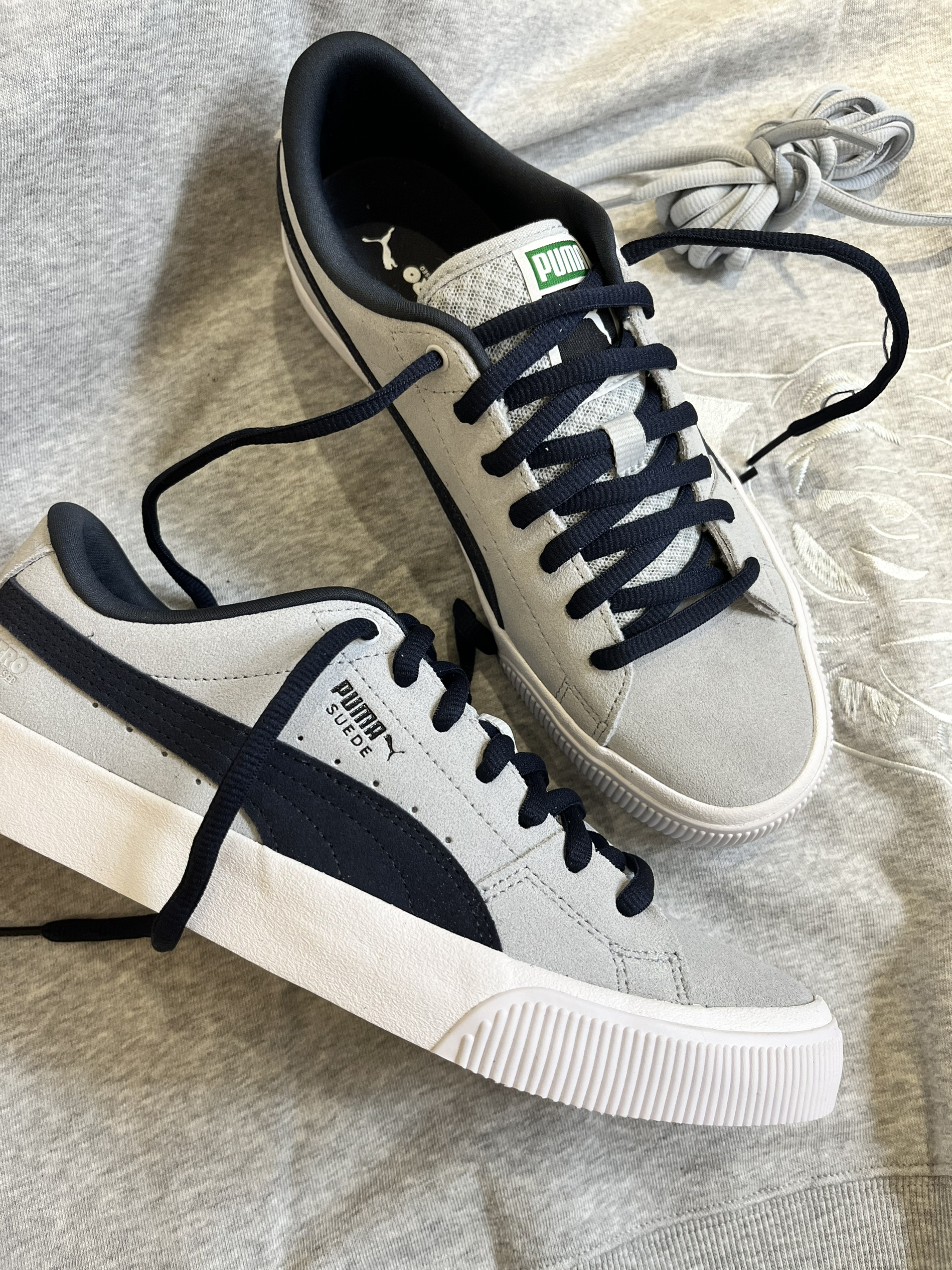 👟彪马经典的麂皮板鞋今年的新配色 整体雾霾蓝的颜色很清新 有一种干净又腼腆的感觉 🛒Nitro泡沫中底 上脚感觉是轻盈的 感觉要比匡威敦厚一点 橡胶外底舒适耐磨 整体包裹感非常好 不挤脚 前脸的条状包边 防踢 也给鞋子增添一份趣味 🛍️额外赠送一双浅色的鞋带跟鞋子整体颜色更搭 但我个人更喜欢这个藏蓝色鞋带有一丝神秘感 最近很是痴迷藏蓝色💓 💰这个材质虽然难洗 但耐不住它的质感无敌 其他的材...