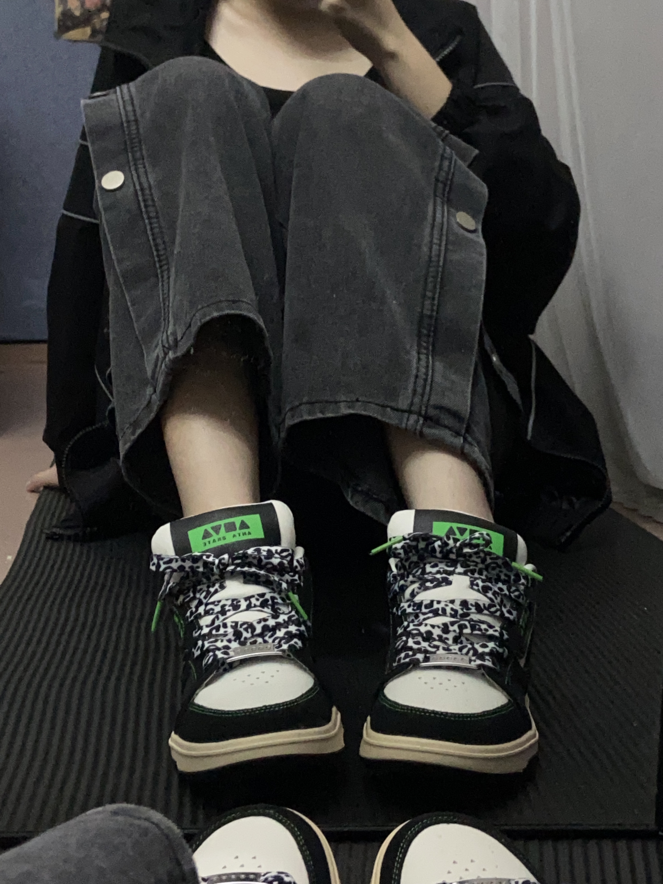 👟球鞋名称:骜驭(别名:香菜鞋) 🔍设计亮点:黑白色主打,绿色点缀;奶牛鞋带更可爱了 ⛹️实战感受(缓震/包裹/抓地力):不打球不知道,走路舒适感挺好 📃总结评价: