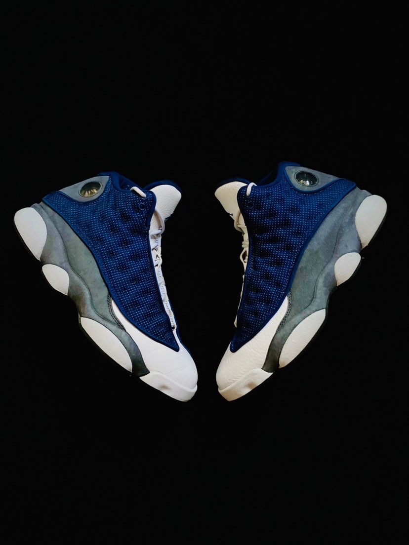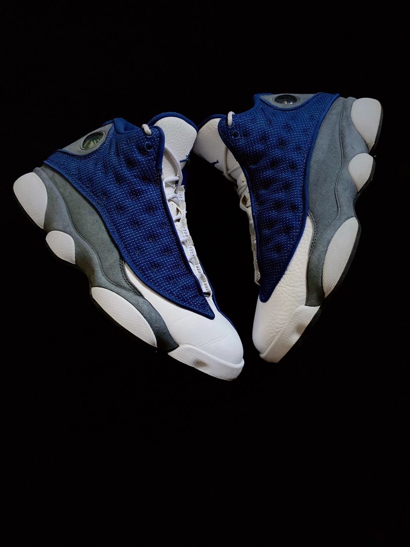 第一次看到Air Jordan 13 熊猫,真的就被这款鞋型深深的吸引住了,鞋身侧面类似于“猫爪”的设计再加上绿色的猫眼实在是太帅了! 2020年复刻 Air Jordan 13 “Flint” 回归了1998年的OG味道,鞋面采用反光网面材料,搭配燧石灰色的翻毛皮中底、挡泥片和后跟,鞋后跟位置有一个位置镶嵌有一颗绿色的宝石非常的炫酷,外形异常的霸气,穿上十分吸晴。 球鞋整体采用经典的海军蓝、...