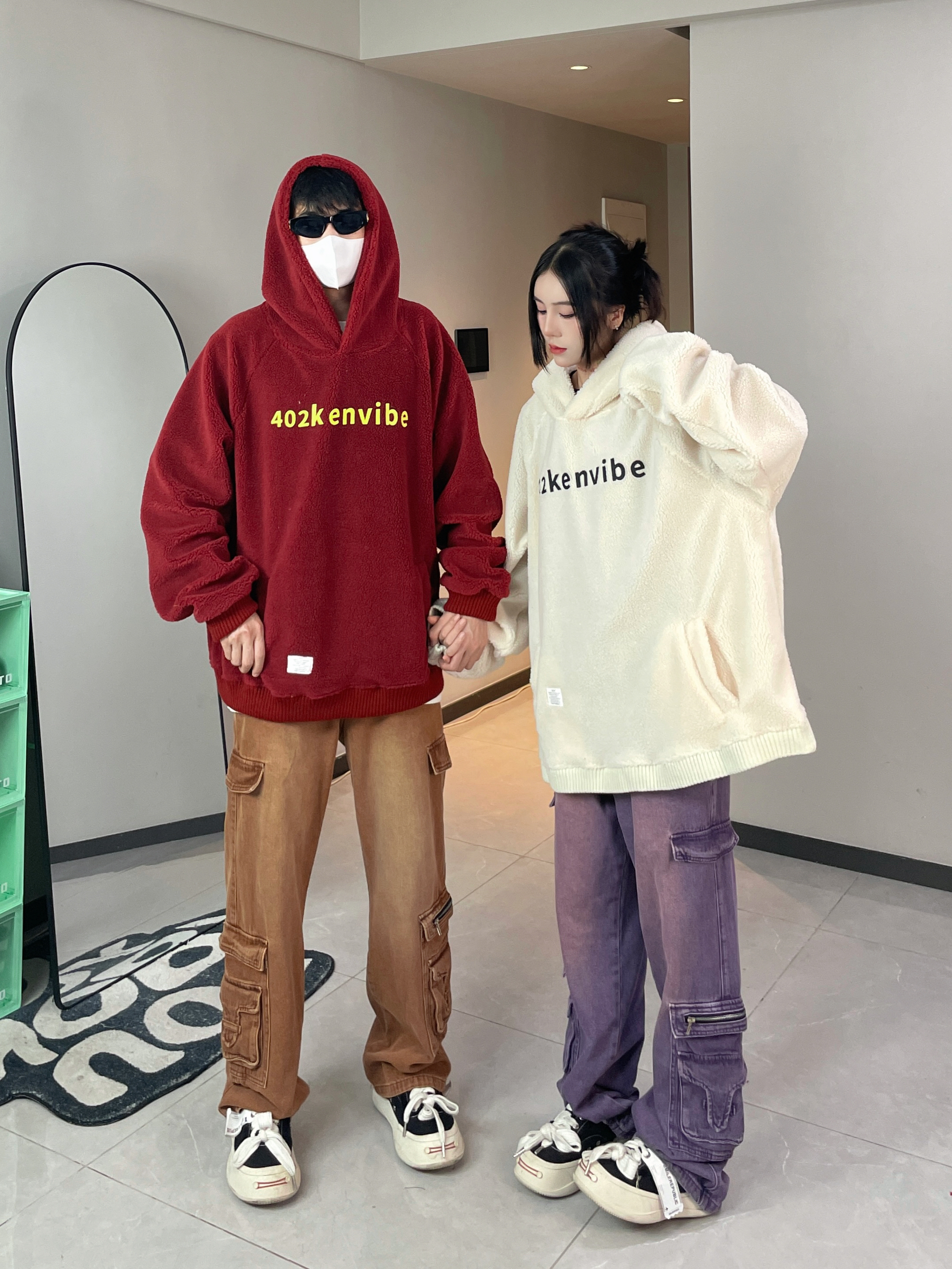 奶呼呼的羊羔绒卫衣 宽松大版的版型 白色干净百搭 红色显白绝啦 本命年穿搭呀! 👔👖:XXXANBUUZU ————