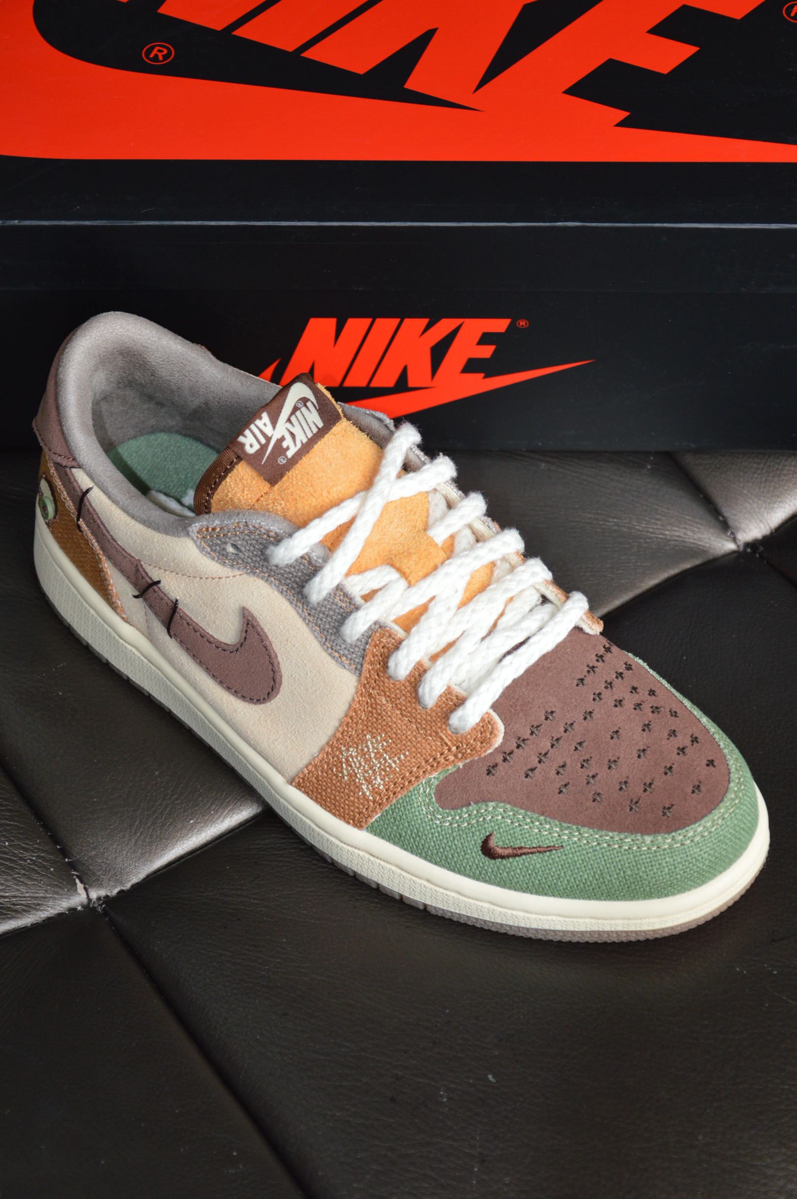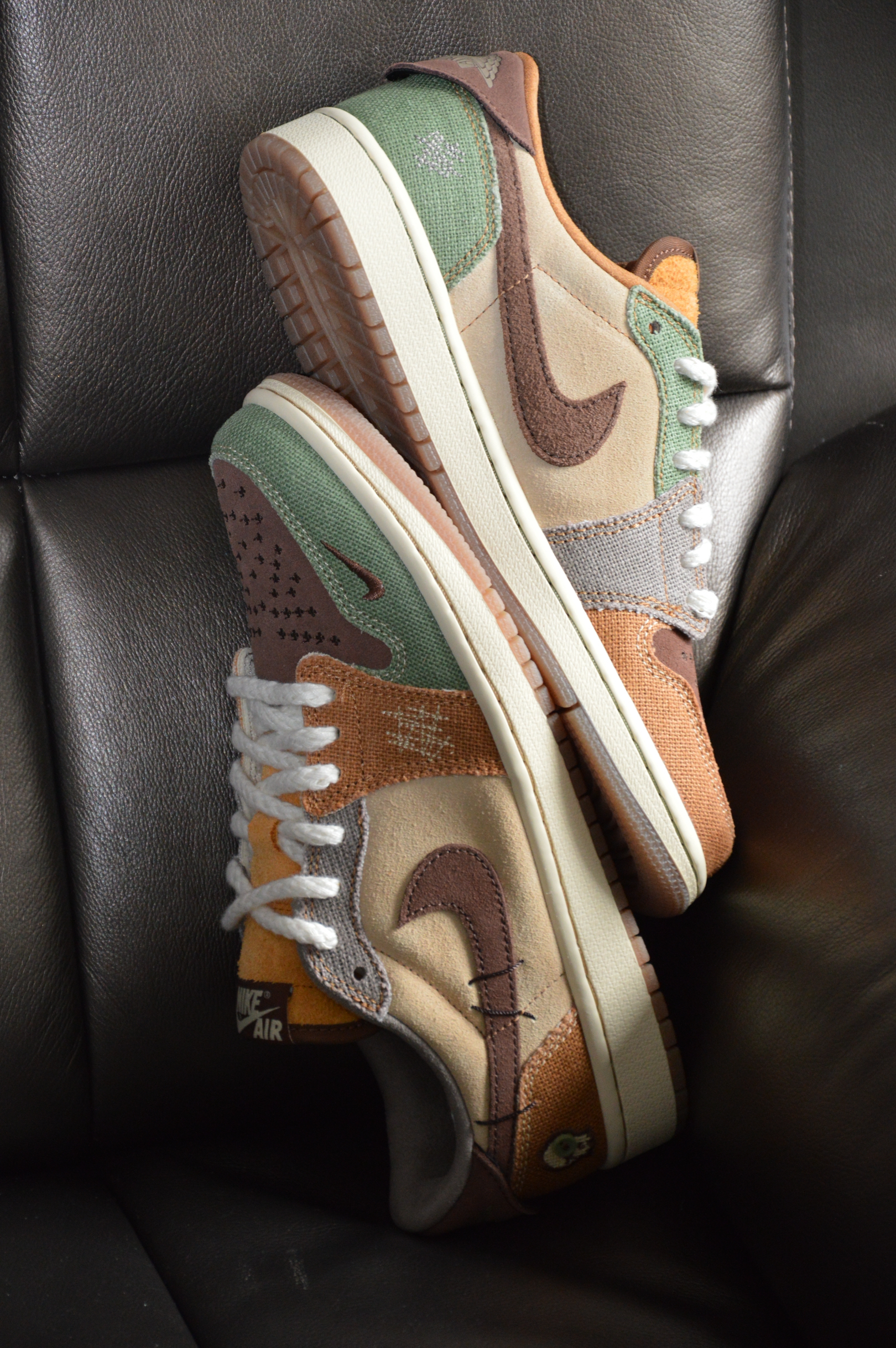 ▶这双鞋上脚真的太帅了,现在价格还不离谱你值得拥有! ▶它有我个人最喜欢的AJ 1 low OG鞋型,何况还有大地配色呢!