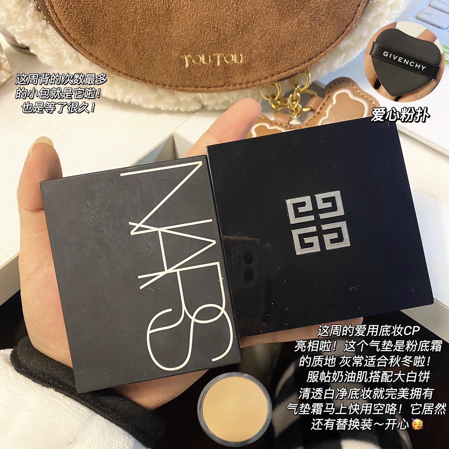 本篇笔记关联了NARS/娜斯 大白饼流光美肌蜜粉饼 轻透定妆细腻不飞粉 经典色、NARS/娜斯 空气柔雾唇霜 哑光 7.5ml 41小橘钉PIN UP、Givenchy/纪梵希 高定恒颜持妆气垫粉底液 13g #C110等商品,为用户提供真实的使用体验和购买参考。